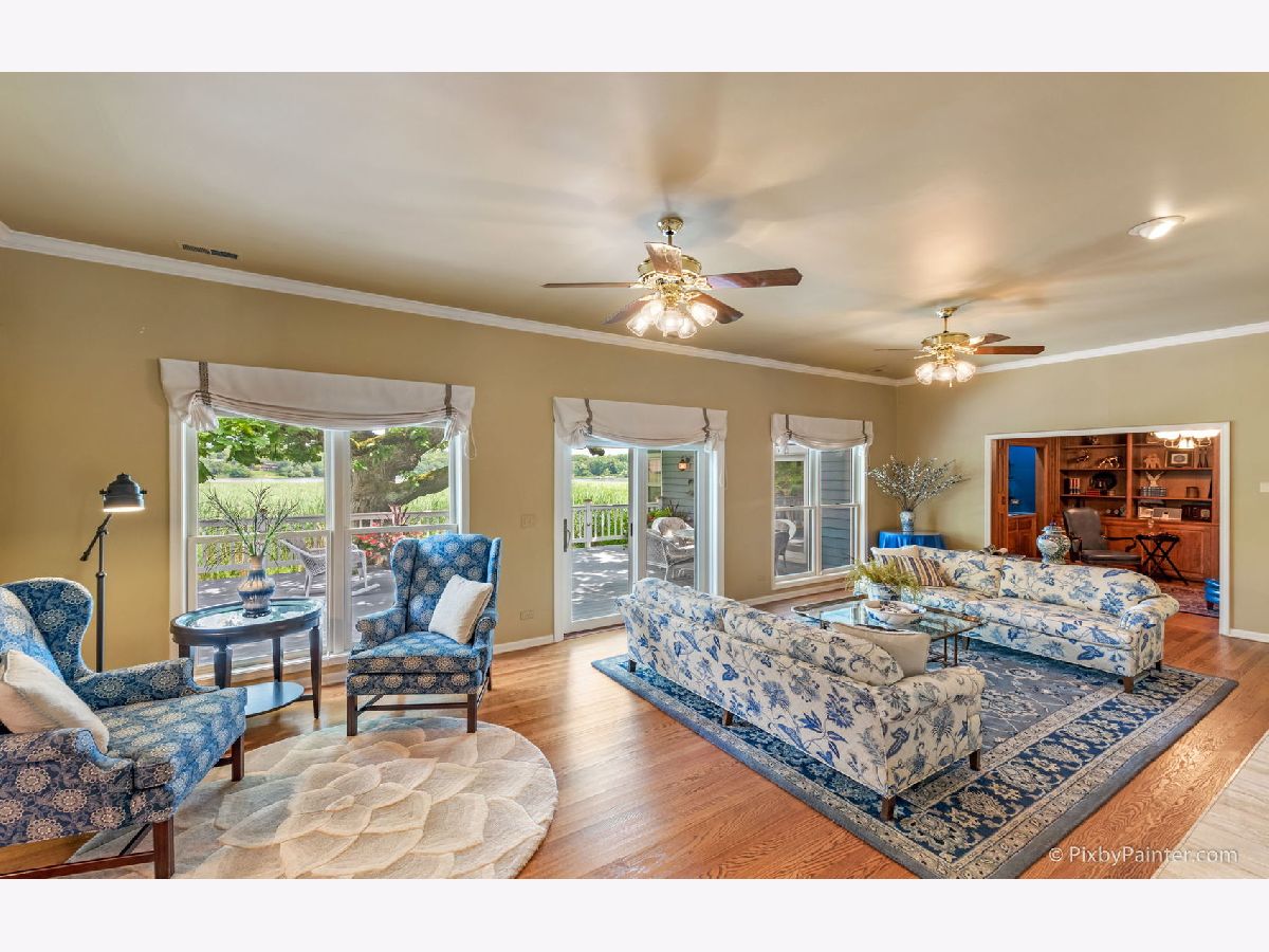 Beautiful waterfront home in desirable Biltmore! This elegant ranch style home offers stunning views from almost every room in the house. Enjoy fishing or kayaking right from your own little dock on the creek along the side of the property, straight out to Honey Lake. 10 ft ceilings, crown molding, 3 fireplaces, hardwood flooring, oversized picture windows to enjoy the views. Multiple sliders out to newly refurbished deck shaded by the magnificent 300 year old oak tree. Huge Master suite includes sitting room with fp, luxury dual vanity bath, dressing room and 8x17 ft walk in closet. Cooks Kitchen with breakfast room, pantry, 8 ft island and high end appliances including Sub Zero and Thermadore 6 burner range. Walkout Lower Level adds to the living space with Family Room including cozy fp, Game/Rec Room, full bath and enclosed Hot tub! Spacious 80 ft long attic space accessible by full staircase, can be used as storage or finished into additional living space. Enlarged heated garage can fit your 2 larger SUV's or trucks. Outdoor irrigation system (fed by lake) and landscape lighting to enhance your evening views. Steps to Biltmore Country Club and minutes to excellent dist #220 schools.