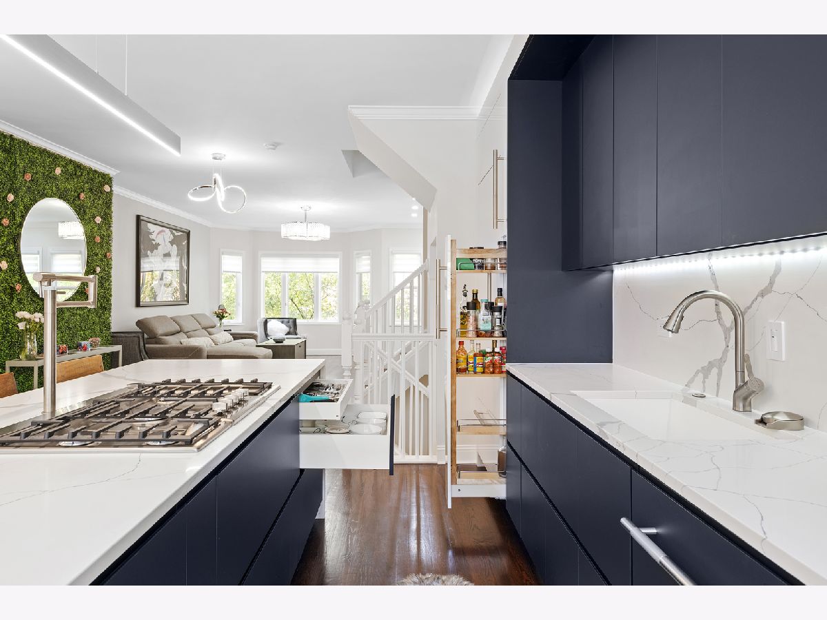 Luxury finishes will WOW you in this highly desirable Prairie District townhome that feels like a single-family home. Situated on a quiet tree-lined street, this home features three bedrooms, a Den/Guest room, three full bathrooms and FOUR outdoor areas giving loads of space for indoor and outdoor living. This professionally designed and decorated home has left no detail overlooked. The gated front patio takes you to the Den/Guest room with built-in Murphy bed. The open kitchen will take your breath away! No feature was spared when designing the kitchen, which overlooks the dining and living space and features loads of cabinetry from local designers at T2 Cabinets, waterfall edge quartz countertop and matching backsplash, a Sub-Zero built-in cabinet matching refrigerator, Bosch appliances, Zephyr vent that hides under the 9 ft island with the push of a button, built-in chargers, wine glass scrubber, and tons of storage space to keep all your kitchen essentials in order. And if you drop crumbs or make a mess on the floor while cooking, you can use your foot to turn on the built-in vacuum at the footboard and see your mess disappear. The bright and open living room has custom-built storage nooks and built-in room for a large flat screen over the new fireplace covered in quartz. The sun-drenched dining room opens to a balcony. Other details in this home include Spa-like primary bath with heated floors, body sprays in the large shower for two, custom-built floating double vanity, frosted glass pocket door and picture window to let in natural light. There is Bluetooth in all 3 bathrooms so you can sync to your phone and listen to tunes while getting ready, custom-built closets, TWO laundry areas (one on the same floor as bedrooms and another one in the garage), modern light fixtures and window treatments. The top floor loft bedroom has a water faucet, 24" tower refrigerator, and walks out to an amazing north-facing roof deck with skyline view for great entertaining and a separate south-facing patio for your garden. Too many details to list so come see this luxury unit to be amazed. Two furnaces for reliable zoned heat and AC and a two-car garage with storage space rounds out this excellent offering. Steps from the lake path and pedestrian bridge at 18th street, Soldier Field, The Museum Campus, Burnham Harbor, Grant Park, and all the dining & entertainment that the South Loop has to offer. *See document with Features and Upgrades filed under Additional Info on MLS*. Don't pay $1,000 in HOA fees and $20,000 in property taxes at a high-rise. This beautiful 2,400 SQFT home will leave you speechless. Welcome home!