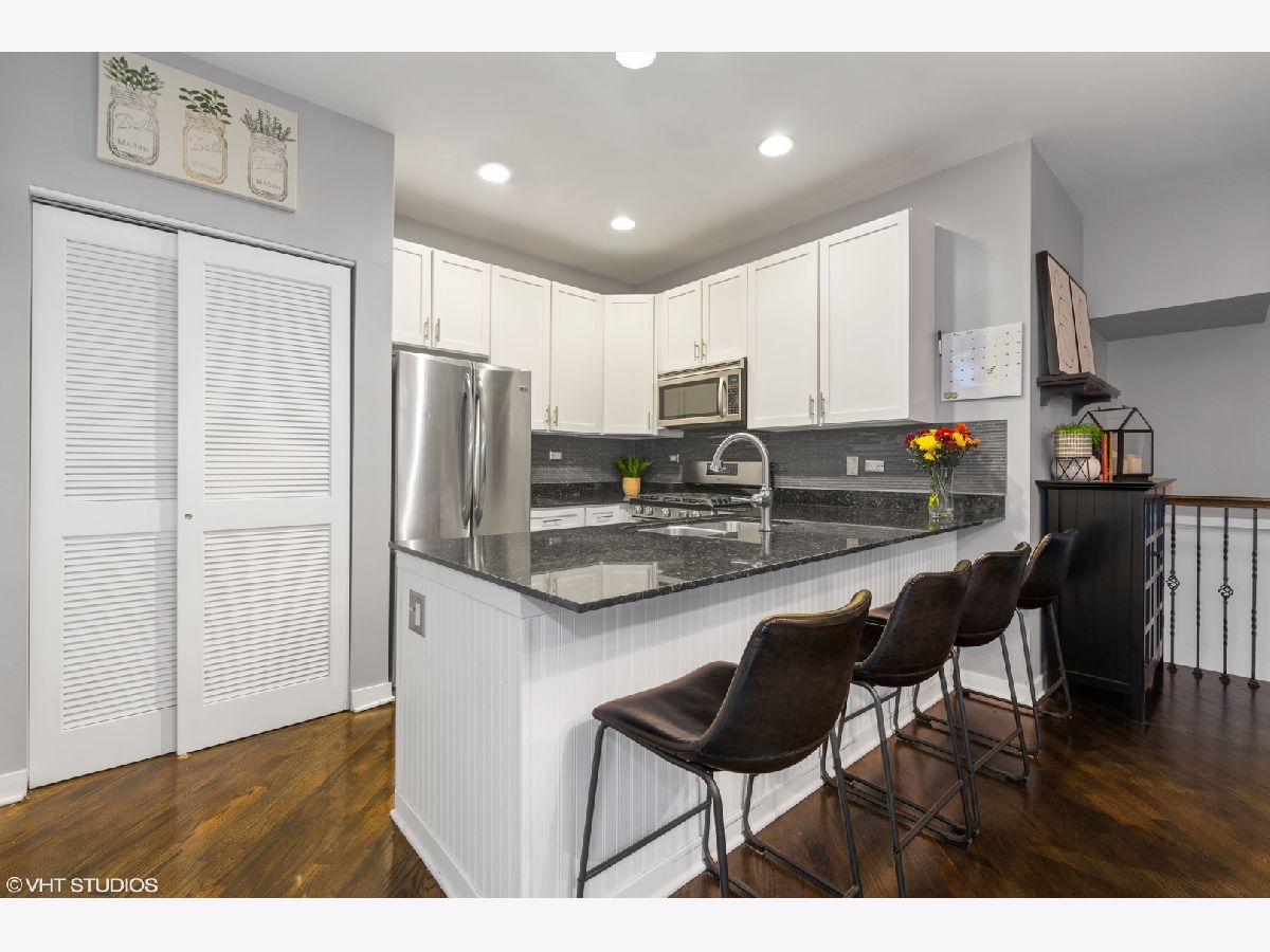 Stunning 2 bed, 2 bath tri-level condo with 2 outdoor entertaining spaces in the heart of Wicker Park! Open concept floor plan, hardwood flooring, vaulted ceilings, and tall windows bringing in tons of natural light. Just off the large living room is the south-facing deck with sun all day long! Step up to the separate dining area and kitchen featuring white shaker cabinets, glass backsplash, granite countertops, breakfast bar with seating, and all stainless-steel appliances. Second outdoor space is just off the kitchen, perfect spot for a grill. The entire lower level is the massive primary suite with an outdoor patio. Sizable professionally organized walk-in closet and beautifully gut-renovated primary bath featuring a double sink vanity, walk-in glass door shower with a separate soaking tub. Second bedroom on main level off living room fits a queen-size bed and has two closets and updated second bathroom features a newer vanity sink and glass door shower. In-unit laundry and attached garage parking included in price! Steps to both Milwaukee and Division retail strips. Walking distance to the Chicago Park District, the Damen and Division Blue line, and tons of restaurants, bars, grocers, and shops!