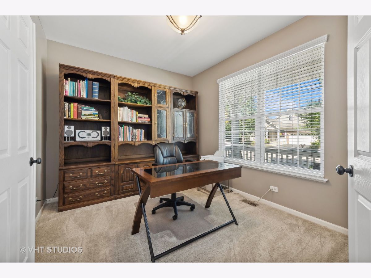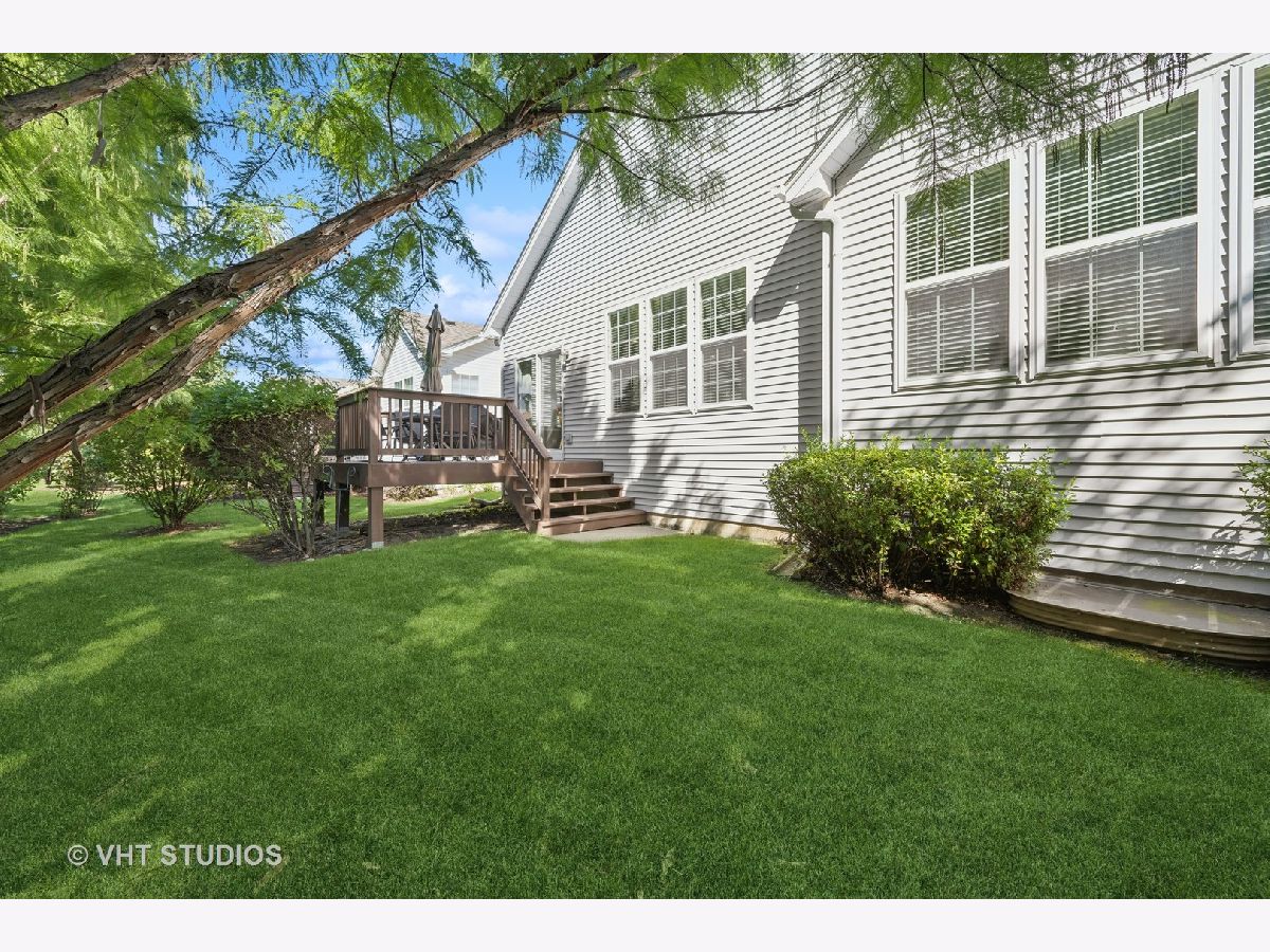 Welcome to effortless living in this impeccably maintained ranch home, nestled in a vibrant 55+ active adult community. Enjoy the convenience of a maintenance-free lifestyle, plus all the amenities that Haverford Place provides which includes a clubhouse, pool, spa and pickle-ball courts. A charming front porch ushers you into an open and inviting layout. The kitchen is a chef's dream, featuring a large island with seating, newer stainless steel appliances and 42-inch oak cabinets, flowing seamlessly into the family room which is perfect for entertaining. The breakfast area has room for a table and leads out to the backyard deck. The large dining room is separate. The primary suite is a private retreat, boasting a spa-like bathroom with double bowl sinks, a whirlpool tub, separate shower with seat and a large walk-in closet. In addition, there is a guest bedroom, an office/3rd bedroom with double doors and a full hall bath. Wood floors run throughout the large foyer, kitchen and family room. Newer carpet in all bedrooms, dining room and basement. Newer neutral paint throughout. Convenient first floor laundry room. Fully finished basement with recreation room, bedroom, full bathroom and large storage area. Great location with easy access to I-90, plus shopping and dining at the Arboretum in South Barrington.