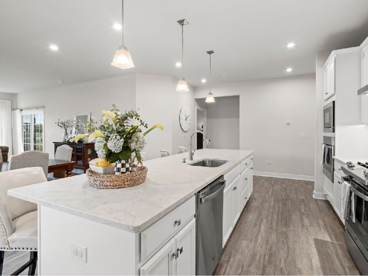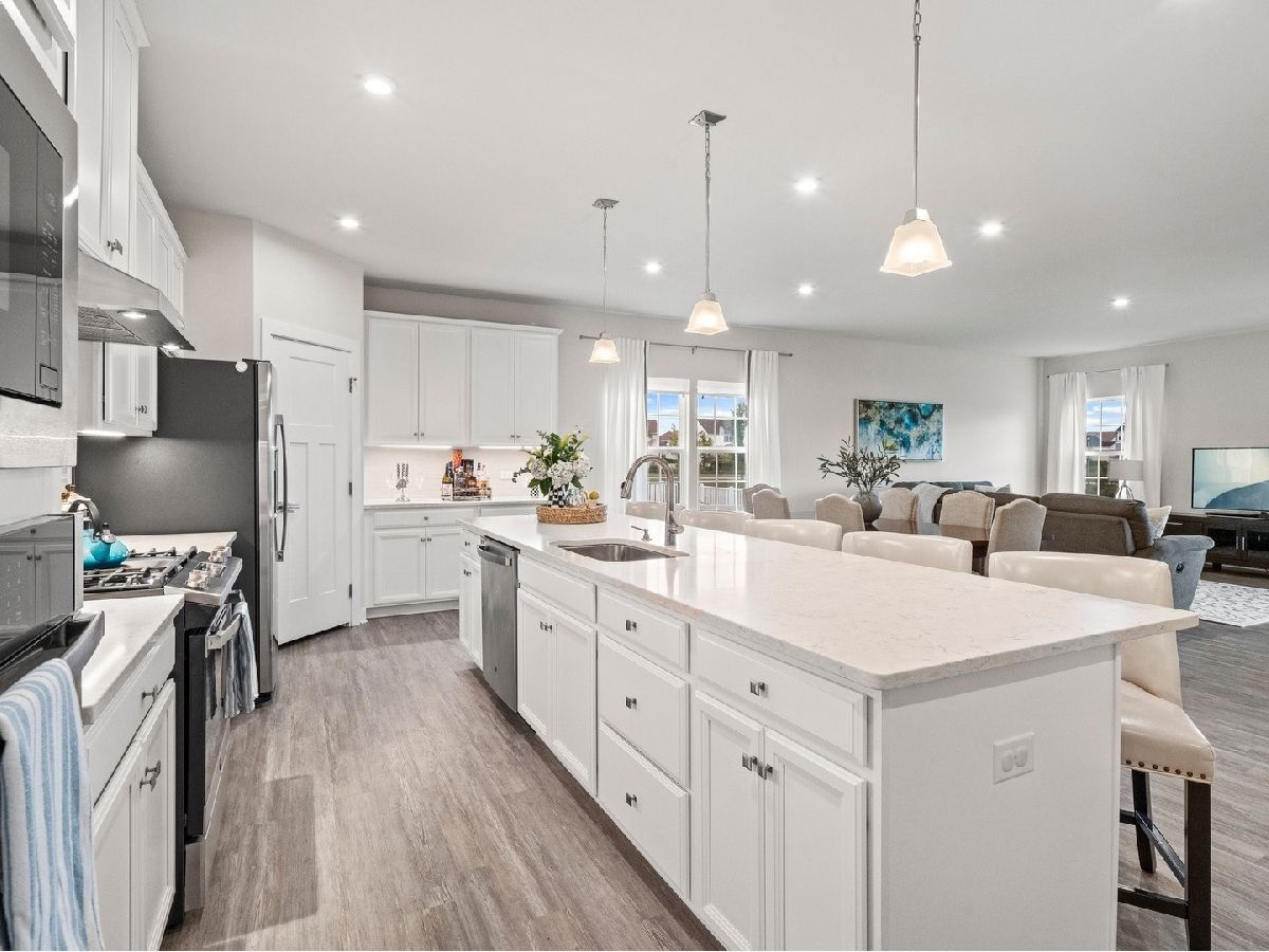 Why wait for new construction when this stunning Palladio Ranch model home, built in 2020, has everything already done (Floor plan under Additional Information tab) The Clublands of Antioch ~ Legends are nearing all the lots/homes being SOLD OUT! From the moment you enter the Foyer you will enjoy this spacious and open floorplan with high ceilings and luxury vinyl flooring throughout most of the 1st floor and many many builder upgrades!!! Gourmet white kitchen features quartz counter tops, under cabinets task lighting, custom tile backsplash and huge island with breakfast bar. Large walk-in pantry and high end stainless steel appliances including upgrade of wall oven. This open floor plan is great for entertaining as your Dining area flows into the sunny Living Room area. Sliders lead out onto your cover porch with great views of your back yard and open space green belt. The Primary Bedroom has views out to the back yard for a true retreat feel with walk-in closet and tray ceiling. The spa Bathroom will wow you as it features double vanities, large linen closet and huge walk-in shower with bench seat with custom glass tile surround. The 2nd Bedroom features an ensuite bathroom with double sink vanity. But the real WOW is the finished basement!! Enormous 36 X 18 Family Room provides tons of space for all your needs. 4th Bedroom with large closet. Plus a 3rd Full Bath. Large storage room completes this huge space. The home is minutes away from trails, shopping and more. Get ready to be in your new home for the holidays!