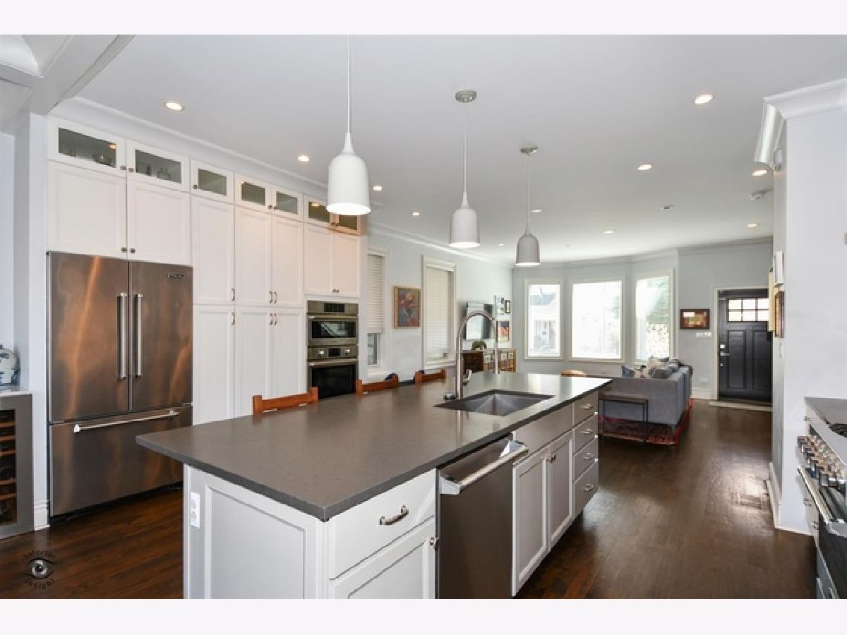 4 bed 3.5 bath extra wide single family home in great North Center location close to parks, restaurants and public transport. Main floor features open floor plan, 12' ceilings, separate dining area, professional grade viking/bosch kitchen with quartz counter tops. 2nd floor has 3 beds and 2 baths with laundry. Spa caliber master bath with jetted tub and separate shower. Finished lower level with rec room and guest suite. Great closet space in this home. Nice back yard with large deck and 2 car garage built in 2015. Everything new in 2015.