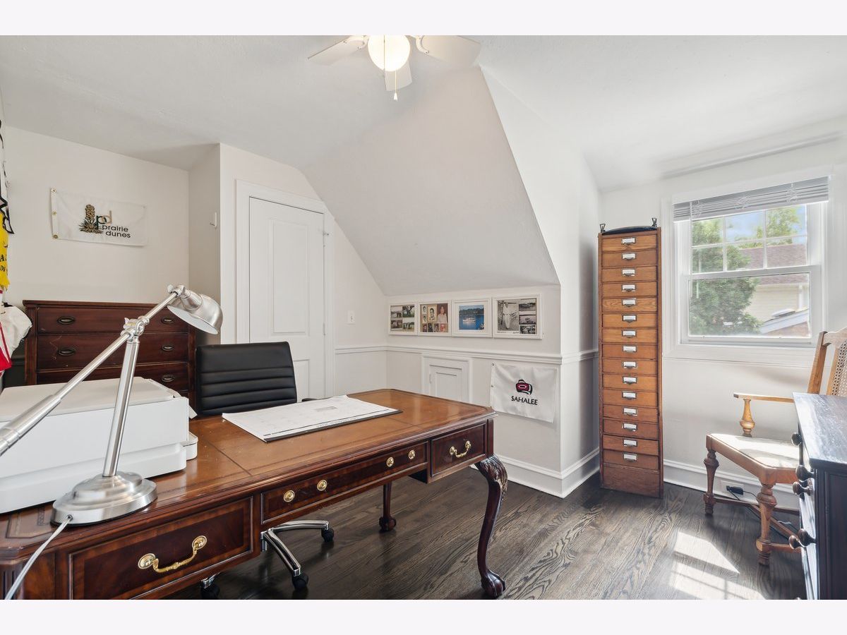 Welcome to 1831 Beverly Place! Charming, updated and expanded 3/4 Bedroom, 2.5 Bath Shingle-style Tudor home offering almost 2,500 square feet of living space. Step inside and be greeted by gleaming hardwood floors throughout the open concept floor plan. Lovely Living Room featuring built in shelves and a woodburning fireplace, perfect for those chilly evenings. Dining Area flows seamlessly into the Kitchen and spacious Family Room creating the perfect space for day to day living or weekend entertaining. The heart and highlight of the home is the Chef's Kitchen, boasting a delightful breakfast nook with built in seating surrounded by windows, stainless steel appliances, a commercial style Sub-Zero refrigerator, a farm sink with butcher block countertops and an expansive island with additional seating. The glass-fronted cabinets add character and provide ample storage in addition to a roomy pantry closet. A centrally located Office featuring a dutch door and a beautiful stained glass window that creates a comfortable and calming work environment. Versatile 4th Bedroom or Den with a rustic wood beamed ceiling and Powder Room complete the main floor. The light and bright Primary Bedroom offers a serene retreat with an ensuite Bathroom with dual sinks, oversized shower, and large walk in closet. Two additional bedrooms filled with natural light, a Full Bath and Laundry closet complete the 2nd floor. Finished basement with plenty of storage provides extra living space. Entertain or relax outdoors on the cozy deck adjacent to Kitchen/Family Room and overlooking the backyard. New roof and newer windows, 2 Car Garage and an ideal location near Park, Rec Center and Pool, this gem checks off all the boxes!