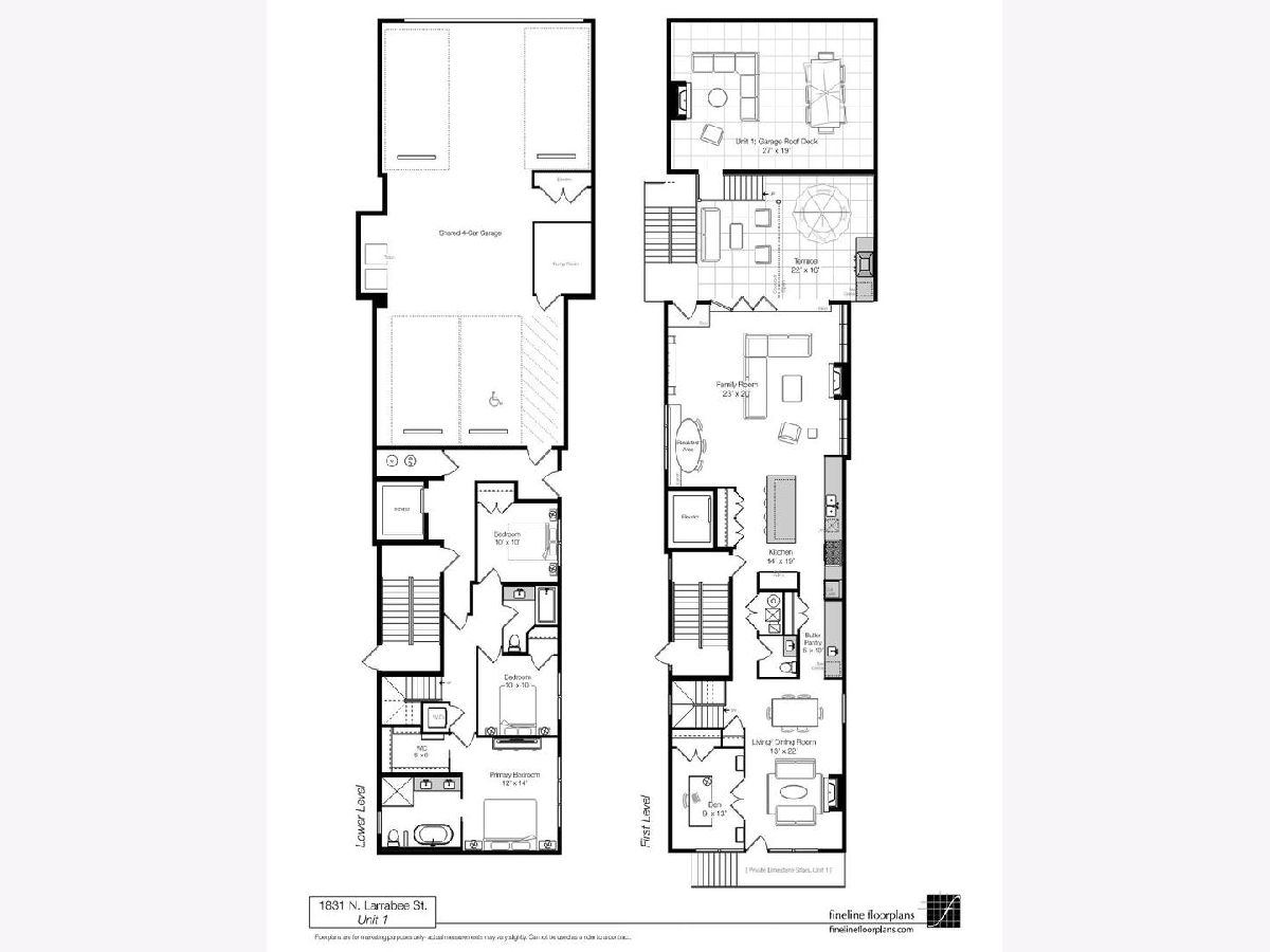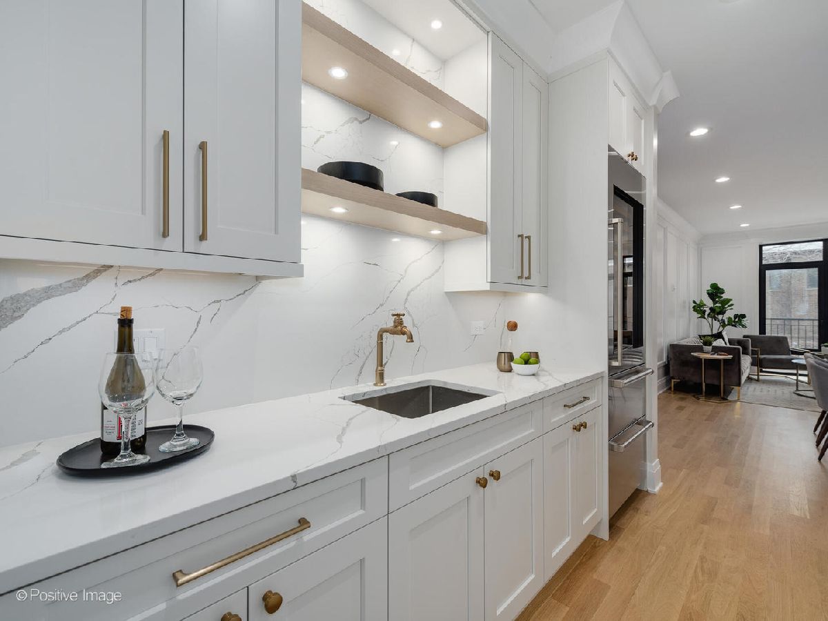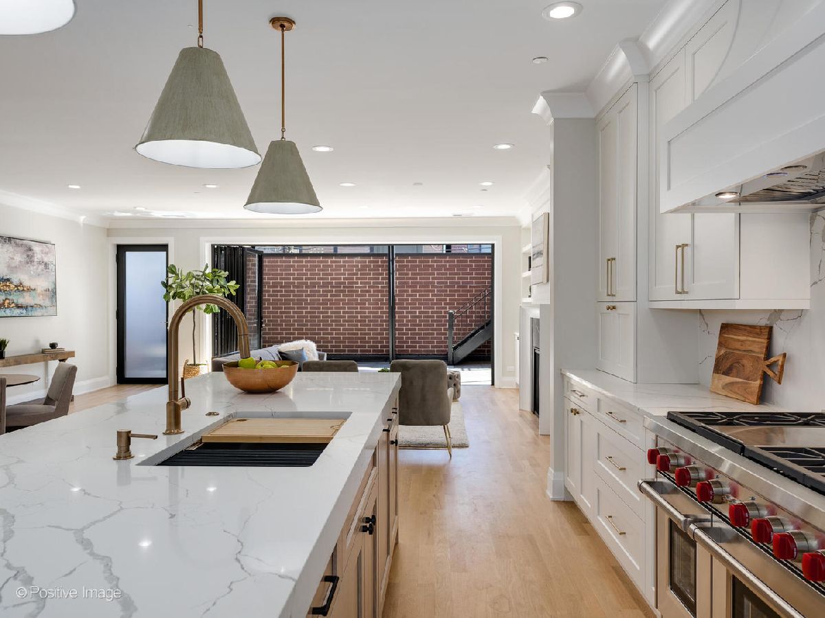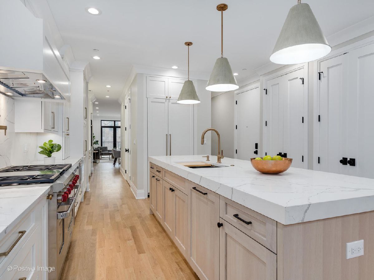 Expertly crafted and beautifully finished duplex-down condo in a wonderful part of Lincoln Park/Old Town. With 4 bedrooms and 2.5 baths, this home features wide open spaces and private nooks for every personality in the family. Upon entry, and to the right, you are greeted with a formal living/dining room and to the left, an actually jaw-dropping kitchen with a collection of top-of-the-line and paneled in appliances (Wolf, SubZero, Bosch, Zephyr), a tremendous amount of cabinet space, gorgeous stone countertops and backsplash, and an additional full butler's pantry with a built-in beverage center. The large living room has huge windows to let in all of the light, room for both a dining table and chairs, and an entire living room set. Find yourself working from home? Off the living room is a study, complete with pocket doors for privacy, which brings you all that much closer to a perfect work/life balance. The study could also act as a beautiful, first level bedroom for when you have guests! Back through the kitchen you find yourself in the fabulously spacious large family room making this the perfect space for a party of ANY size. In the warmer months, integrate the family room with the outdoors with massive nano doors which open COMPLETELY and carry the party onto a 22' terrace AND THEN onto the garage roof deck, for which this unit has exclusive access. The terrace and roof deck are both outfitted with porcelain pavers. Follow the paneled walls and warm wooden finishes to the lower level which houses the primary suite, 2 other bedrooms, and a charming mudroom with built-in bench and storage. The primary suite is decked out with a large main room, a massive walk-in closet (with access to a secret hiding spot under the stairs), and a bathroom straight out of a spa: herringbone pattern porcelain tiles, steam shower with bench, rainfall shower head, free standing soaking tub, and heated floors for colder winter mornings. (Are you relaxed yet?) ATTACHED, HEATED underground parking is included meaning you no longer need to brave the elements leaving and coming back home. Finally, soundproofing layers between units including double drywall, spray cell and blown-in insulation, lightweight concrete, and plywood/rubber underlayment which all adds that extra bit of valuable privacy we all crave. This is the LAST UNIT available in the building and a marvelous opportunity to build wonderful memories with family and friends.