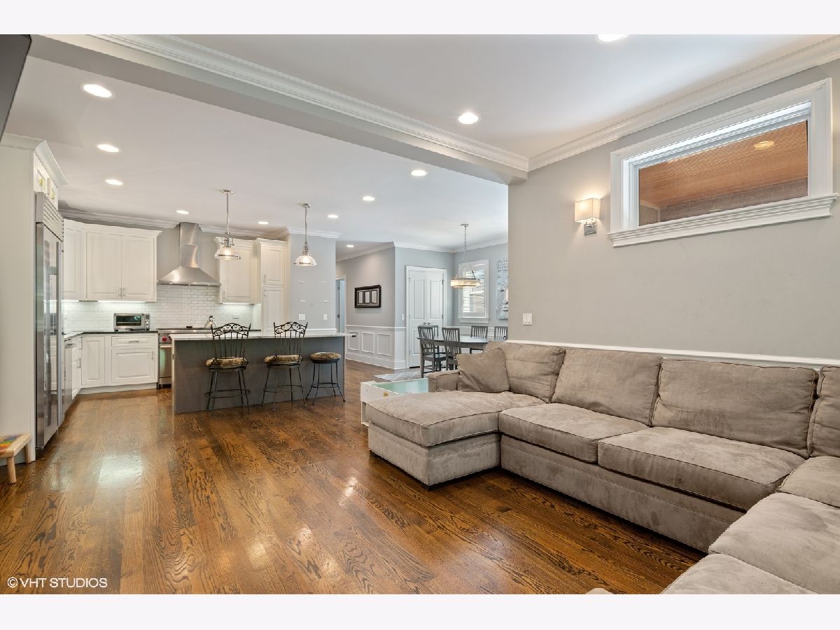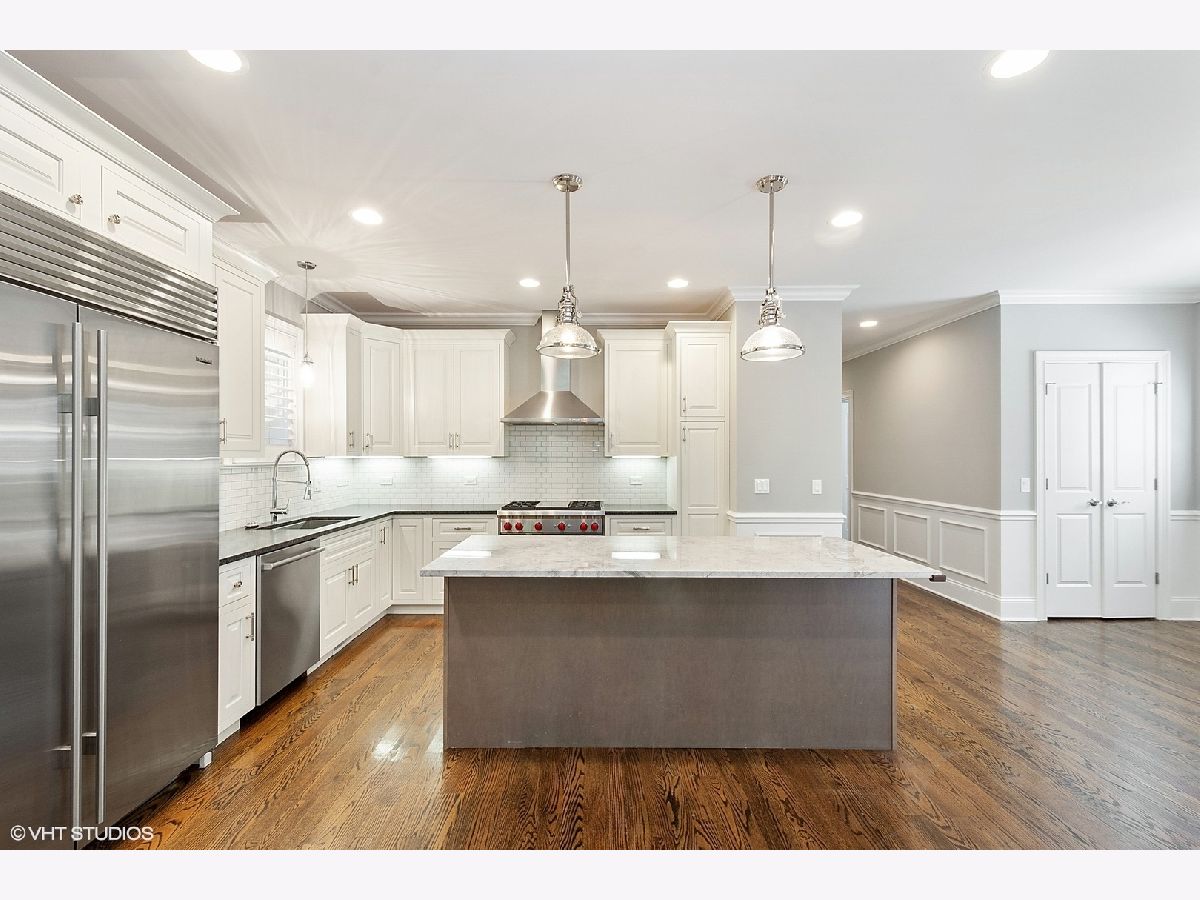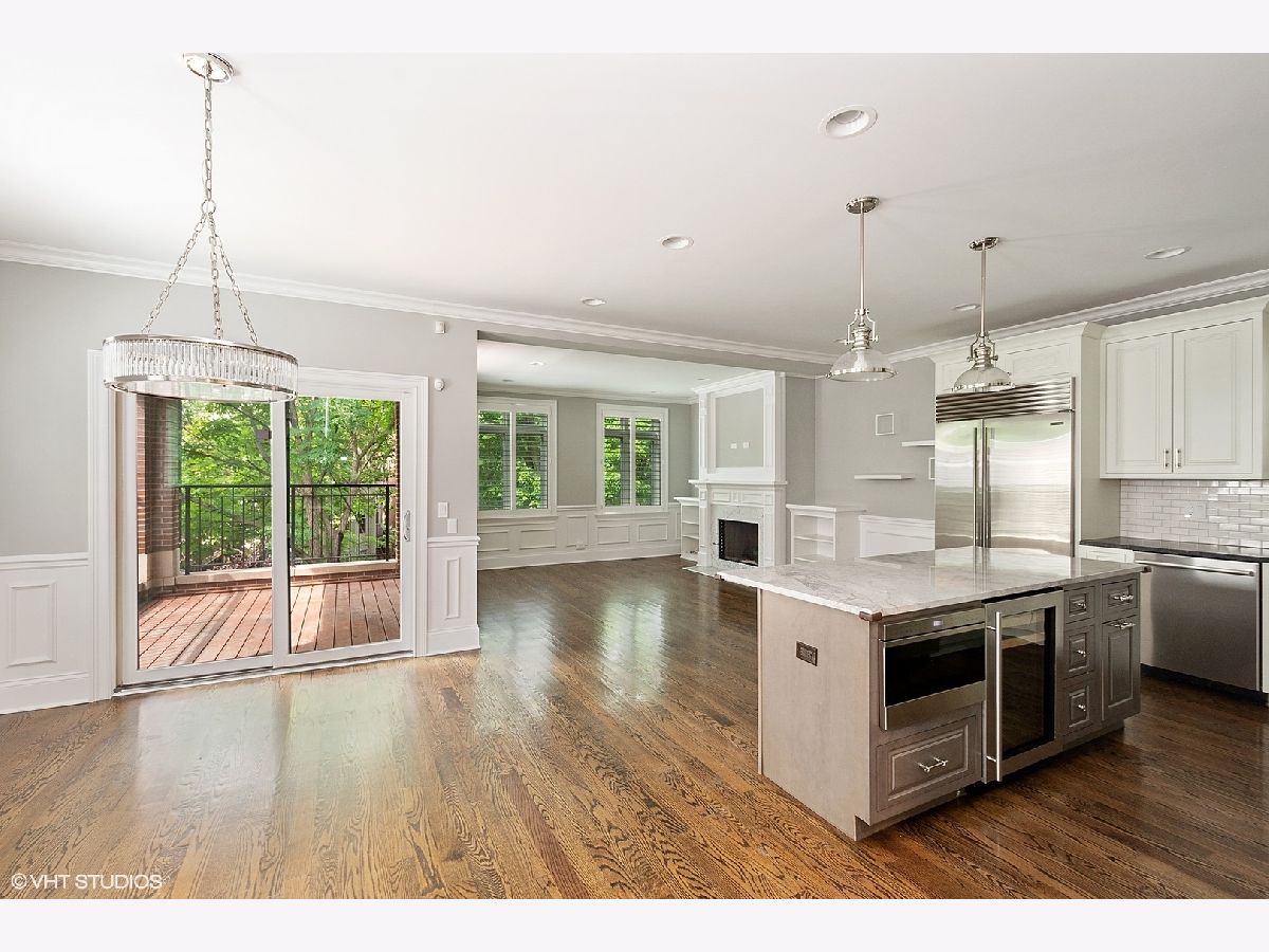 Extra wide and flooded with light, this Roscoe Village condo is BETTER than new. White chef's kitchen with oversized island, Sub-Zero and Wolf appliances opens to generously-sized living and dining spaces. Exceptional details throughout include custom millwork, attractive custom wood shutters, hardwood floors, and beautiful fireplace. Oversized balcony off dining room and large PRIVATE rooftop deck above the garage. Luxurious bathrooms throughout, including a large master bath featuring steam shower. Garage Parking space included. Walk to everything!