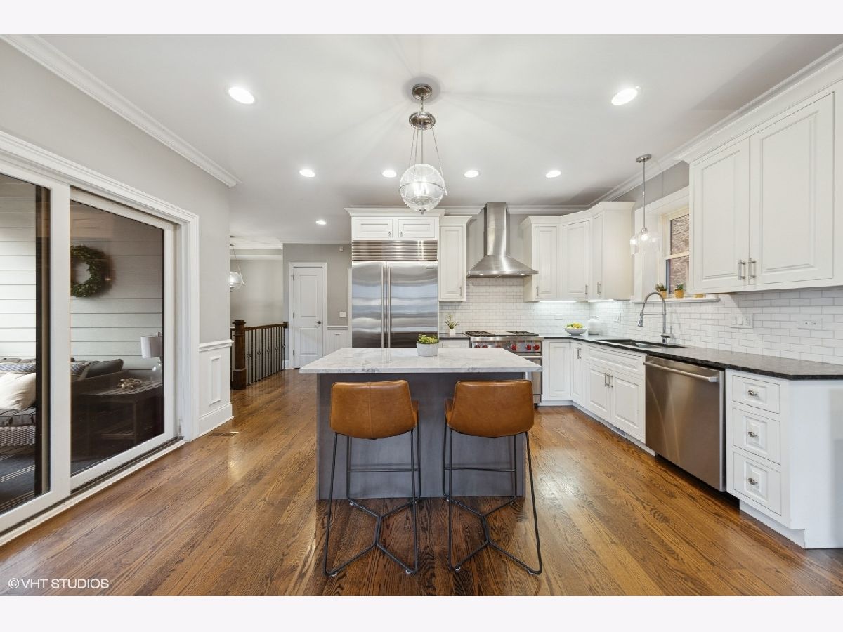 MULTIPLE OFFERS RECEIVED....CALLING FOR HIGHEST AND BEST BY 1:00 PM TOMORROW 4/7...NO ESCALATION CLAUSES PLEASE... Gorgeous wide condo with high end finishes and stunning millwork. 3BD/2.5BA in a boutique four unit building with two private outdoor entertaining spaces. Constructed in 2015, the open concept floorplan is flooded with natural light from southwest exposure. Kitchen features ample cabinet space with top of the line Subzero refrigerator, Wolf range and Bosch dishwasher as well as a built-in beverage cooler in the island with quartz countertops. Hardwood floors and high ceilings throughout main level. Bright living room with gorgeous millwork and gas fireplace . All three spacious bedrooms located on lower level with radiant heated floors, new carpet in all bedrooms and an in unit washer/dryer. Primary bedroom boasts a walk in closet and amazing bathroom with marble tile, large double vanity and spa like steam and rain shower. Second bath with jetted tub. Spacious covered patio off living space as well as walkway to large deck on top of garage. Includes one garage parking space. Conveniently located near Addison CTA train stop in Roscoe Village. Walking distance to Trader Joe's, Whole Foods,Target, Brown Line, Southport Corridor and one mile to Wrigley Field! Near numerous parks for kids/pets. Hamilton School district. Great neighborhood!
