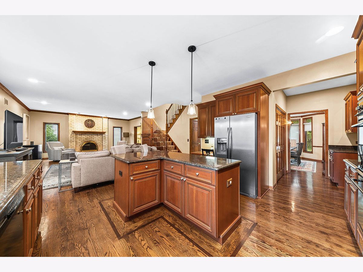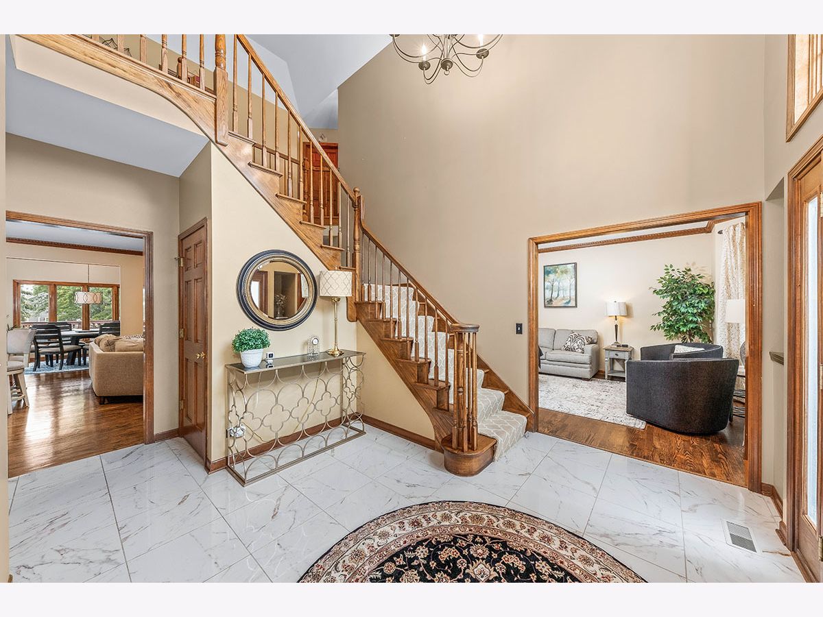 Stunning custom built 3,815 sq/ft home with an additional 1,078 sq/ft high end custom finished basement. This home is just what you have been looking for. The inviting two story foyer has marble flooring & dual staircase. The dining room has a butler pantry for ease in entertaining. This kitchen is a chef's delight with granite countertops, stone back splash, island, pantry, recessed lighting, eating area, plenty of cabinets and hardwood floors with inlays. Volume ceilings and hardwood floors through most of the first floor. Library/Den has built-in bookshelves. California closets and organizers in all closets and pantry. The Sunroom has views of the expansive park like yard. Upstairs the Master bedroom suite with tray ceiling and sitting area includes his and her closets. Luxurious Master bath that boasts walk in shower with dual rain shower heads, soaking tub & heated flooring. Three spacious bedrooms adjacent to updated hall bath. Expansive finished lookout basement with bar, game area, full bath & workshop. 1st floor laundry with exterior access. Tall 3 car garage with loft for storage. Rare half acre plus professional landscaped lot with sprinkler system. Spacious private deck for enjoying cookouts or just relaxing after a long day. In last 3 years new tankless water heater, Air Conditioner, Washer and Dryer. Highly acclaimed district 203 schools, Ranchview Elementary, Kennedy Junior High, and Naperville Central High. Blocks away from Greene Valley Forest Preserve and the extensive DuPage County and Regional bike trails. Conveniently located to shopping, schools, parks, restaurants and interstate. 15 minute drive to Lisle Train w/ express Metra to city. Welcome Home!!