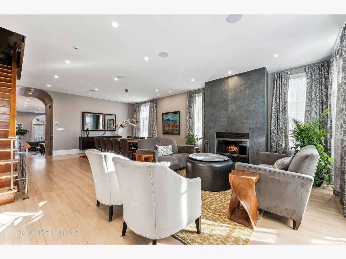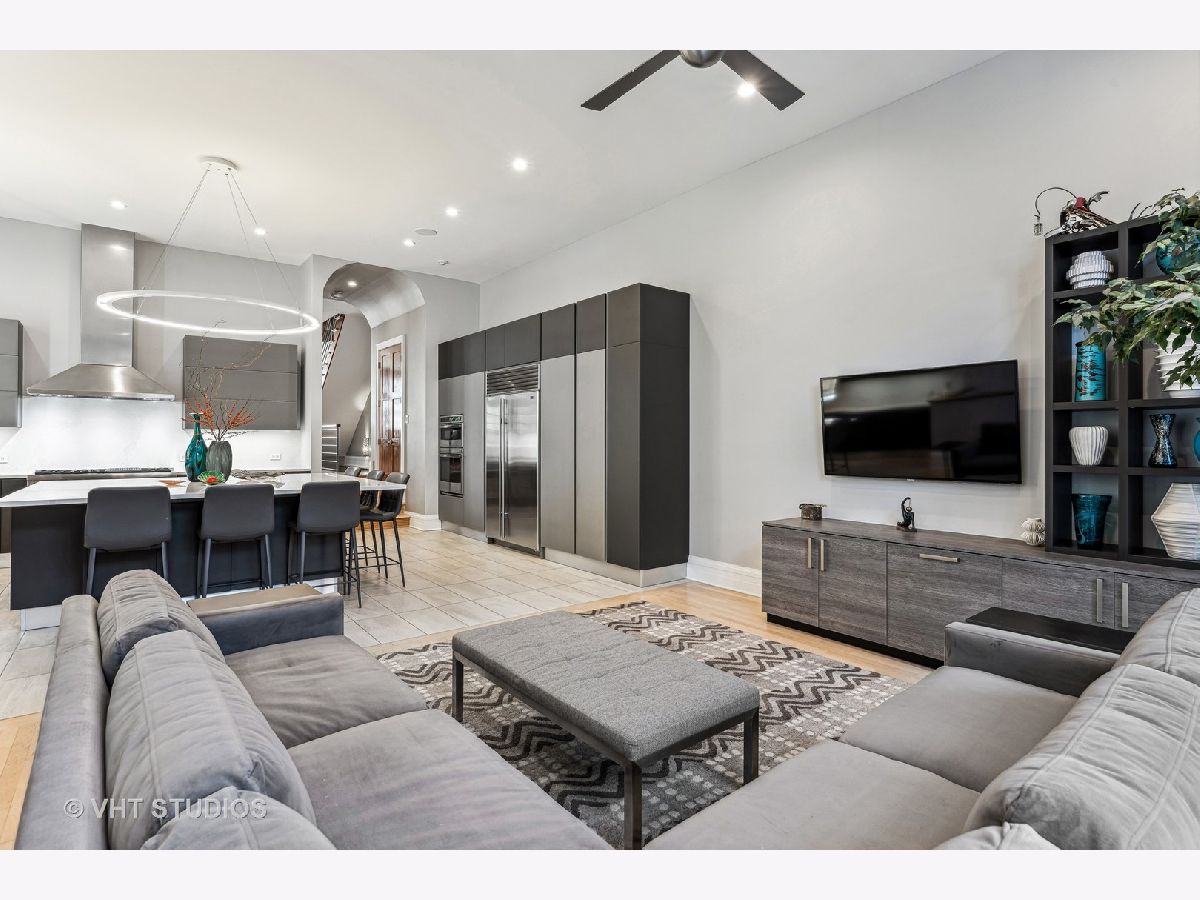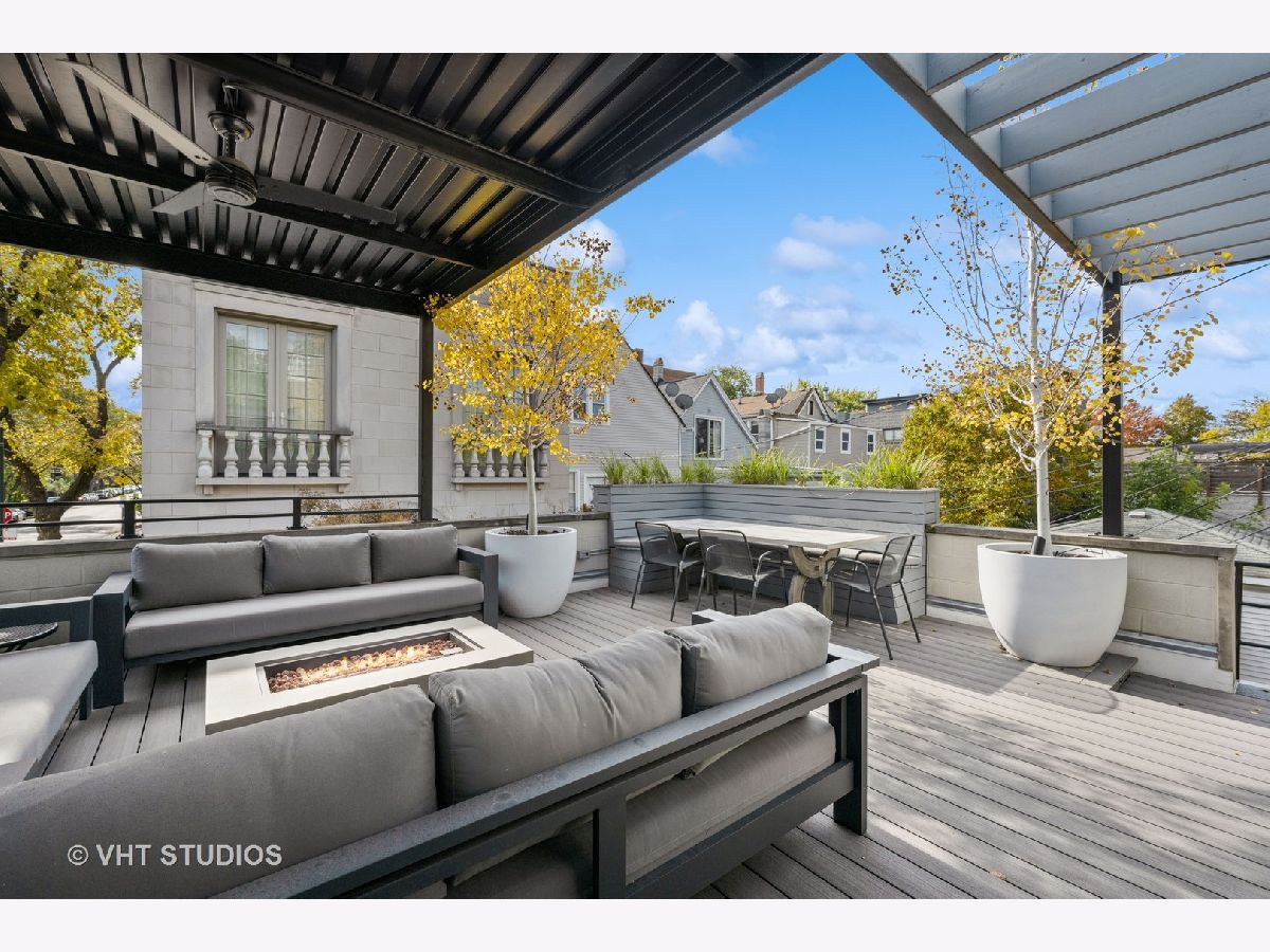 SOLD BEFORE PRINT. This stunning 6-bedroom, 5.1 bath home nestled on a corner lot in the heart of Bucktown, offers a harmonious blend of style, space and sophistication. This spacious residence features an open-concept living and dining area graced with hardwood floors and large windows allowing an abundance of natural light. The extra-wide floor plan, anchored by a statement fireplace, is designed for entertaining at scale or hosting family gatherings. The newly renovated gourmet kitchen showcases a professional Thermador range with grill top, Sub Zero refrigerator, GE wall ovens, Electrolux beverage refrigerator, ice maker, Scavolini cabinetry, Quartz countertops and a custom oversized island with seating. The adjacent family room is a sun-filled comfortable retreat. Upstairs, the spacious primary suite boasts a fireplace, large walk-in closet and spa-inspired bath with separate vanities, walk-in shower and luxurious tub. Two secondary bedrooms share an updated bathroom, and a second-floor laundry closet complete this level. Penthouse level finds office/bedroom with en suite bath. Lower level features high ceilings, generous media/recreation room, two additional bedrooms, two full baths, extra laundry room and abundant storage. Enjoy great outdoor space with a private patio - perfect for grilling and dining al fresco. Updated garage roof deck is outfitted with with heaters, outdoor fridge, fire table and pergola. The attached two-car garage provides the ultimate convenience. Ideally located with easy access to 90/94, Clybourn Metra, 606 trail, Drummond play lot, Walsh Park, dining options, shopping and nightlife. This property is the pinnacle of urban living!