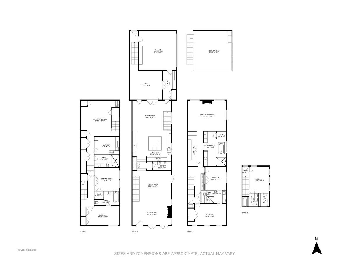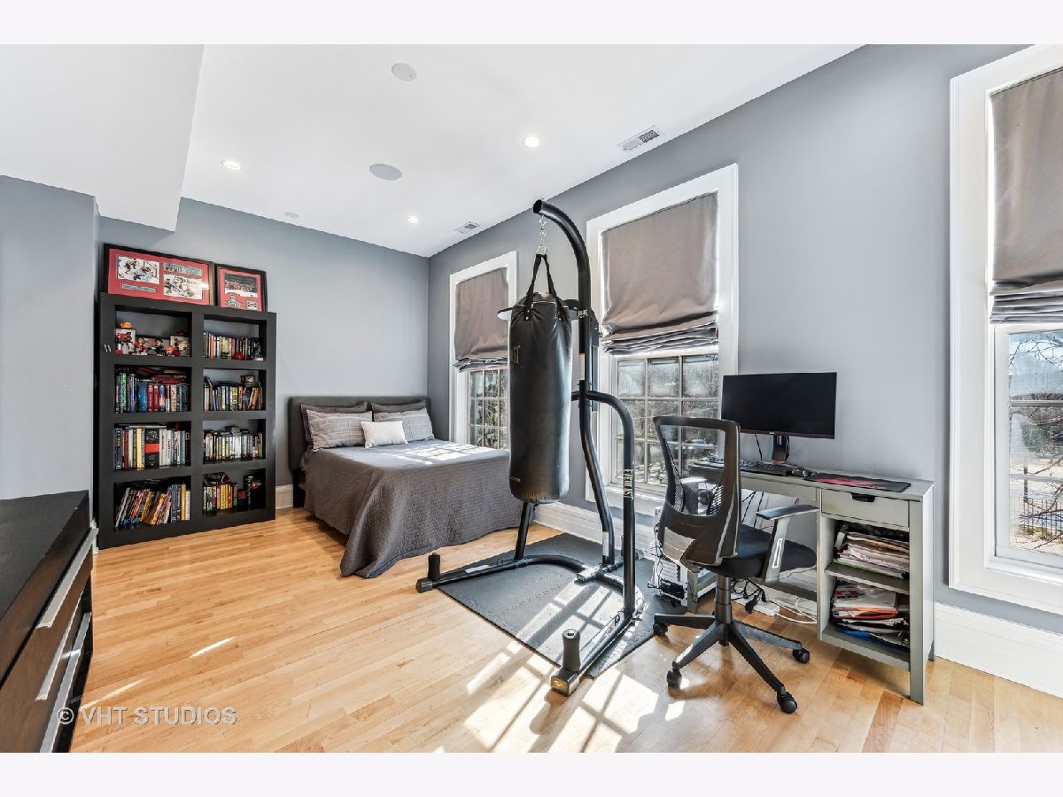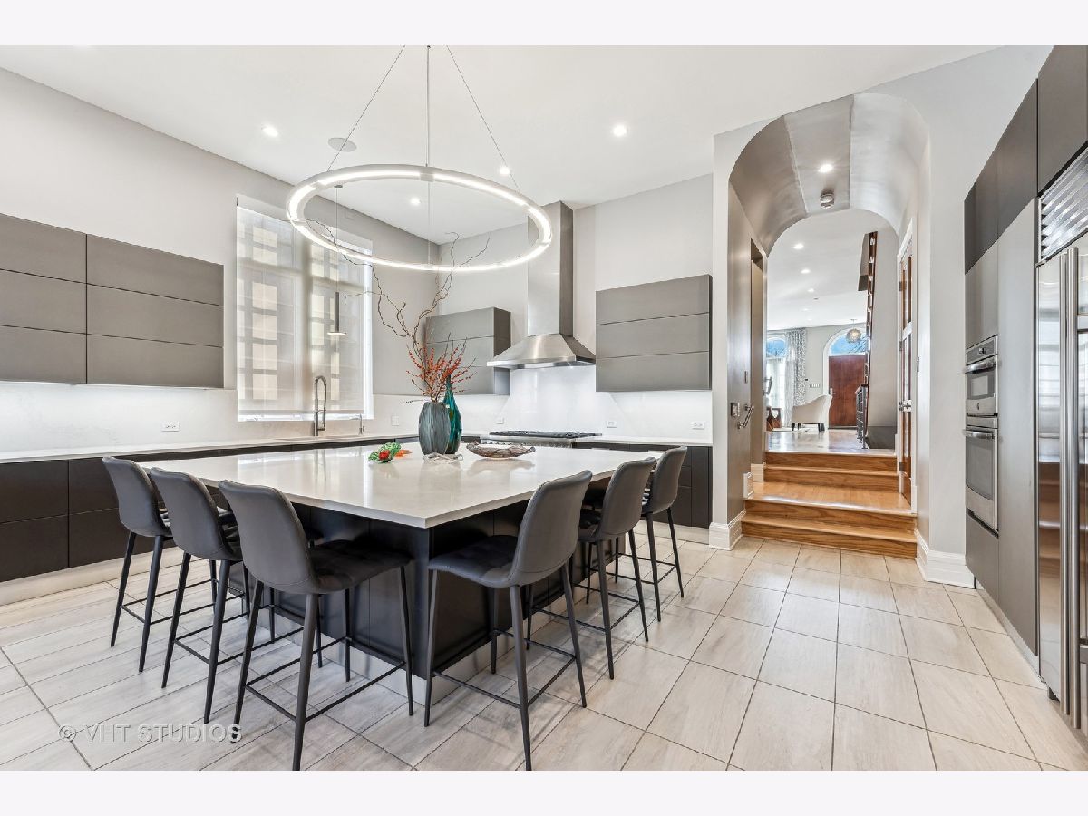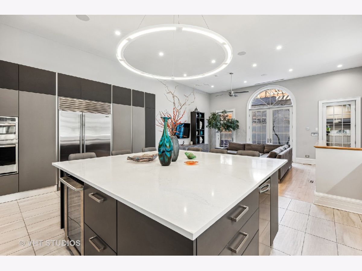 SOLD BEFORE PRINT. This stunning 6-bedroom, 5.1 bath home nestled on a corner lot in the heart of Bucktown, offers a harmonious blend of style, space and sophistication. This spacious residence features an open-concept living and dining area graced with hardwood floors and large windows allowing an abundance of natural light. The extra-wide floor plan, anchored by a statement fireplace, is designed for entertaining at scale or hosting family gatherings. The newly renovated gourmet kitchen showcases a professional Thermador range with grill top, Sub Zero refrigerator, GE wall ovens, Electrolux beverage refrigerator, ice maker, Scavolini cabinetry, Quartz countertops and a custom oversized island with seating. The adjacent family room is a sun-filled comfortable retreat. Upstairs, the spacious primary suite boasts a fireplace, large walk-in closet and spa-inspired bath with separate vanities, walk-in shower and luxurious tub. Two secondary bedrooms share an updated bathroom, and a second-floor laundry closet complete this level. Penthouse level finds office/bedroom with en suite bath. Lower level features high ceilings, generous media/recreation room, two additional bedrooms, two full baths, extra laundry room and abundant storage. Enjoy great outdoor space with a private patio - perfect for grilling and dining al fresco. Updated garage roof deck is outfitted with with heaters, outdoor fridge, fire table and pergola. The attached two-car garage provides the ultimate convenience. Ideally located with easy access to 90/94, Clybourn Metra, 606 trail, Drummond play lot, Walsh Park, dining options, shopping and nightlife. This property is the pinnacle of urban living!