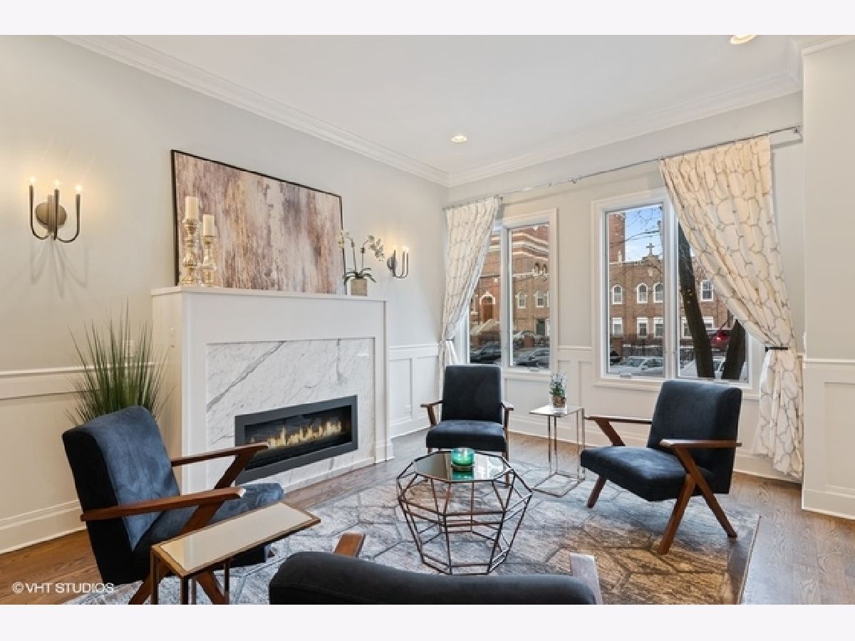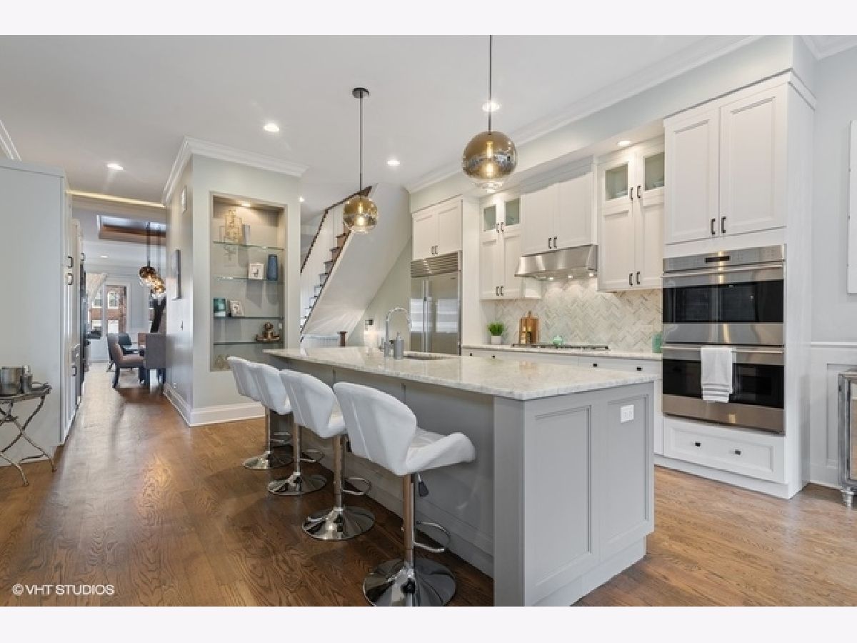 Better than new construction! Built in 2015, your new home is perfectly situated on a quiet, tree-lined street in Chicago's family-friendly, yet hip and trendy Bucktown neighborhood. Exquisitely modernized and effortlessly chic features are just the beginning of what this highly upgraded full masonry home has to offer! Prepare to be wowed by this homes stunning features including a sun-filled East facing living/dining room with tray lit ceiling catering to everyday living and entertaining, tasteful wainscoting, sleek designer light fixtures throughout, custom-built floor to ceiling stacked marble fireplace with brand new 60" recessed TV included, impressive kitchen with abundant custom cabinetry, Sub-Zero fridge/freezer, Wolf double oven and cooktop, quartzite counters with oversized island, sleek herringbone marble backsplash and a butler's pantry with a second dishwasher and 1,000 bottle wine cellar. Directly off your family room, head out to your multi-tier deck leading to your magazine featured private urban oasis highlighted by an outdoor kitchen w/ built-in gas grill and counter, porcelain tiles, built-in ipe planters, stone TV wall, outdoor gas fire pit and multiple heaters recessed into a covered pergola atop your 2.5 car garage for year-round enjoyment with electric car charger installed. Sunfilled basement with 10' ceilings and radiant heated floors, two additional bedrooms + full bath, temperature-controlled wine room, wet bar, fireplace and huge windows with East exposure. Grab a drink in the wet bar of the dog house leading out to the full rooftop deck and be wowed by the padded turf, composite decking, water, gas, electric, speakers and endless opportunities! And not to be overlooked, taxes are only $22,981!!!