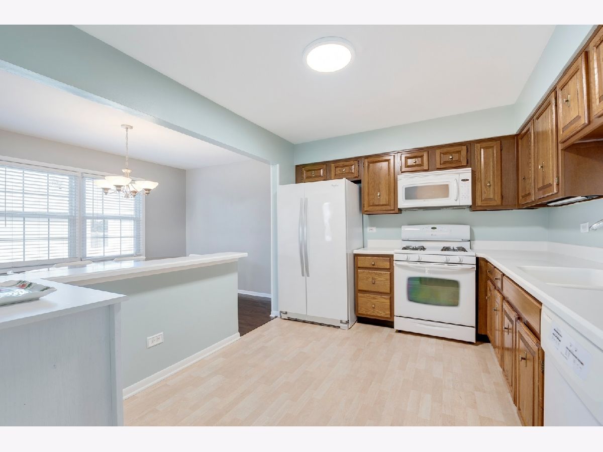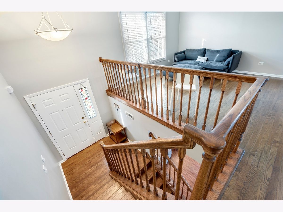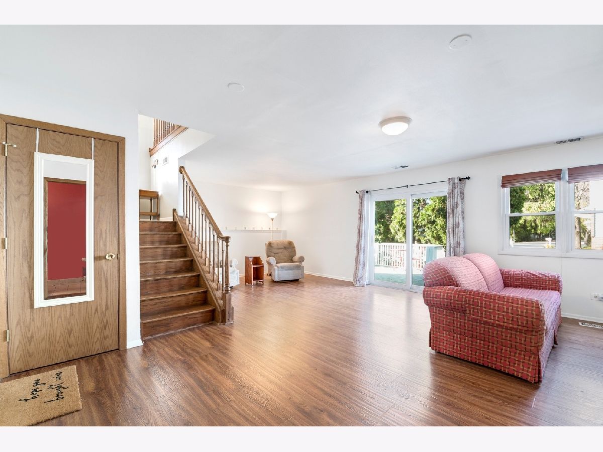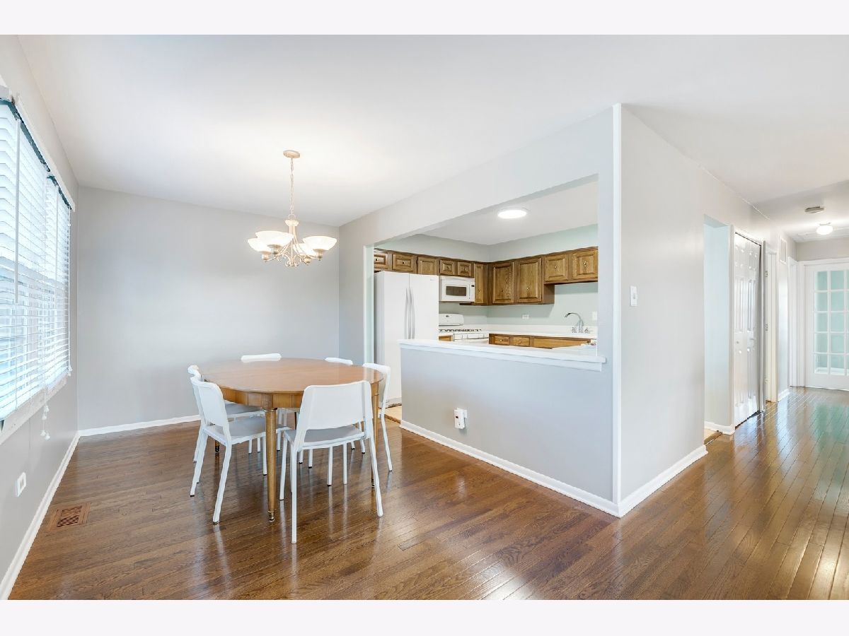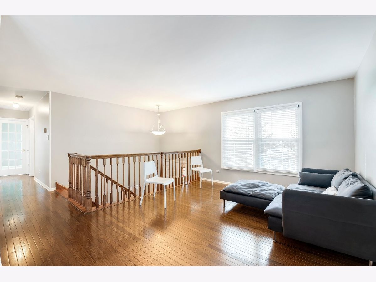 Spacious end unit townhome with 2400 sq. ft. of living space! Several great options for working or teaching from home. Light and bright first floor with Hardwood flooring in living room/dining room/hall, open kitchen, large living room, 3 bedrooms and Master bedroom shared full bath. Corner bedroom has glass pane door and bright southern exposure-perfect for home office or school room. Huge lower level family room flooded with natural light and ample space for recreation, plus a huge area for toy room/home office/school room/fitness equipment. Sliding glass door leads to large deck and green space. Full bath on lower level plus a giant laundry room with sink, space for storage and craft/desk/workroom area. More storage under the stairs and a full two car garage. New or newer-- concrete driveway and sidewalk, roof, AC and hot water heater. Close to expressways, Metra, schools, parks and shopping.