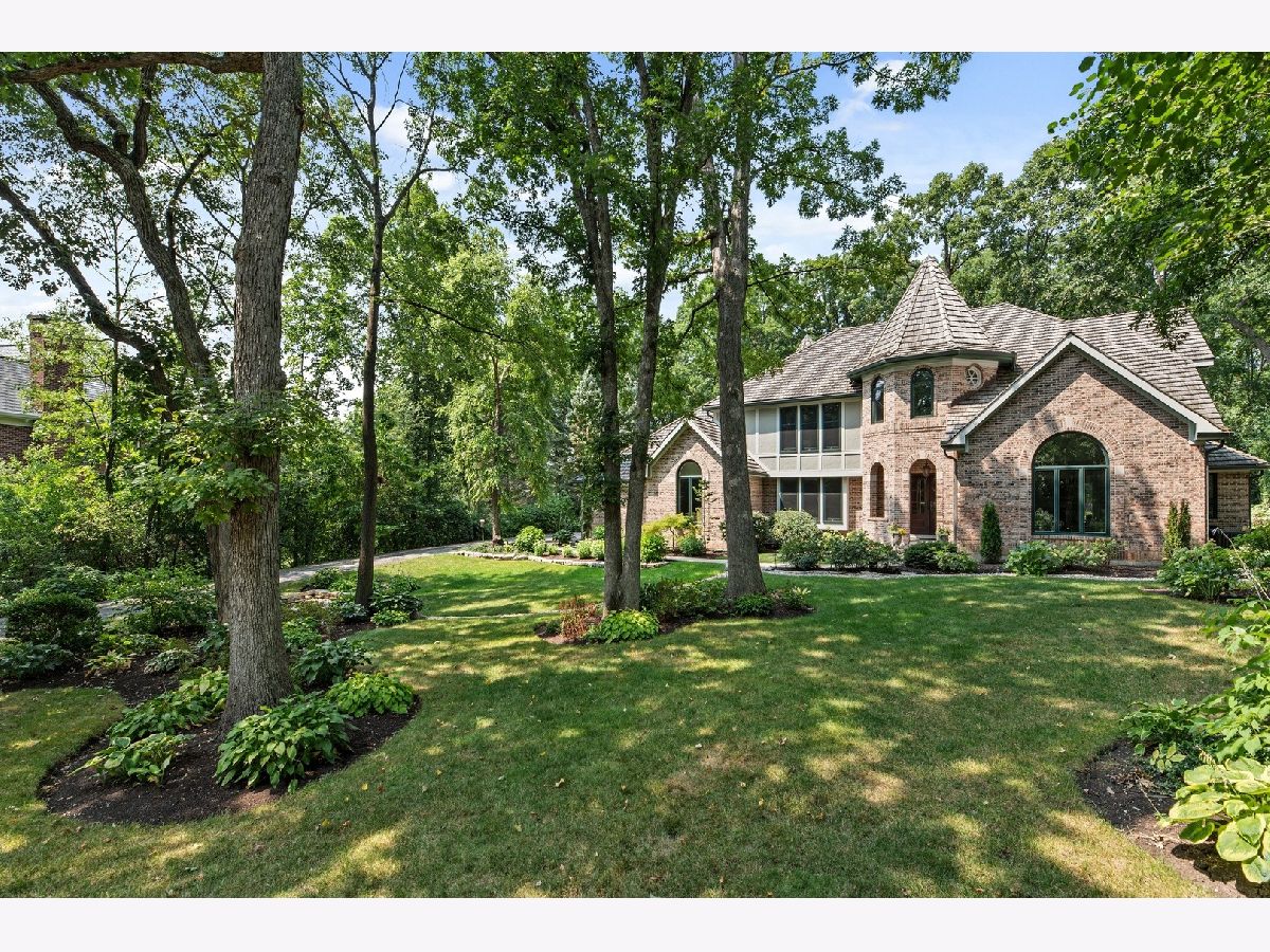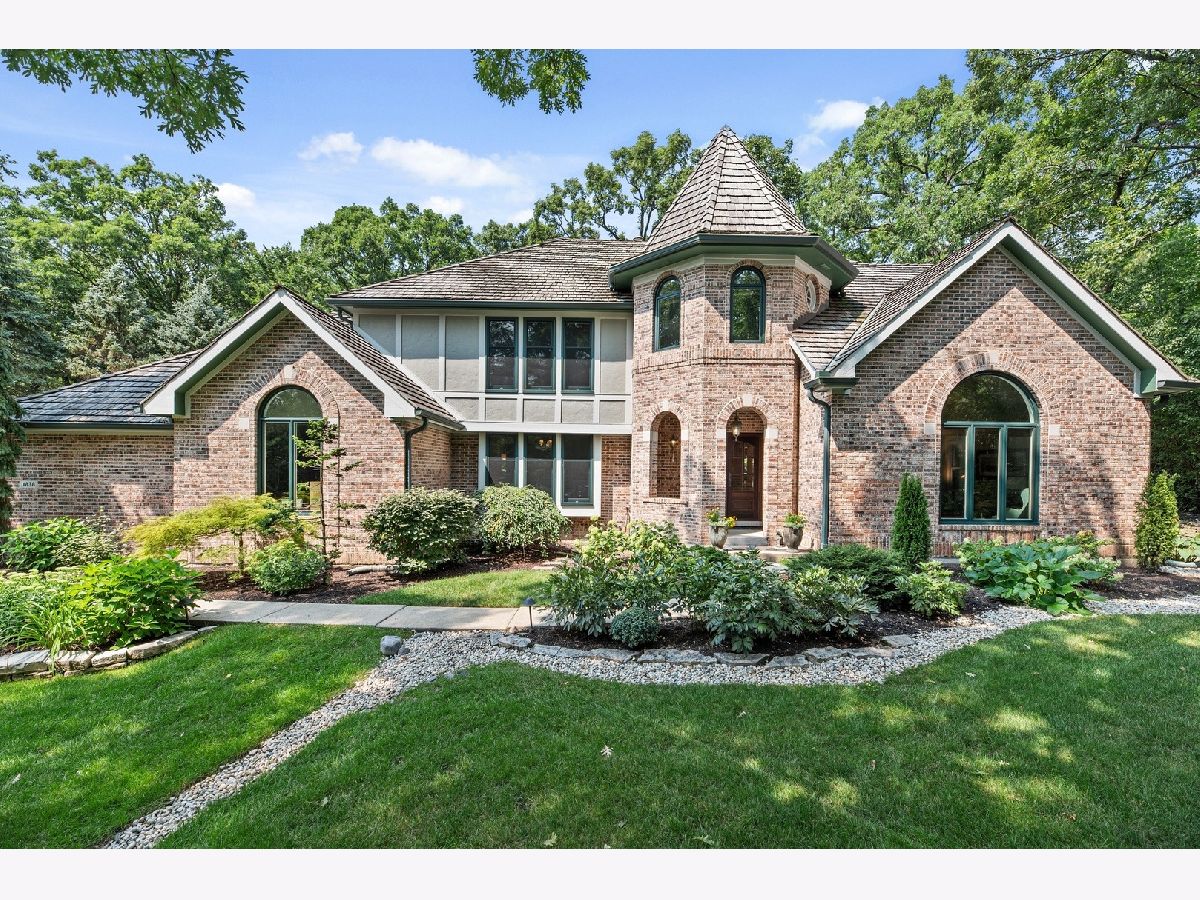 Lots of privacy on a quite, cul-de-sac location! This brick Tudor-style home sits on a beautifully landscaped one acre lot. Recent improvements include new HVAC, water heaters, windows, newer appliances, and garage doors. Plus, the roof was replaced in 2007. Custom architectural details, millwork, and hardwood flooring throughout most rooms and a flexible floor plan provides many unexpected features. The first floor offers a large living room with built-ins, separate dining room with coffered ceiling, family room with fireplace, sun-filled OFFICE or sitting room, eat-in-kitchen with breakfast room, plus large mudroom with dog bath. Upstairs features four bedrooms plus a bonus room and laundry. Spacious master suite with dual vanity, walk-in shower, and jetted tub. The third floor has an amazing walk-up play space with a mini half basketball court. Entertain in the private backyard showcasing gorgeous perennial gardens and a built-in fire pit. So many unique spaces and features in this special home providing an exceptional value. Move in ready!