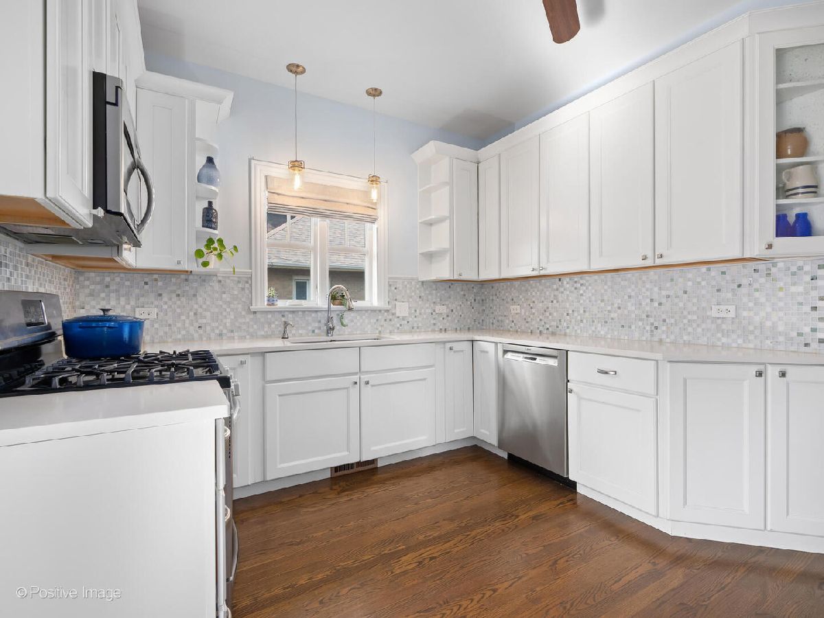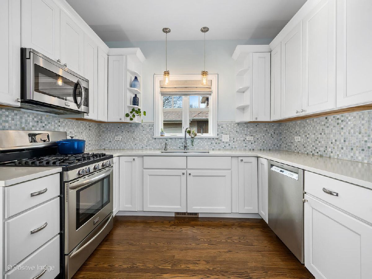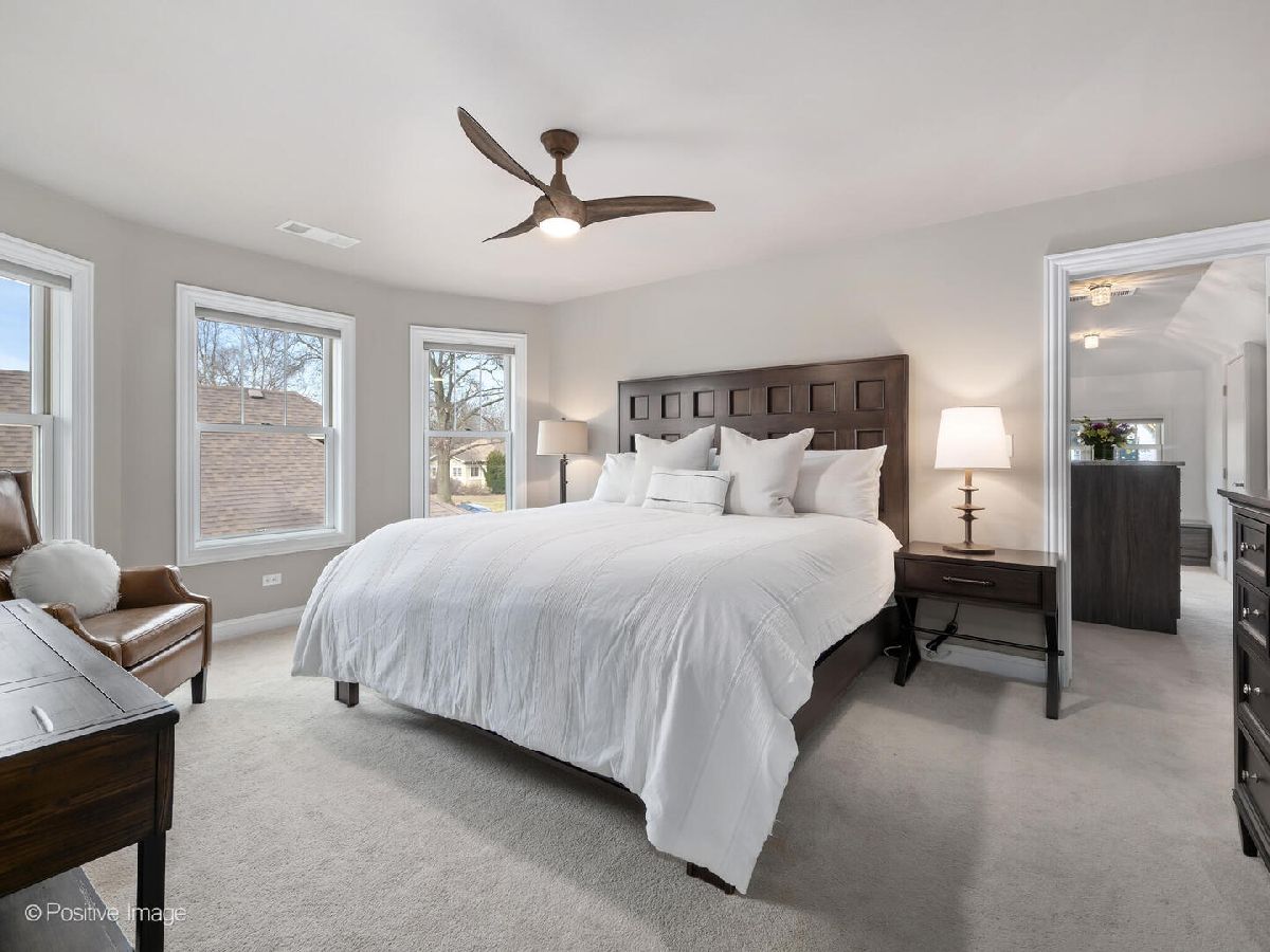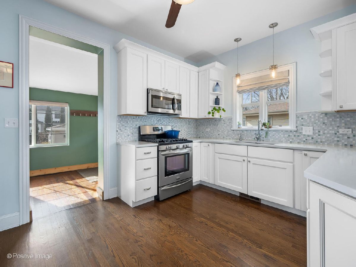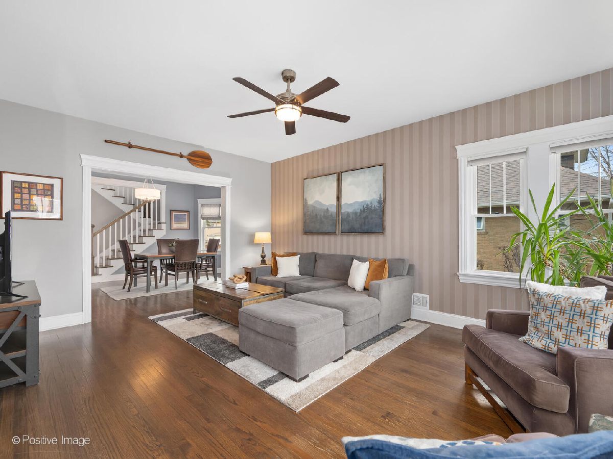 Celebrating over 100 years of history, this expanded brick and Hardie board bungalow seamlessly blends timeless charm with modern sophistication. From the moment you step inside this 5-bedroom, 3-bath home, you'll notice the impeccable craftsmanship and thoughtful design. The sunlit front living room, anchored by wrap around, new windows, sets a warm and inviting tone. Just beyond, a generously sized dining room leads to the beautifully updated kitchen, complete with white shaker cabinets, a mosaic tile backsplash and stainless steel appliances (with plenty of room to add more cabinetry next to the fridge, if desired). A brightly lit bonus room, overlooking the serene and beautifully landscaped backyard and paver patio, offers a peaceful retreat or an ideal home office setup. The main level also features two spacious bedrooms and a tastefully updated full bath. Upstairs, the second-floor addition is a true showstopper. The expansive primary suite boasts a rare walk-in closet outfitted with custom storage, a center island, and a cozy window seat. Two additional bedrooms share this level, along with a luxurious bath featuring dual sinks, an oversized shower, high-end finishes, and a large linen closet. The basement offers plenty of potential with a full bath, laundry room, and convenient exterior access to the backyard. Situated on a quiet, tree-lined street, this prime location is steps from vibrant downtown, the new Field Elementary School, the train, parks, and more.