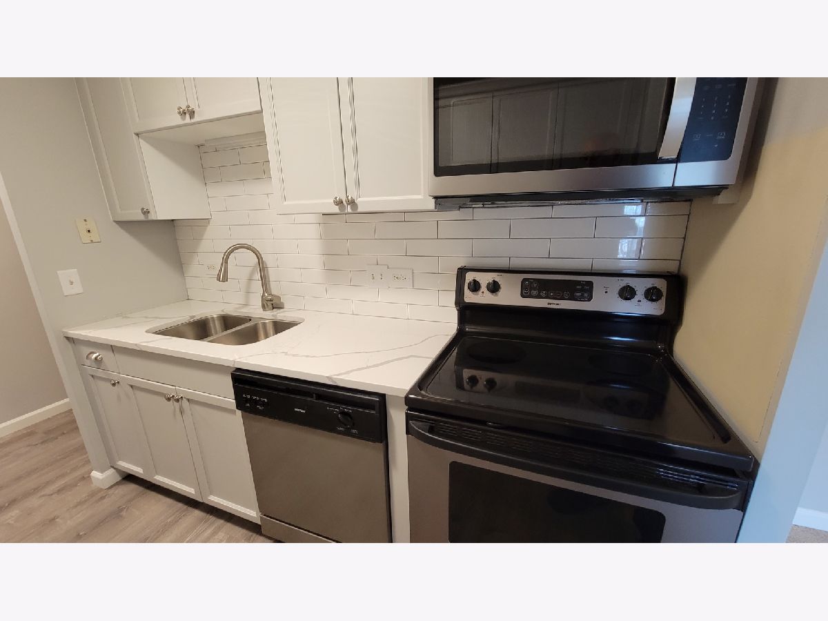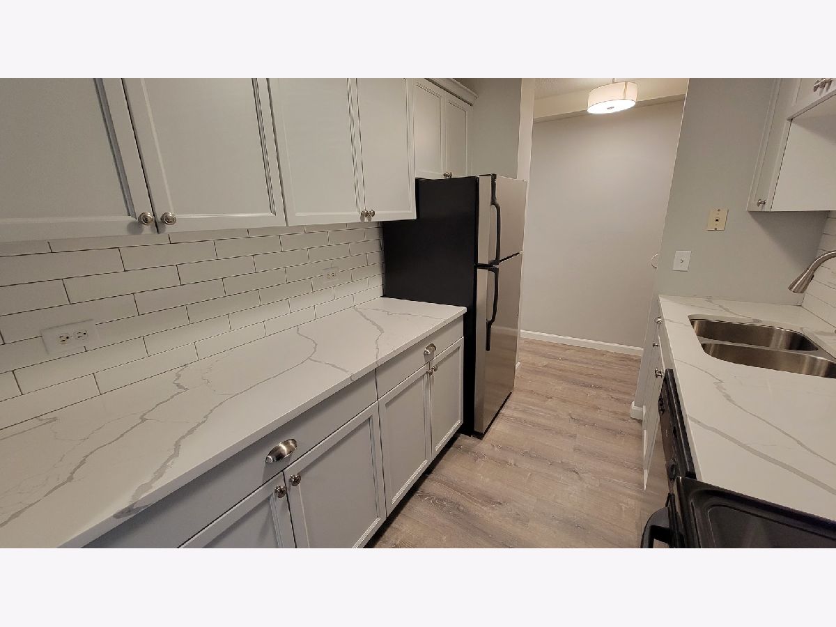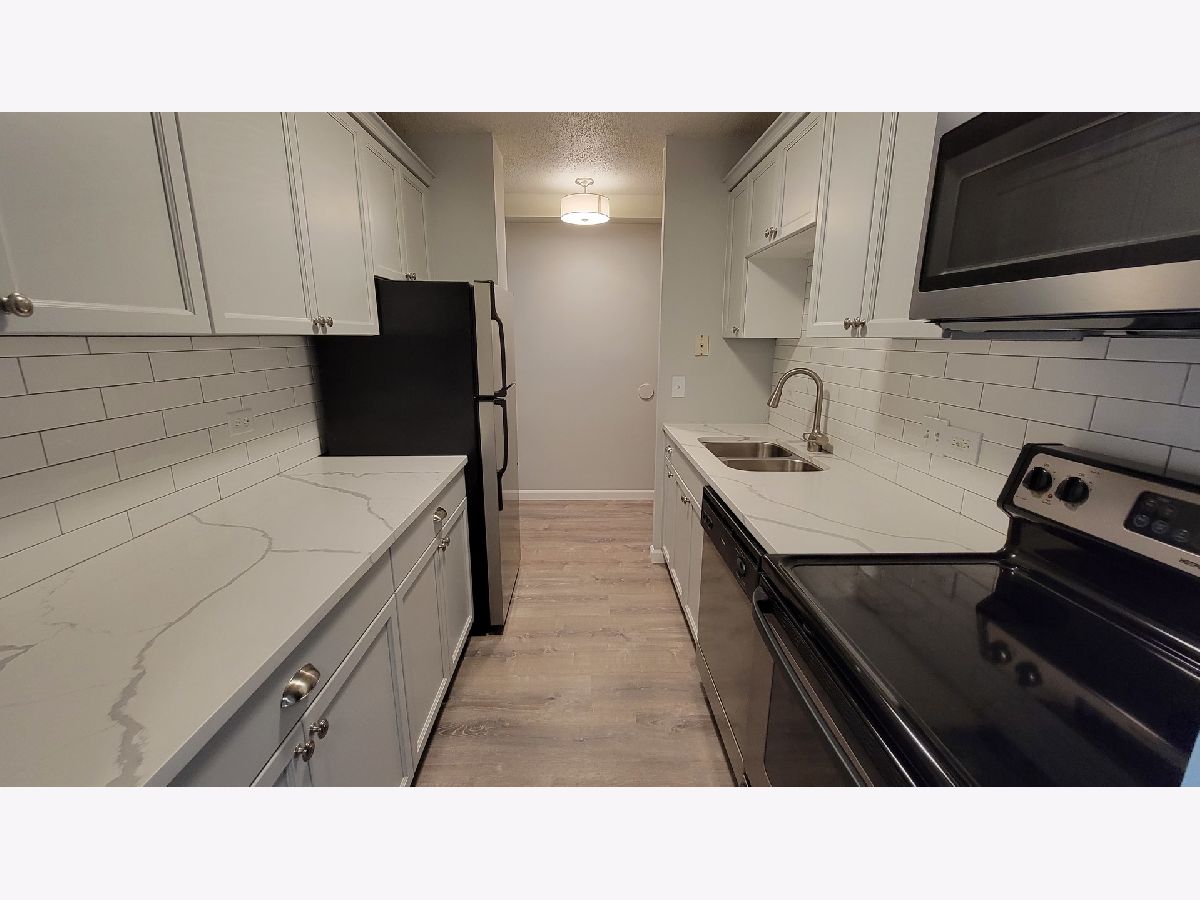 Tastefully remodeled Huntington Grove condo in an elevator building. New kitchen cabinets, quartz counters. vinyl plank flooring and subway tile backsplash. Remodeled bath has all new tiles, vanity, sink and flooring. All new carpeting, paint and light fixtures. Private balcony facing South. Laundry room is converiently located next to the condo. HOA offers an outdoor pool, a fitness room, and bicycle storage. Move right in! Rentals are capped. Taxes will be lower, no Exemptions currently taken.