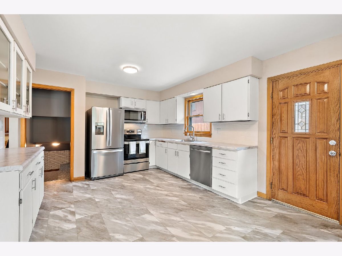 Nestled in a serene neighborhood, this meticulously maintained split-level brick home offers a perfect blend of comfort and style. The exterior showcases timeless brick architecture, complemented by a neatly landscaped front yard. Upon entering, you are greeted by a spacious and inviting living room flooded with natural light, thanks to large windows. The hardwood floors in the living room and hallway add a touch of warmth and elegance to the space. The combined kitchen and dining area provide a seamless flow, ideal for both everyday living and entertaining. The kitchen boasts modern stainless steel appliances, enhancing functionality and aesthetic appeal. This home features three bedrooms, each offering ample space and natural light, with hardwood floors continuing to create a cohesive and charming atmosphere throughout. The two updated bathrooms feature contemporary fixtures and finishes, ensuring both comfort and style. An enclosed breezeway connects the main house to a convenient two-car attached garage, providing sheltered access during inclement weather and additional storage space. Recent upgrades include a new roof installed in 2020, ensuring peace of mind for years to come in terms of maintenance and durability. With its practical layout, modern amenities, and tasteful updates, this split-level brick home is ready to welcome its new owners into a lifestyle of comfort and convenience.