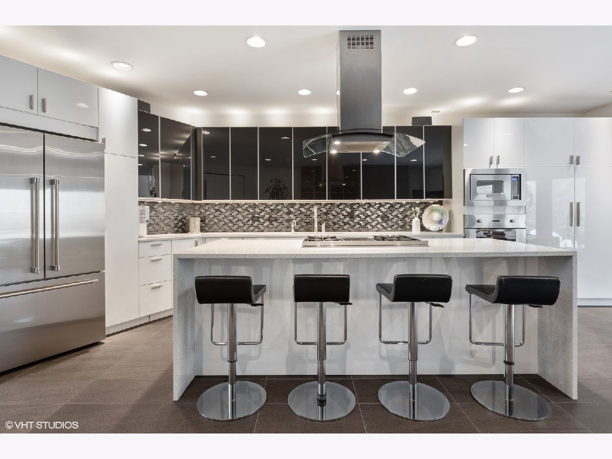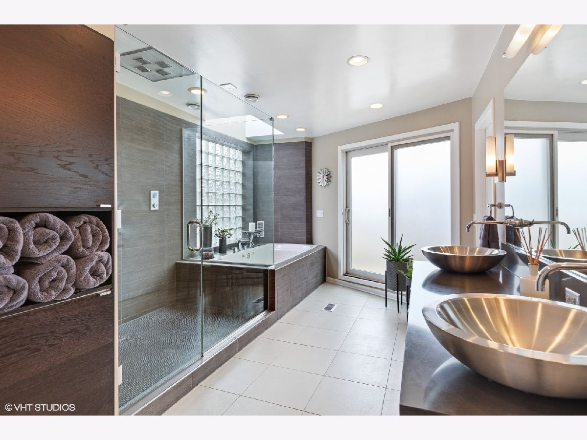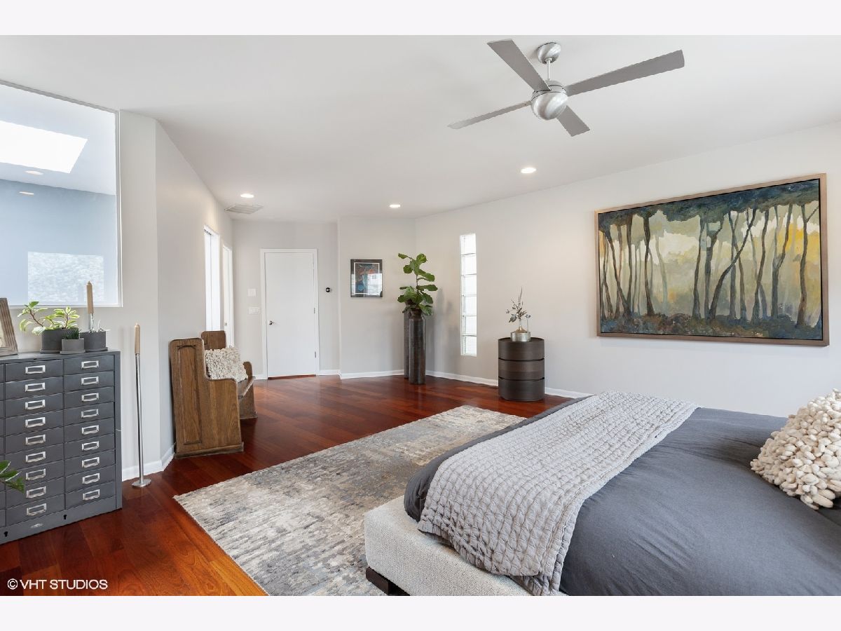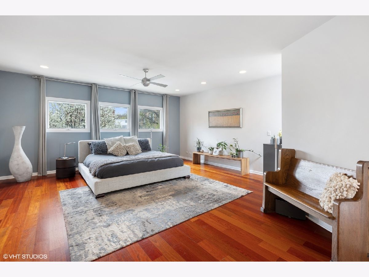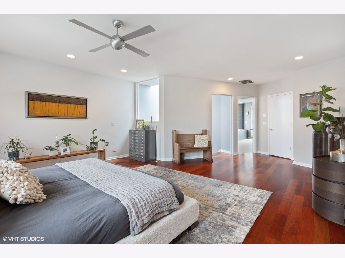 Come home to this Stunning modern Bucktown home originally by Lucas Development. This approximately 3000sf. three bedroom, 2.1 bath home was beautifully renovated in 2009. A gorgeous two story open foyer greets you into three stories of unique open, light-filled space, and four separate outdoor spaces, as well as a two car attached garage. Beautiful open living room is wrapped in glass, and opens to a large terrace. Huge Chef's kitchen offers gourmet appliances including Viking stove and Fisher and Paykel refridgerator and dishwasher, a huge island with breakfast bar, and room for a large dining area. A modern glass fireplace warms the room, making for perfect entertaining that opens to your second terrace in the back, beautifully tiled in porcelain pavers. Tons of cabinets and pantry storage. Heated Italian porcelain main level floors & Brazilan cherry throughout the rest of the house. Large 3rd level Master bedroom features a huge walk-in closet. A luxury Master bath offers a Kohler digital shower, jetted tub with skylight, double sinks & another private sun deck. 2nd floor bedrooms are large and sunny, with floor to ceiling glass block windows in one, and another opening to another outdoor oasis. Laundry up on second floor. Roofs, skylights redone in 2019, Decks in 2022, Masonry/tuckpointing 2012, Microwave/Refridgerator 2020, Dishwasher/Washer/Dryer 2019, top floor HVAC 2016, water heater 2016. Just steps from all that Bucktown and Wicker Park have to offer, and Damen Blue Line.