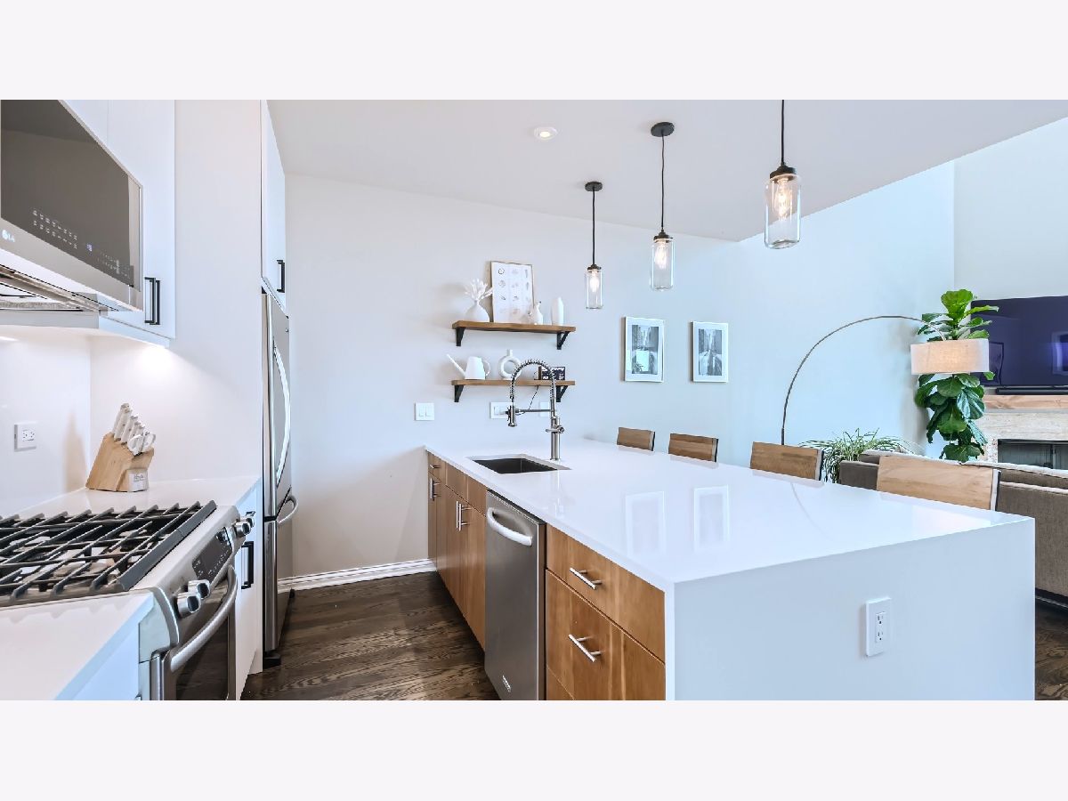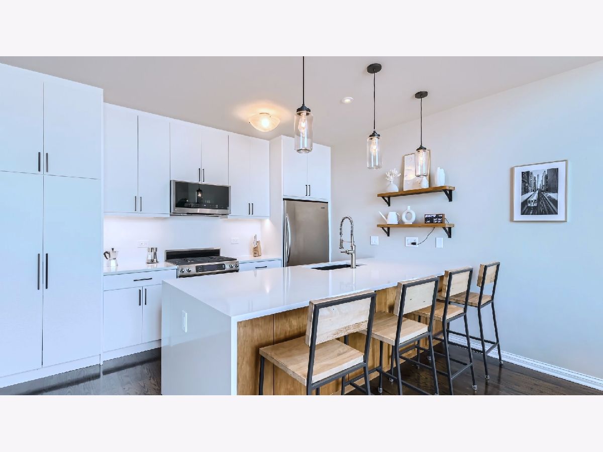 Stunning 3 bed 2 & 1/2 bath penthouse with an open floor plan, incredible ceiling height with floor to ceiling windows make the space feel bright and airy. With the kitchen cabinets recently redone and the island extended you have the perfect cooking and entertaining space. When not taking in the massive windows cozy up to the warm fireplace or prepare a dinner party in the separate dining area. On the main level you'll find a guest bed with an en-suite bathroom which also has hall access. The primary bedroom features its own fireplace, two huge walk-in closets and a sprawling bathroom with separate shower, tub and toilet room. There is even a cozy balcony off the primary suite to take in that morning coffee and tend to your southern exposure garden. Upstairs the loft bedroom functions wonderfully as a guest space with its own half bath or an office in the sky overlooking the huge space. From there, head up to the roof deck with 360 views, direct and impressive skyline views. The private garage has been completely remodeled to serve a dual function as a gym since there is an exterior parking space as well. Common area storage off of the garage compliments tons of space in the tall ceiling garage. Fantastic location in West Town/Ukrainian village with easy access to the Loop and West Loop. Grand itself is being transformed right now, to include wider sidewalks, slower speed limits, and more green space. Alliance Bakery moving in next door! This one has it all and is only going to get better!