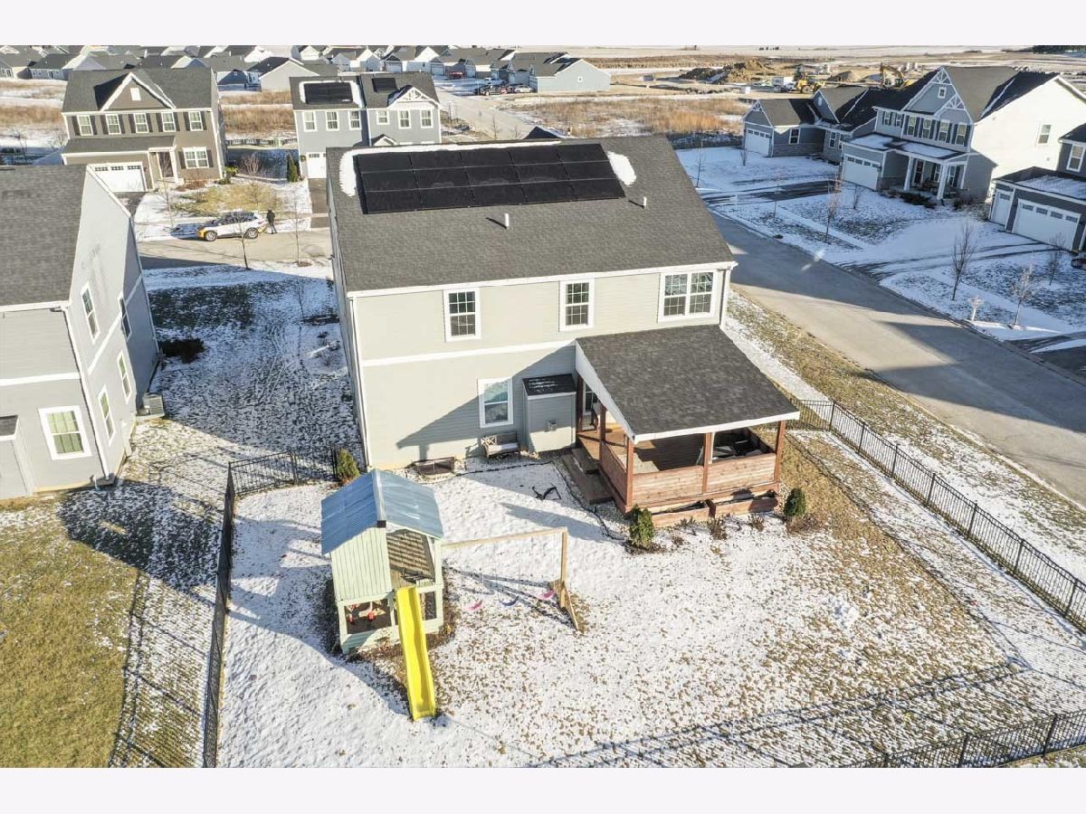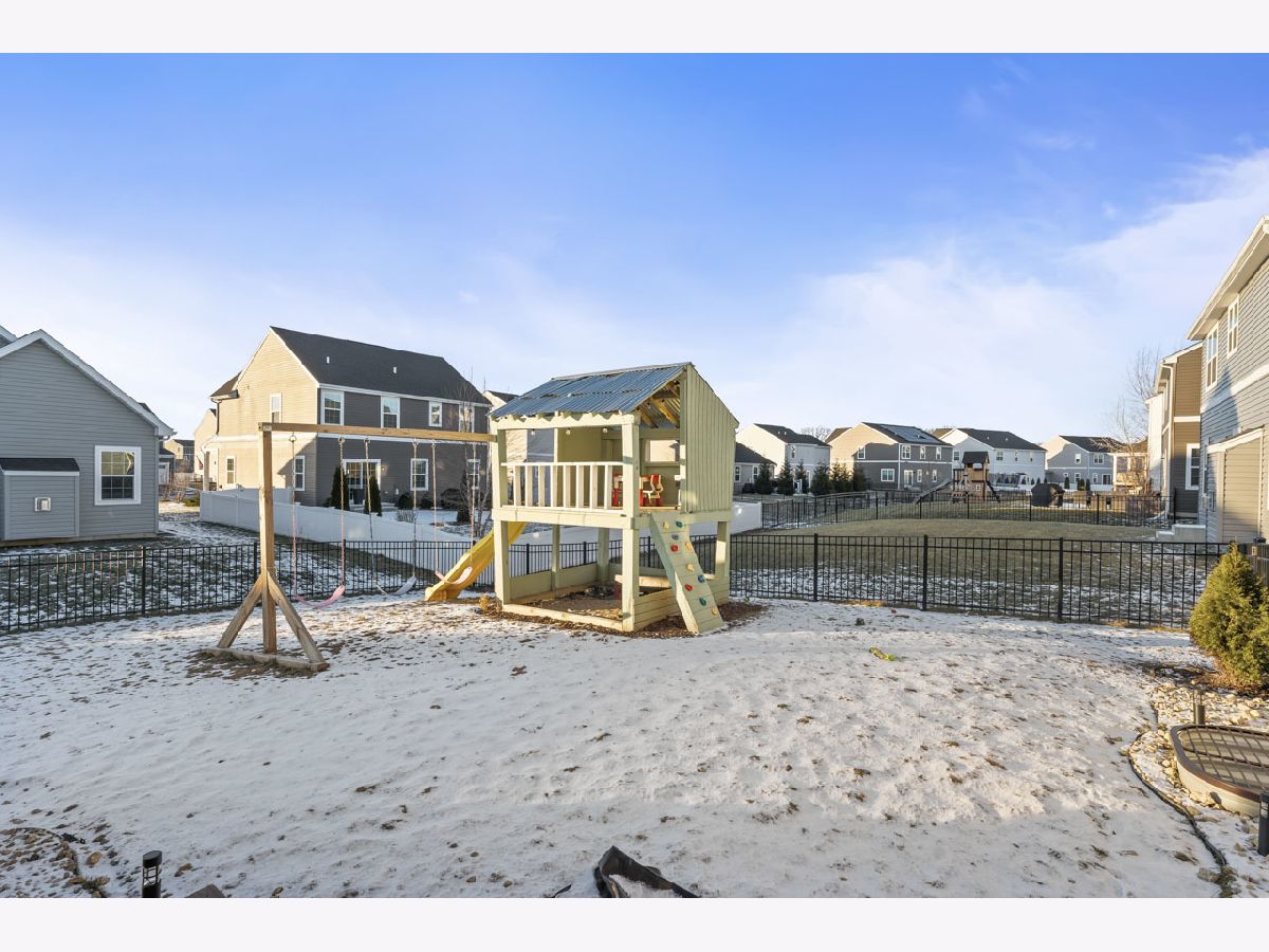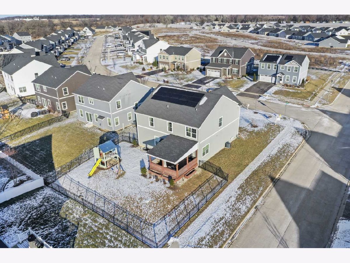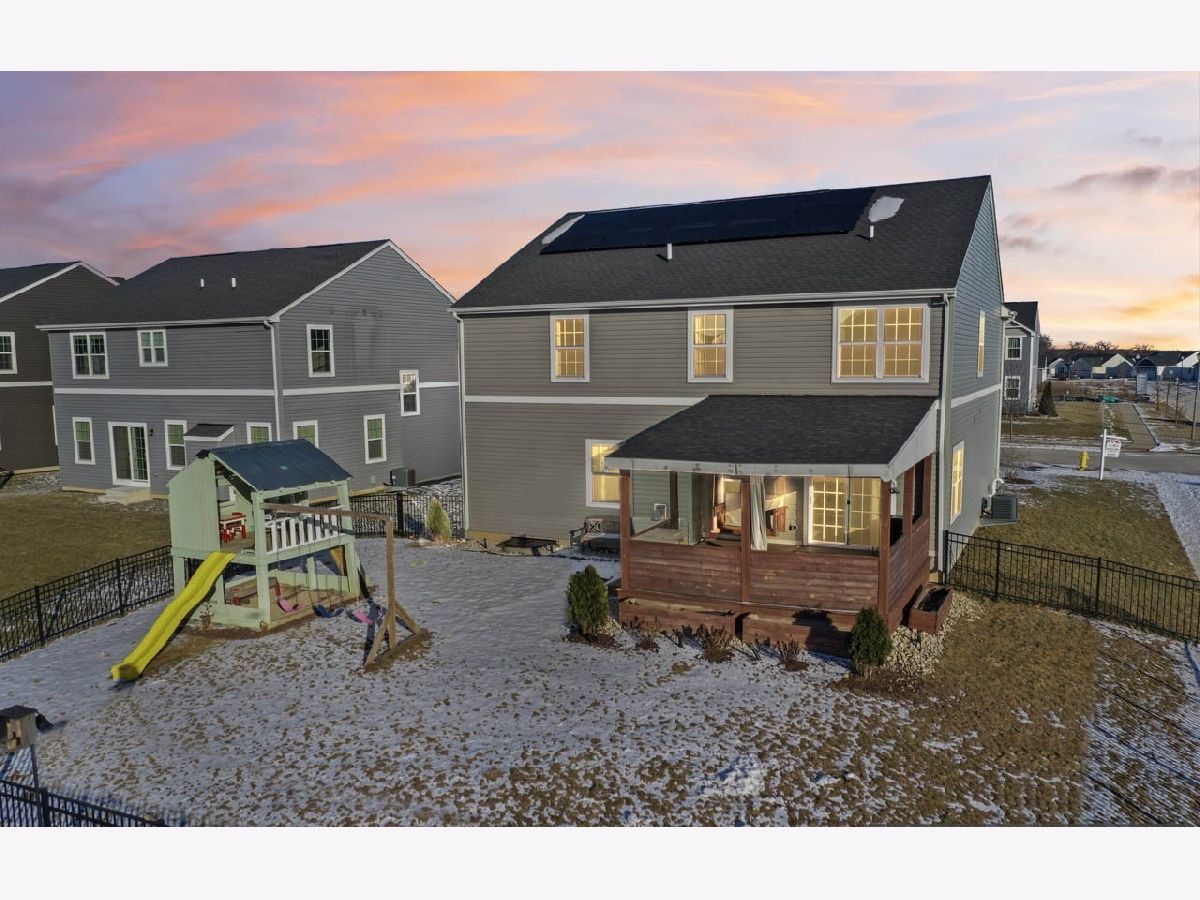 This stunning home in The Clublands is a must-see, offering a main floor bedroom and bathroom, along with a host of other impressive features. Built with longevity in mind, every corner of this home reflects meticulous care and attention to detail, showcasing the owners' commitment to creating a space they never intended to leave. As you enter, you'll find a private built-in office, perfect for working from home. Continuing through, the expansive living area welcomes you-ideal for hosting large gatherings and family events. The chef's kitchen boasts a massive island and a spacious dining area that seamlessly flows into the great room, which features a cozy fireplace. This space opens up to a covered back porch, extending your entertaining options into the fenced backyard, complete with a sturdy play structure for outdoor fun. Upstairs, you'll discover a total of four generously sized bedrooms, all with ample closet space. The laundry room is conveniently located nearby, and the master suite is a true retreat, featuring two walk-in closets. A additional family room on the 2nd floor provides space for others to escape. The finished basement offers an impressive open space perfect for a pool table, game nights, or watching the big game, all centered around a built-in bar. With a full bathroom in the basement, you can easily enjoy the lower level without needing to go upstairs. Additional highlights include thoughtful built-ins, stylish wall treatments, and plenty of storage throughout the home. The garage also provides extra storage, ensuring you have space for everything. This home is not only beautifully designed, but it's also practical for everyday living. With solar panels installed to keep energy costs down ($128 mo), you can enjoy a more sustainable lifestyle with stable utility bills. You can truly see how much care and thought went into making this home functional, comfortable, and ready for years of enjoyment. This home is minutes from the train station and 94 Expressway making getting around very easy.