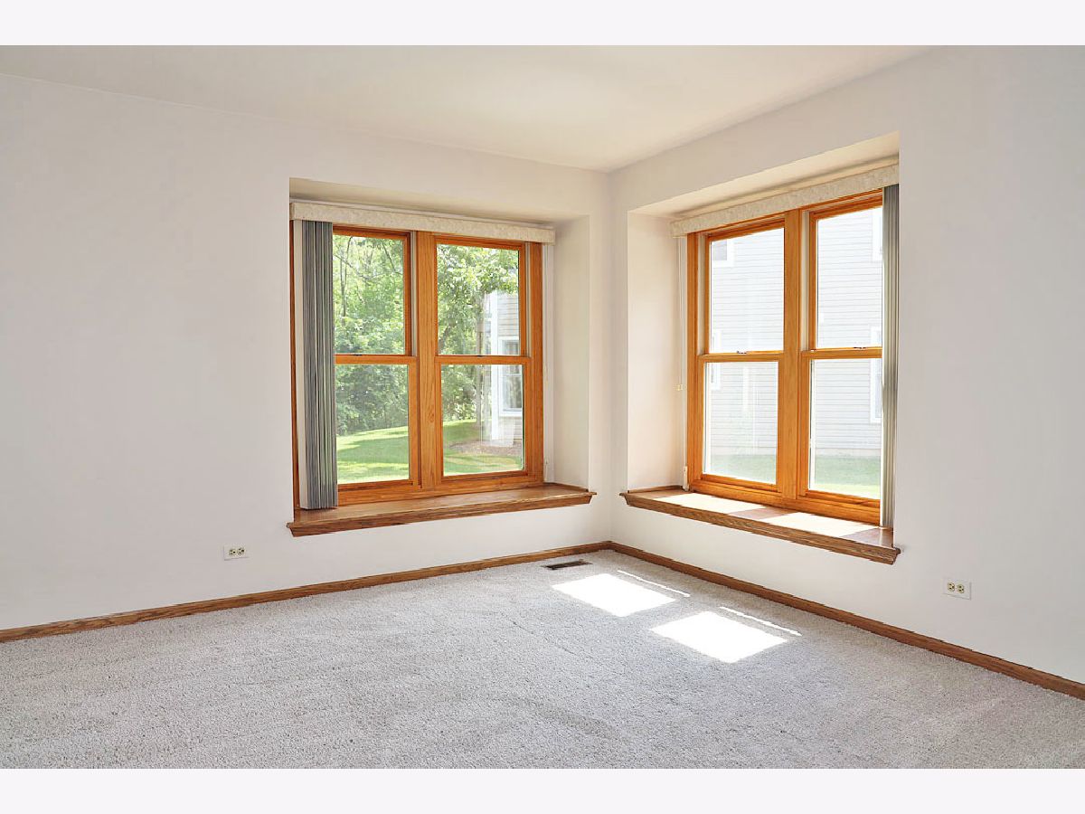 Beautiful Nature reserve views in this immaculate, End unit ranch home. This is the largest two bedroom ground floor model for the Fox Run Manor Homes. Tile entryway. Brand new carpeting in living room, hallway, and bedrooms. Just painted throughout in neutral color. Large living room with gas fireplace, as well as sliding door to your private patio. Spacious kitchen with all white appliances and breakfast room, which has plenty of windows for views of the reserve. There is a Dining area, but space would also make for a great home office area. Laundry room has full size washer/dryer. Newer furnace. Full size bathroom in hallway with tub. Master bedroom with walk in closet and large Master bathroom with shower. Both bedrooms also have views of the reserve. Water and garbage are included in your HOA fee. Guest parking available. Close to expressways and shopping. If you are looking for a peaceful place to live, then you won't want to miss this one.