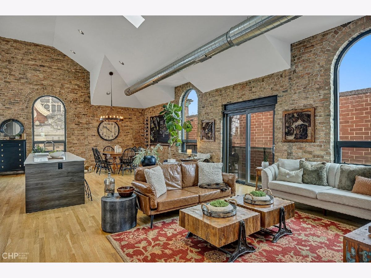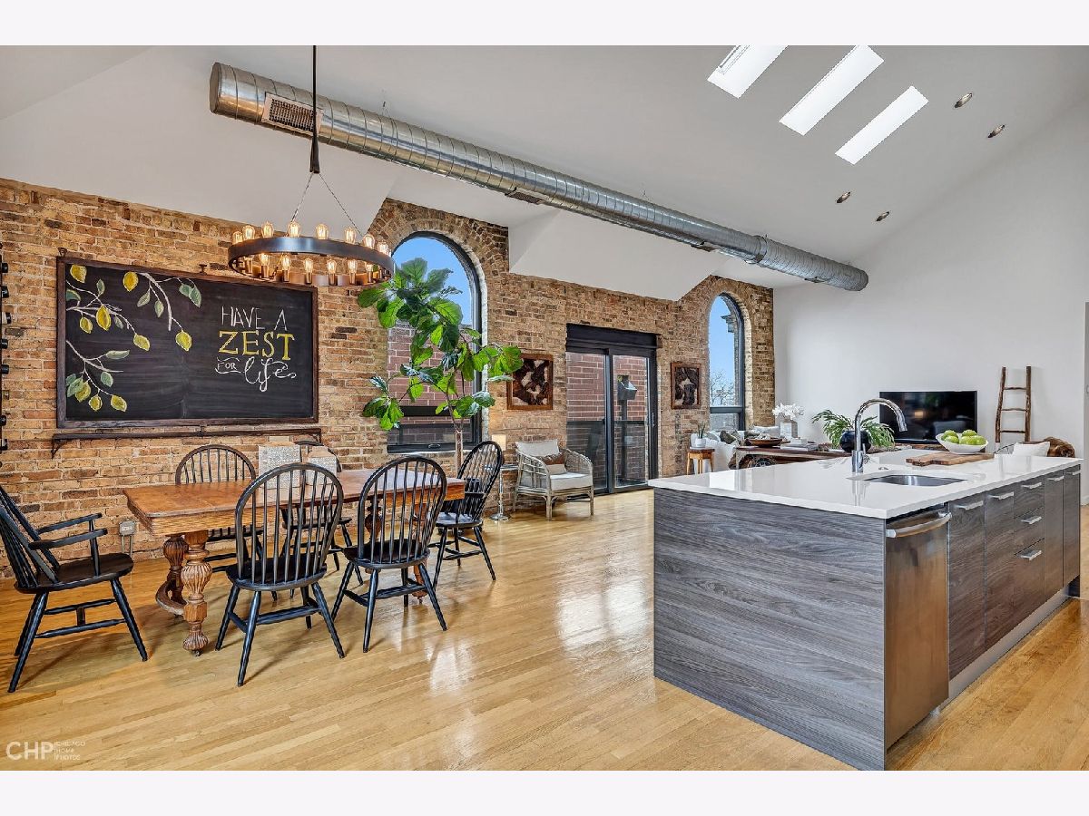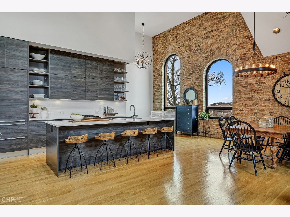 Truly one-of-a-kind, spectacular loft penthouse at Urban Treehouse - a renovated historic Sisters of the Resurrection convent. The best unit in the building, the home features soaring ceilings, modern finishes, and oversized windows with stunning views of St. Mary's of the Angels frieze. The dramatic living/dining room boasts 17-foot ceilings and exposed brick walls. A gorgeous Italian Archisesto kitchen offers an abundance of storage space and comes equipped with SubZero/Wolf/Miele appliances, quartz countertops, and a subway tile backsplash. All bedrooms are spacious and bright. The primary bedroom comfortably fits a king-size bed and opens to a large bathroom with an oversized walk-in shower. Both bathrooms feature high-end plumbing fixtures and a combination of contemporary porcelain and natural stone tile. The laundry room has a side-by-side washer and dryer and a loft for extra storage. Enjoy summer evenings on a deck with beautiful views of the Chicago skyline! The smaller side deck is perfect for a grill and an herb garden. Attached 2-car garage. Prime location, steps from Metra, the 606, and all of Bucktown's hotspots.