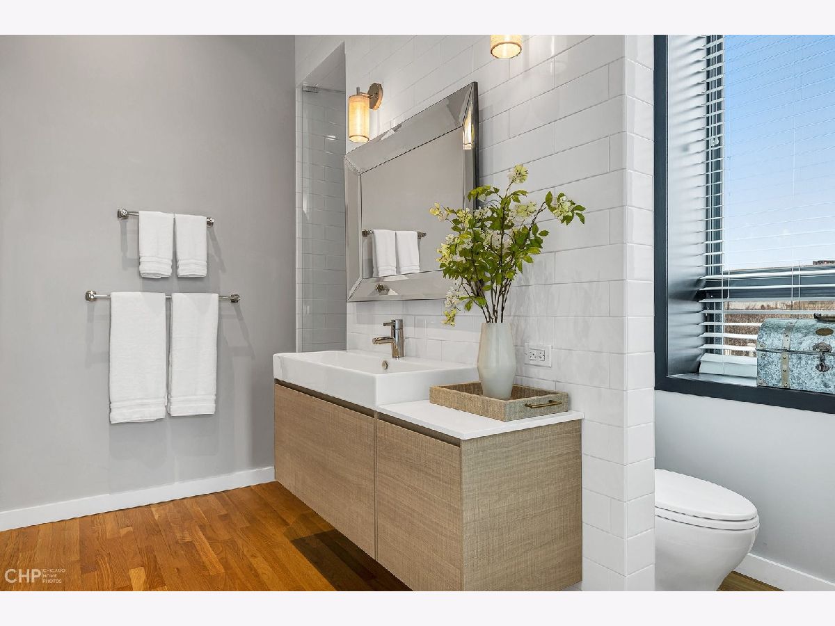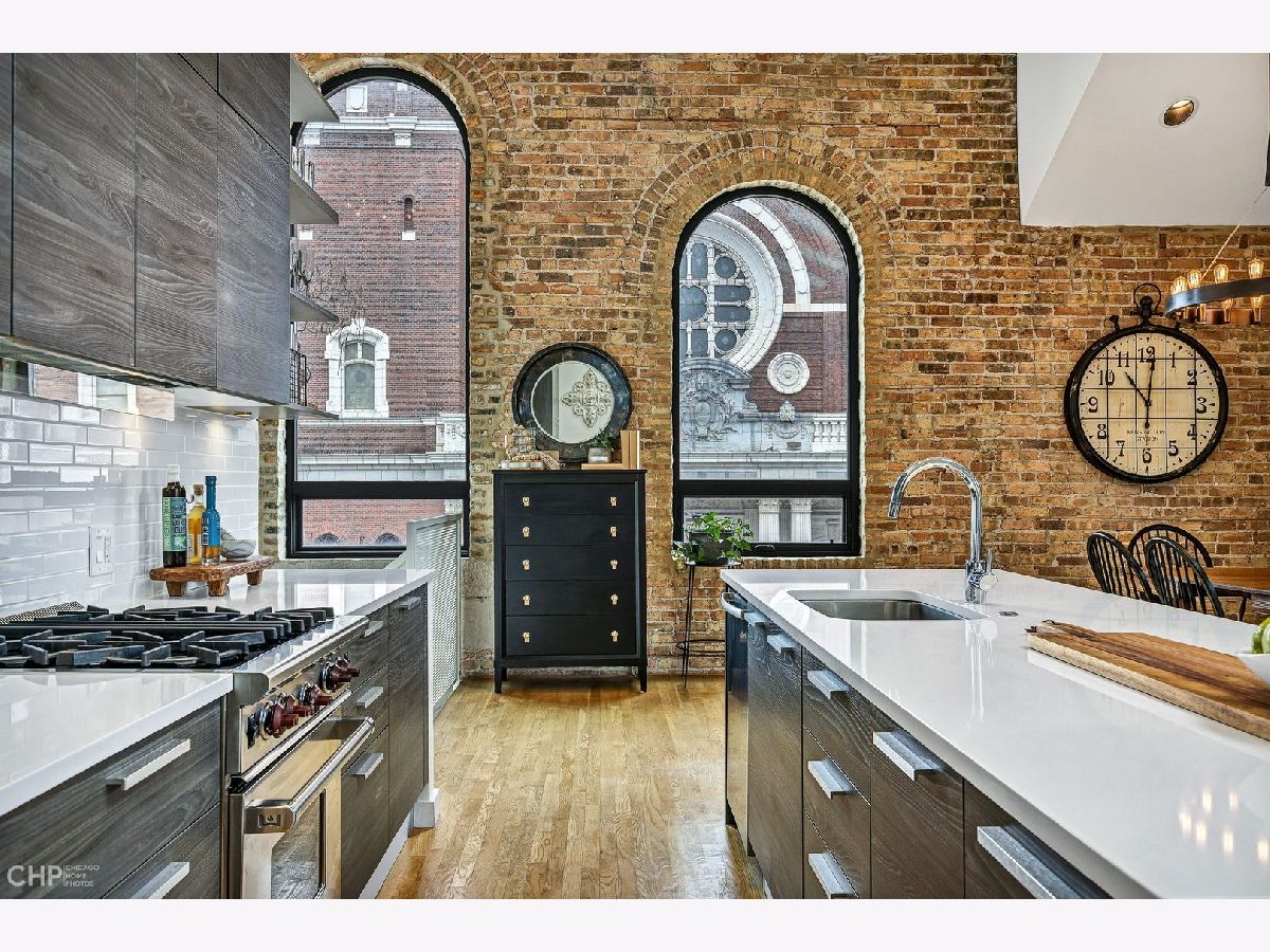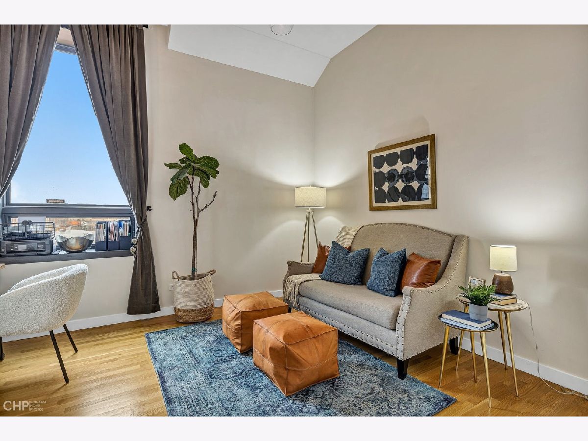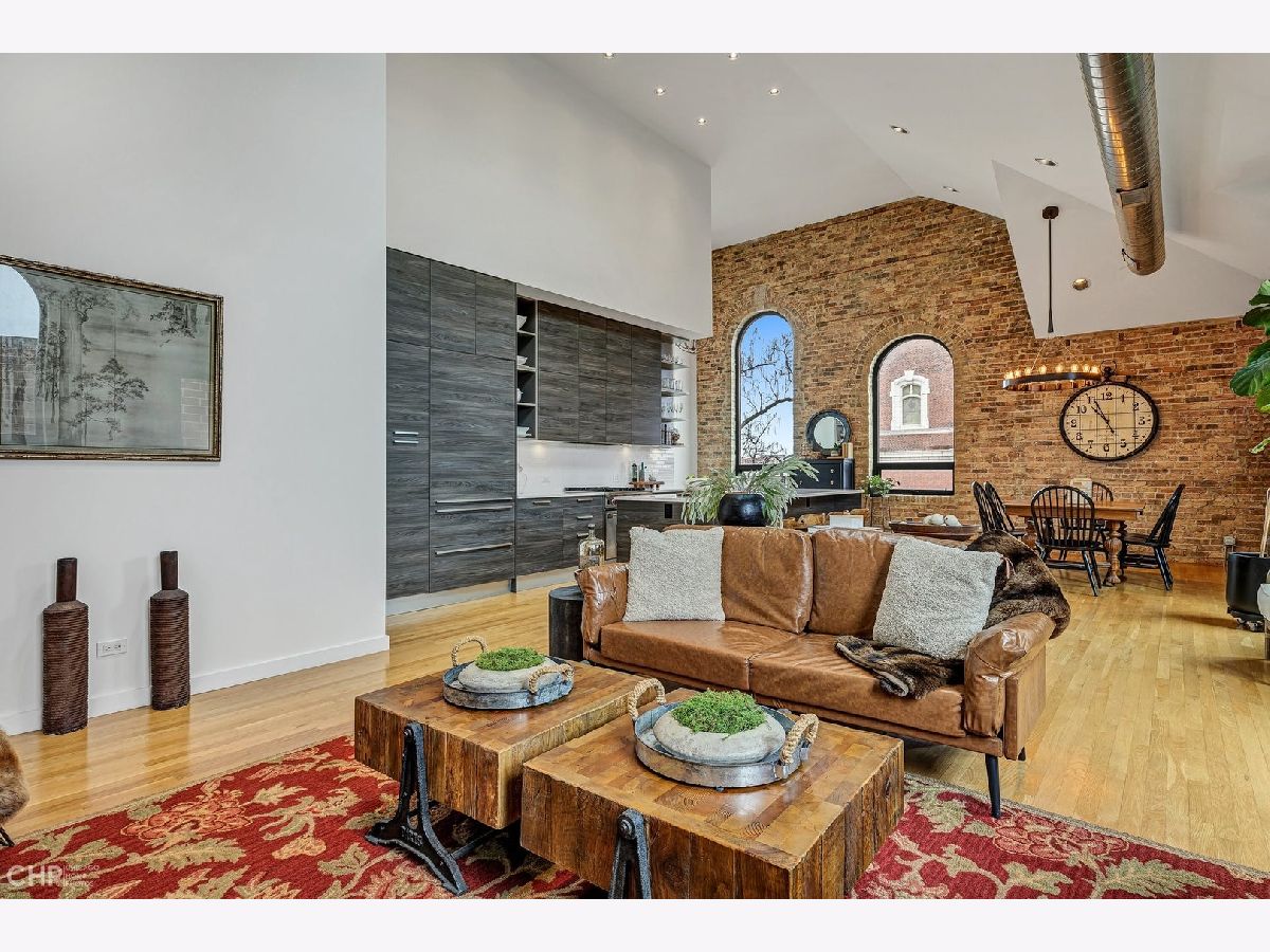 Truly one-of-a-kind, spectacular loft penthouse at Urban Treehouse - a renovated historic Sisters of the Resurrection convent. The best unit in the building, the home features soaring ceilings, modern finishes, and oversized windows with stunning views of St. Mary's of the Angels frieze. The dramatic living/dining room boasts 17-foot ceilings and exposed brick walls. A gorgeous Italian Archisesto kitchen offers an abundance of storage space and comes equipped with SubZero/Wolf/Miele appliances, quartz countertops, and a subway tile backsplash. All bedrooms are spacious and bright. The primary bedroom comfortably fits a king-size bed and opens to a large bathroom with an oversized walk-in shower. Both bathrooms feature high-end plumbing fixtures and a combination of contemporary porcelain and natural stone tile. The laundry room has a side-by-side washer and dryer and a loft for extra storage. Enjoy summer evenings on a deck with beautiful views of the Chicago skyline! The smaller side deck is perfect for a grill and an herb garden. Attached 2-car garage. Prime location, steps from Metra, the 606, and all of Bucktown's hotspots.