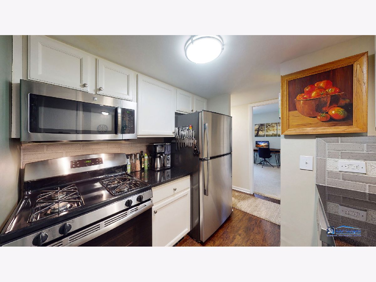 Peace and serenity awaits you at this beautifully remodeled 2 bedroom/ 1.5 bathroom condo located backing to the Hilldale Golf Course in Hoffman Estates. Enjoy relaxing views from your private balcony that overlooks trees and the golf course. This condo has newer gorgeous engineered hardwood floors, granite counter-tops, stainless steel appliances, ceramic back splash, gorgeously refinished white kitchen cabinets, recently painted, new toilets, in unit washer/dryer and new water heater. HVAC maintained every year. Large rooms for all your furniture.