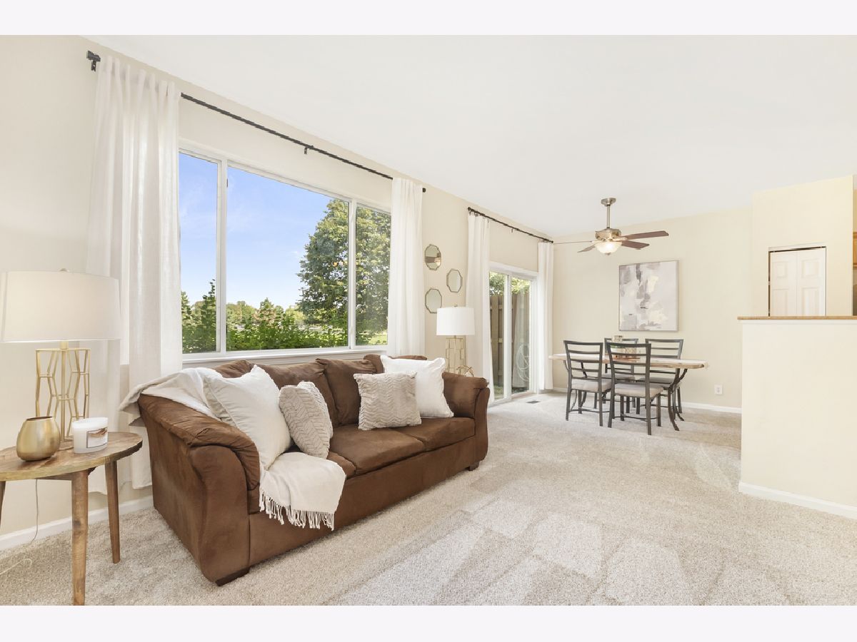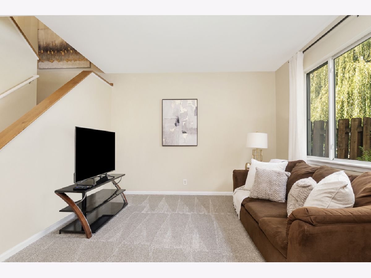 MOVE IN READY, 2-STORY TOWNHOUSE WITH BREATHTAKING POND VIEWS! AWARD WINNING DISTRICT 202 SCHOOLS! Open main floor living with combined dining room and family room features NEW carpet (2023), tons of natural sunlight, sliding patio doors to the outdoor patio, and pond views and only steps to the kitchen make this the perfect space to entertain. NEW carpet continues up to the second level where you will find 2nd floor laundry equipped with a newer LG Washer and Dryer (2018) and hidden storage room, 2 bedrooms and a full bathroom. Spacious primary bedroom features a walk-in closet. NEW/NEWER: HOA replaced the roof and resealed the driveway (2021), Furnace (2020), HWH (2022), and Microwave (2019). Nest doorbell and Sensi Smart Thermostat are included. Enjoy coffee on your outdoor patio with large grass area and tranquil pond with fountain. Enjoy the pool, clubhouse, sand volleyball court, tennis courts and everything Lakewood Falls has to offer. Welcome Home!