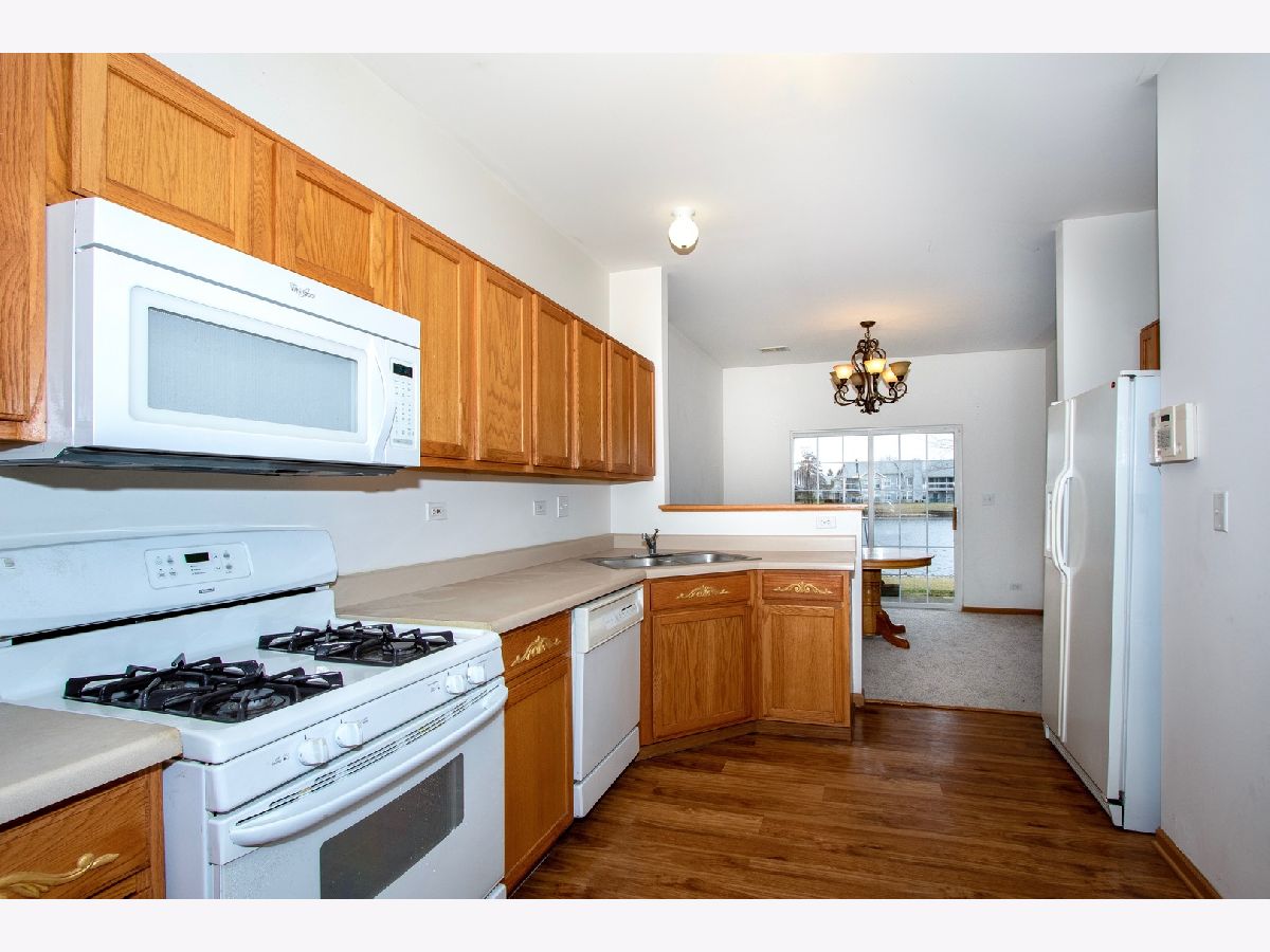 With shops, restaurants, the Interstate and the Metra all nearby, this 2-story town home with an attached 2-car garage in the Bridgewater subdivision is most attractive. Inside, its open living and dining area is enhanced by neutral paint accented by wood trim, a blanket of soft carpet, and big windows. Beautiful glass sliders open onto a charming back patio giving you the option to dine indoors or out on warm weather days. Steps away, the kitchen boasts a fresh, clean look with all white appliances nestled amidst ample oak cabinets, expansive counters and Pergo wood floors. With a vaulted ceiling soaring overhead and soft carpeting underfoot, the master bedroom is a comfortable owner's sanctuary treating you to a relaxing water view out its generous window. A sizable walk-in closet is the perfect complement to this oasis. An attached private bath featuring a dual-sink vanity with abundant storage and a shower-over-tub combination rounds out the master suite, while an open yard backing to a beautiful pond with a walking trail rounds out the home's exterior. Call to schedule your tour today.