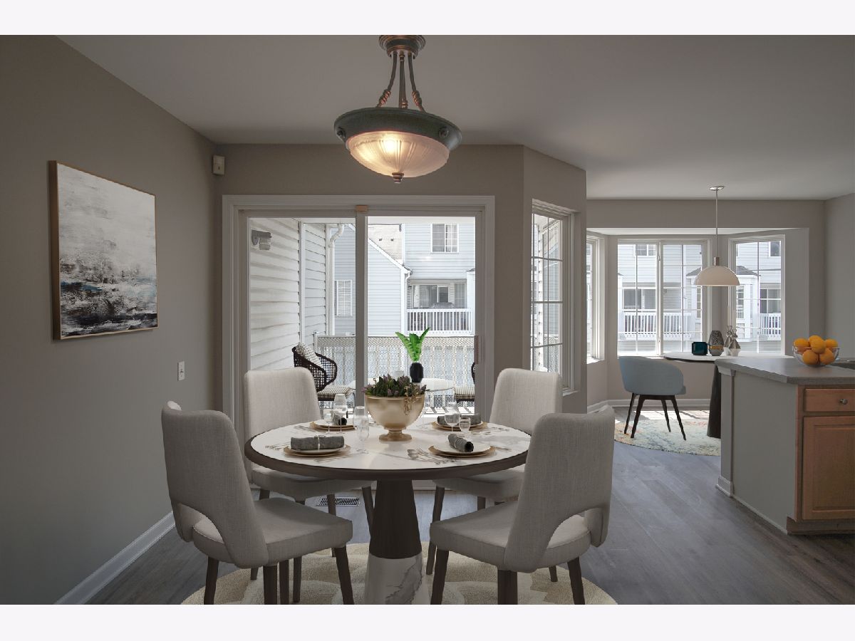 Newly updated townhome in the Coves of Harbor Springs is move-in ready with its grey neutral color palate of vinyl plank flooring throughout the main and lower level. Freshly painted throughout and newly carpeted 2nd floor is waiting for your furniture to make it your own. White baseboard trim, wood 6-panel doors, expansive living room opens to the dining room and kitchen. Covered rear porch and bay window dinette area fills this property with Natural sunlight from the Southern exposure all day. The finished lower level can be perfect for an at-home office, family room or even a playroom. The 2nd floor boasts a 17x12 Master suite with vaulted ceiling, dual closets with organizers and a Master Bath with large shower & double bowl sink vanity. The 2nd bedroom is 12x12 with a walk-in closet and a hall bath right outside the bedroom. Convenient 2nd-floor laundry is just steps away from both of the bedrooms. Great location across the street to Harbor Spring Park and walking paths with highly ranked district 308 schools. A short drive away from all the shopping and restaurants in Naperville on Route 59 corridor. Don't delay scheduling a time to see this beautiful home because it won't last long. Call it home today!