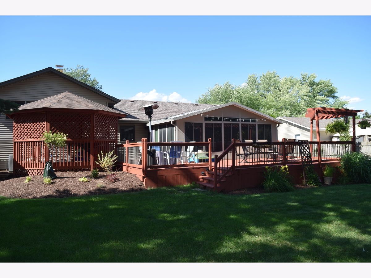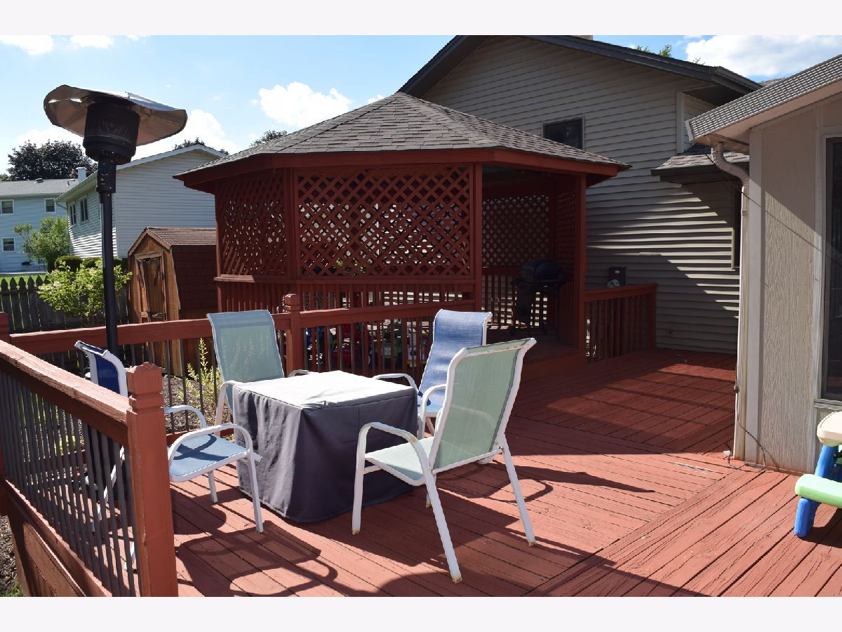 Spacious well maintained split level featuring 3 beds, 2.1 baths and 2 car garage. The main level consists of a spacious living room with new bay window (2018) offering loads of natural light, new hardwood in the entry and 1/2 wall with built-ins. Kitchen features all new stainless steel appliances (2020), professionally painted cabinetry for current trends, large eat in area featuring additional cabinetry with glass windows. Direct access to the 3 season room with electric, very spacious. Newly remodeled laundry room also located off the kitchen. The second floor features 3 bedrooms and 2 baths. The master bath was a complete remodel including all new tile work, rain shower head, new vanity, and mirror. The master bedroom upgraded with crown molding and hardwood flooring. Second full bath features new ceramic tile flooring. Lower level offers a beautiful brick fireplace, spacious rec room and current additional area used as a toy room. There is a large utility closet with direct access to the crawl space which has a concrete floor. The exterior features a large deck and gazebo which was stained in 2021, overlooking the fully fenced yard with beautiful landscaping. New roof on the gazebo in 2020. New furnace with humidifier and A/C (2018). Professionally landscaped throughout and beautiful upgraded brick walkway. Well maintained but sold as-is, seller will consider a carpet credit for the living room.