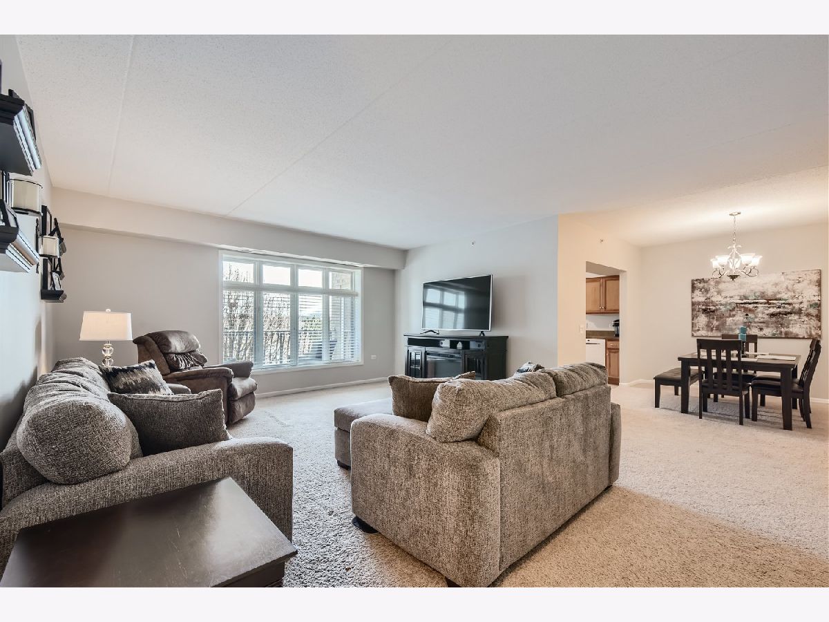 Stunning 2 bedroom condo in a luxury building located in the Pines subdivision. This spacious home boasts 9 foot ceilings giving it an open feel. It has an upgraded trim package with 6-panel doors throughout. The beautiful eat-in kitchen is equipped with extra cabinets for all your storage needs. It also opens up to an outdoor balcony where you can relax with a great view of the pond. The master bedroom has a large walk-in closet, full bath with a large soaker tub and a separate shower. In-unit laundry room with lots of storage. The building has an elevator that takes you right to your front door! The parking garage is heated and comes with your own spacious storage locker. The building is flexicore construction which provides better sound-proofing and a low fire-rating. Newer air conditioning, water heater, washer, dryer, and dishwasher. This is a 55 and older community but 20% of residents can be 21+. These units rarely hit the market, so don't miss out on this opportunity!