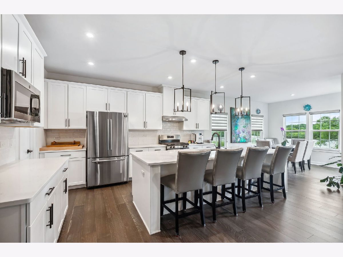 Welcome to this stunning three year old home located on a 76x120 lot with unobstructed views of White Lake and the walking path. This home was built for today's lifestyle of comfort, luxury and convenience. The open concept kitchen and livingroom offers numerous windows, quartz counters, stainless steel appliances, a large island which seats up to 6 people plus a roomy dining area and walk-in pantry. The living room includes an electric fireplace for added coziness and ambiance. Also included on the first floor is a private home office, a luxurious master bedroom suite with a coffered ceiling, spacious bathroom, customized walk-in closet and stunning views of the lake. The second floor provides a second en-suite, plus two bedrooms, a full shared bathroom and an open family room/playroom. Enter the English basement where you can enjoy recreation time in the large open space or workout in the exercise room. Also included is a full bathroom and storage room. Recessed lighting, upgraded wood floors and premium zebra shades. Step outside to the custom designed patio and enjoy unobstructed views of the serene lake and walking path. For your convenience and comfort there is a main floor laundry room, heated three car garage, zoned furnaces and alarm system. Coming soon is the community pool, clubhouse and gym. Conveniently located to RT 173 to I 94 to IL or WI!