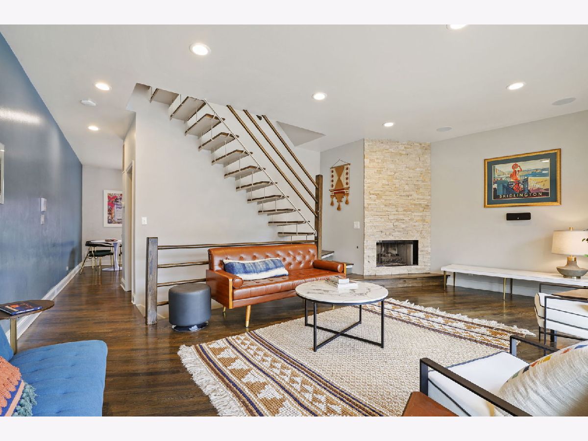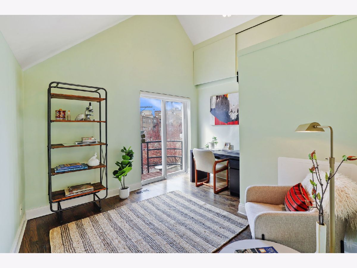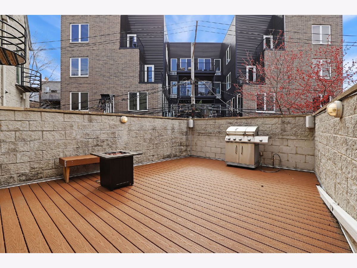 Welcome to your sanctuary! As you approach the home, let the anticipation build for the tranquil haven that awaits. Step into the welcoming private, fenced-in yard with low-maintenance turf and irrigation for your spring tulips. Experience the comforting embrace of radiant heated flooring throughout the entire first floor. The first floor features an enclosed king-size guest bedroom, a spacious closet, and a full bathroom. A custom queen-size Murphy bed with storage maximizes space, providing versatility for your lifestyle and visitors. Along with the convenience of a 1.5-car attached garage with a tandem exterior parking spot, the first floor of this townhouse can not be beaten! Enjoy abundant natural light throughout, with east-facing living room windows and west-facing kitchen windows. Oak floors grace the top two levels. Entertain on the expansive deck off the kitchen, complete with new composite decking and essential connections, gas, electricity, and water. Make memories in the eat-in kitchen, featuring granite counters, a double oven, and open cabinetry. The vast walk-in pantry provides ample storage for all your culinary essentials. Beautiful oak railing and open stairs guide you to the sunny office on the top floor, with a second Juliet balcony and overhead storage. The sexy primary bath with spa-like features includes a customizable 6-head Kohler DTV shower, built-in makeup vanity, inviting clawfoot tub, heated floors, and skylights. Unwind at the end of your day in the open-concept, sun-filled primary suite boasting high vaulted ceilings and a second fireplace. Crawl to Irazu and Small Cheval from your front door. Just a block away, you'll find the entrance to the 606, and the Western Blue Line stop is a quick 5-minute walk from your doorstep. Don't miss out on this dream home with no homeowner's association or additional monthly fees!