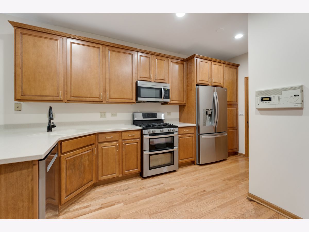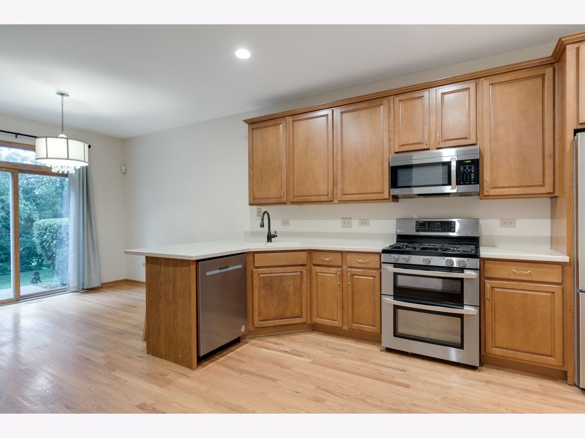 Fantastic 3 bedroom (plus loft) 2.5 bath, end unit townhouse in excellent location of Mokena! Features include much desired main level primary bedroom with elevated ceiling and (3) panel window! Renovated primary bath with custom raised vanity with granite counters, dual sinks, new ceramic tile floor, separate 5 foot shower and Soaker tub! Dramatic entry into the living room with soaring two story ceiling, hardwood floor, fireplace and (3) panel window! Excellent kitchen, corian type counters, maple cabinets, stainless steel appliances including oven range, microwave, refrigerator & dishwasher! Beautiful staircase leads to the upper-level loft, two additional spacious bedrooms and full bath! bedroom, Main level powder room with pedestal sink! Main level laundry room! Full basement (which has recessed lighting and hvac vents are run)! Attached 2 car garage! Beautifully seasoned tree lined yard and more! Slider door out to the patio concrete patio backs to a tree lined yard. Many newer items.. Roof 2020! Front door 2022! Central air 2020! Dishwasher 2023! Entire primary bath renovation 2019!