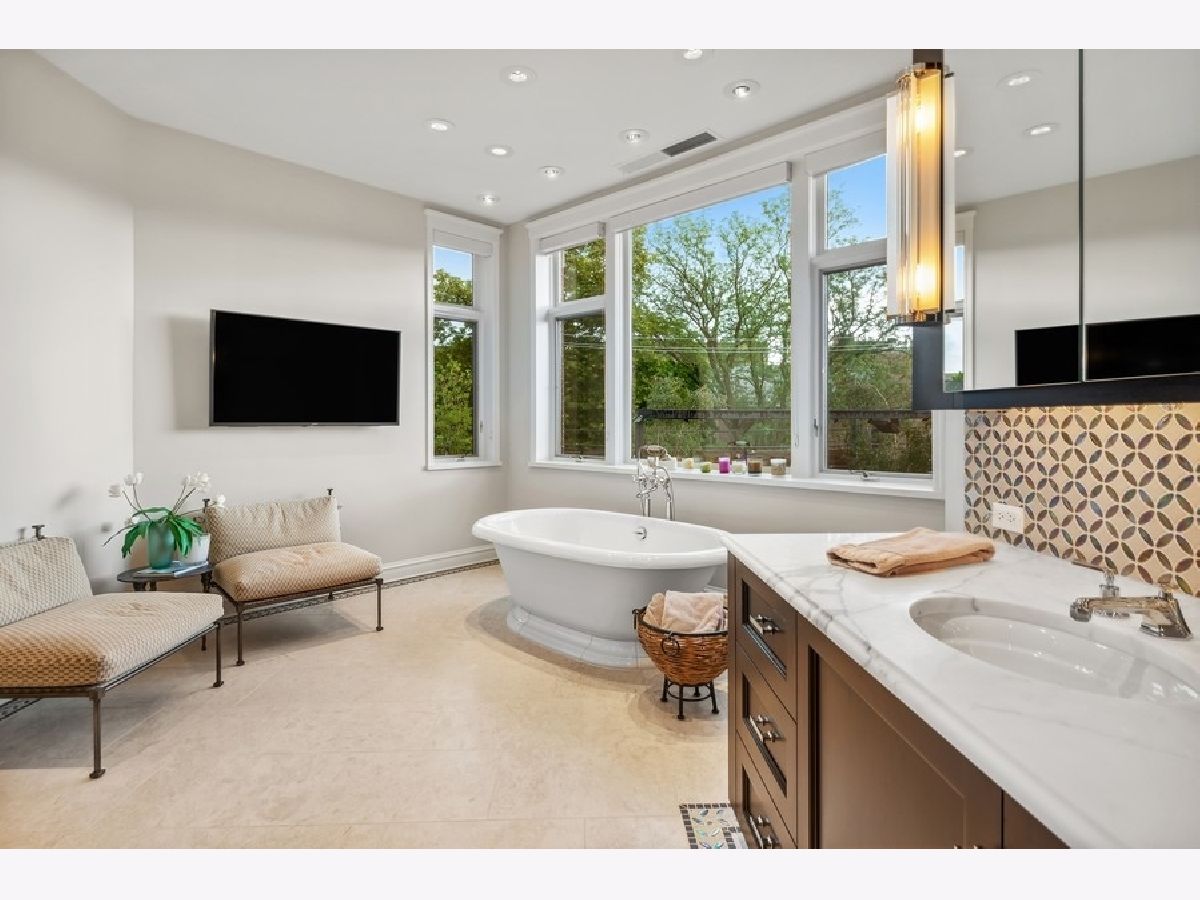 With almost 11,000 interior square feet, five bedrooms, five full baths, three powder rooms, five incredible outdoor spaces and one meticulous renovation, 1871 N. Howe St. is a one-of-a-kind opportunity for those looking for an amenities-rich, design-forward, single-family home. Situated on a double lot in the most prestigious pocket of Lincoln Park, this home's lovely limestone facade and four-seasons landscaping by Mariani Landscape make a grand first impression. Inside, flawless millwork and modern space planning keep things bright and airy, beginning with a foyer that flaunts high ceilings, sleek wood paneling and limestone floors. Upscale, transitional design selections by Richar Interiors are evidenced throughout, including designer light fixtures, tile and stone from Ann Sacks, dark hardwood floors, Stark carpeting and Lefroy Brooks fixtures. The main floor consists of seven interconnecting living and dining spaces for seamless entertaining, including a living room with limestone fireplace, a formal dining room, an elegant library with bar, an incredible three-story gallery, a light-filled family room with fireplace, a presentation kitchen with breakfast room, and a walk-in closet/mudroom. This home's impressive chef's kitchen boasts custom white cabinetry by Christopher Peacock, Calcutta marble countertops, professional-grade appliances and a butler's pantry. The family room affords direct access via French doors to a new backyard sports court. The crown jewel of the outdoor areas is an expansive, more than 1,100-square-foot, raised deck above the attached four-car garage that features maintenance-free, porcelain tile, a professional outdoor kitchen and grill, a defined dining space and a shaded lounge for a truly impressive, alfresco oasis with a spa-like vibe. Back inside, the second floor presents three secondary bedrooms, all with en suites, a media room with custom built-ins, second-floor laundry, and a fabulous primary suite with two dressing rooms, a fireplace, a private balcony, and a hotel-worthy spa bath with dual vanity, two WCs, a standalone soaking tub and a glass-encased shower. The third level features a family-friendly, multipurpose room (think exercise room, game room, or another WFH office depending on your preference), a beverage center, and a large walk-out terrace space, and links to a rooftop observation deck with spectacular skyline views. This home also comes complete with a recently renovated lower level with a large rec room, new carpeting, a bonus laundry and a guest suite with a newly remodeled bath. Recent upgrades include a new HVAC system, new windows, several new Pella exterior doors, new decking, fresh paint and a new roof. With an epic, indoor-outdoor footprint that's walking distance to restaurants and boutique shopping along Armitage and Halsted, not to mention within close proximity to neighborhood parks and the lakefront, 1871 N. Howe St. is an incomparable property on Chicago's charming North Side.