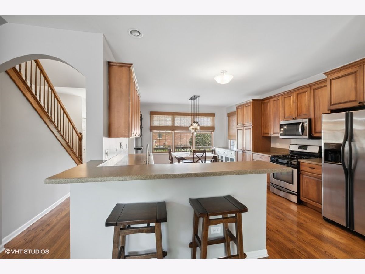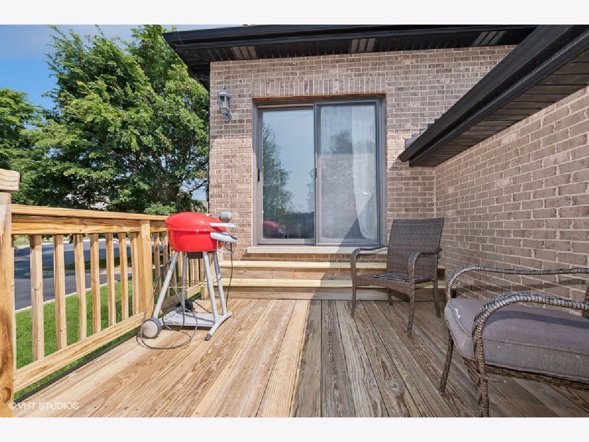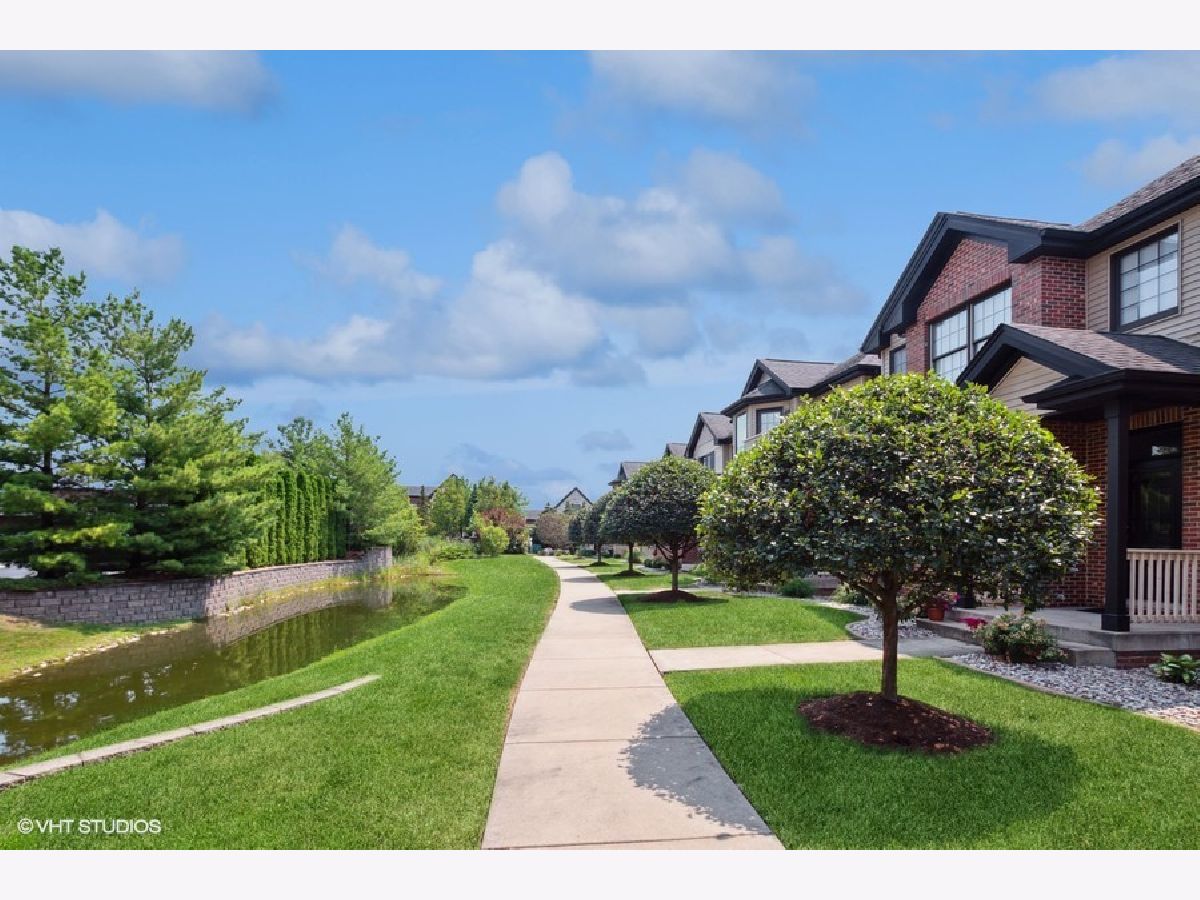 Welcome to this rarely available end unit town home in the heart of Mokena. This charming property has beautiful curb appeal featuring a wrap around porch and tranquil water views. As you enter, you'll find a welcoming foyer that leads you to the stunning eat in kitchen featuring stylish soft close cabinets, corian counters, breakfast bar, and stainless steel appliances. Solid 6 panel doors and hardwood flooring throughout the home. The formal dining room is perfect for gatherings. The large living room space includes a shiplap accent wall and skylight. You'll also appreciate the main floor laundry room with utility sink. Upstairs, the primary bedroom is a true suite with vaulted ceilings, large walk in closet, and a full private bath with a shower and soaker tub. There are two additional nice size bedrooms with ample closet space on this level. Full hall bath convenient for guests. The full finished basement is a fantastic space for entertaining, boasting a family room with recess can lighting and custom built ins for your TV and entertainment center. The wet bar has gleaming quartz counters and many built in storage cabinets. This level also includes a full bath with walk in shower, storage area, and utility room. Step outside to the back deck and enjoy the privacy. The home includes a 2 car attached garage along with a new hot water heater in 2022. Steps away from dining, shopping, and downtown Mokena this is a beauty!