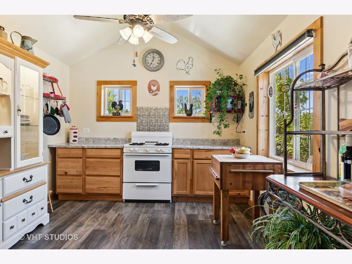 Charming 2 BR ranch w/HUGE kitchen overlooking a private, extra deep, fully fenced backyard with many perennials, garden space, & sunny Southern exposure. Oversized shed/outbuilding, as well as a newer built greenhouse, perfect for the gardener or outdoors person (both structures are well built and HUGE). Lake rights to beautiful Druce Lake located just a 1/2 block down the street! Lots of updates in 2005, including new windows, furnace, electrical, most plumbing, kitchen & bath remodel and hardwood floors! This home feels like a vacation home out in the country, and yet is very close to shopping, restaurants, and the expressway. Low unincorporated real estate taxes! Watch spectacular lake sunsets every night from your yard! Gurnee Woodland and Warren High school! It appears to have room to build a garage, but your own due diligence is recommended. What a great buy for such an adorable property!