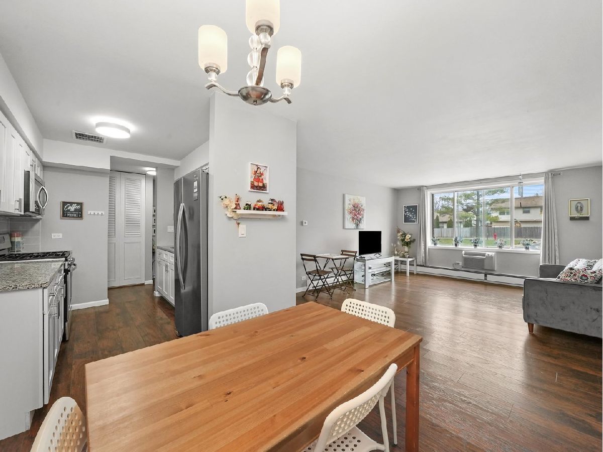 In prime suburbia, a gorgeous FIRST FLOOR CONDO!! This amazing investment is located near parks, schools, shopping (Woodfield Mall), and plenty of restaurants. Best of all, walk right out to the summer pool, tennis court, and even a clubhouse for special events. Upon entering the building, the welcoming lobby will lead you straight to this first-level condo. The two-bedroom condo offers wood laminate floors, an updated kitchen (white shaker cabinets, modern backsplash, granite countertops, and stainless appliances), a dining room, a very spacious living room, an updated full bathroom, and sizable bedrooms with plenty of storage (the primary bedroom has a huge walk-in closet). This condo has been very well-kept and loved!! Schedule your showing today and make it yours!