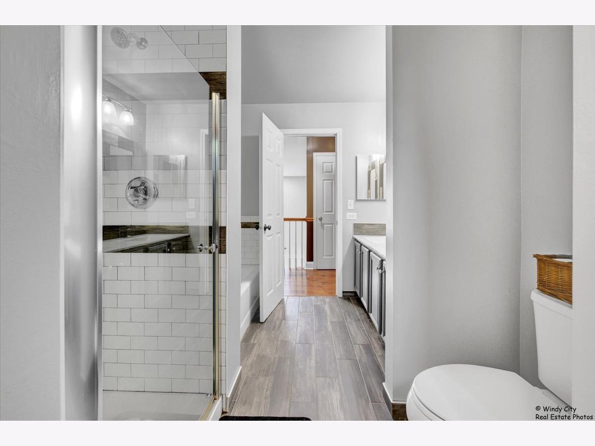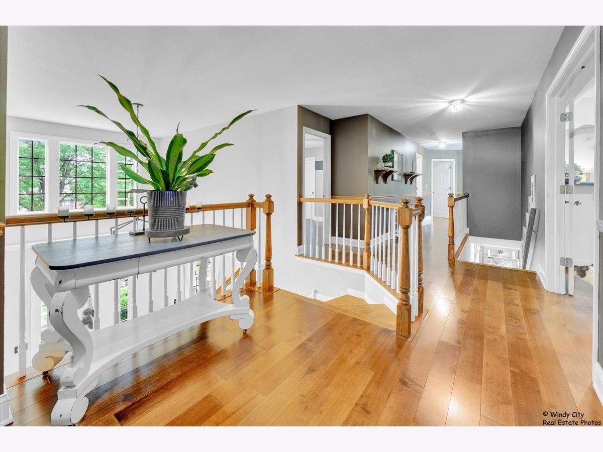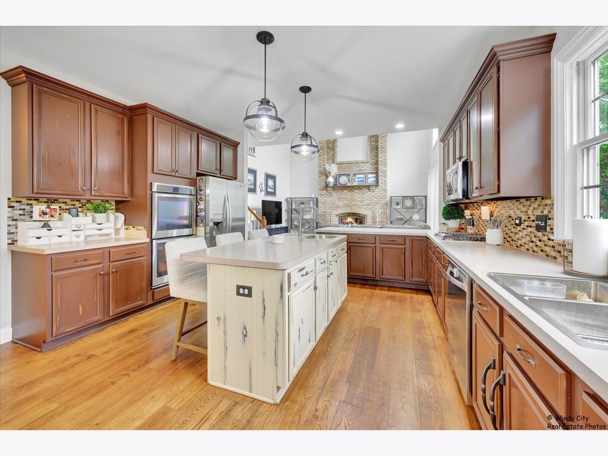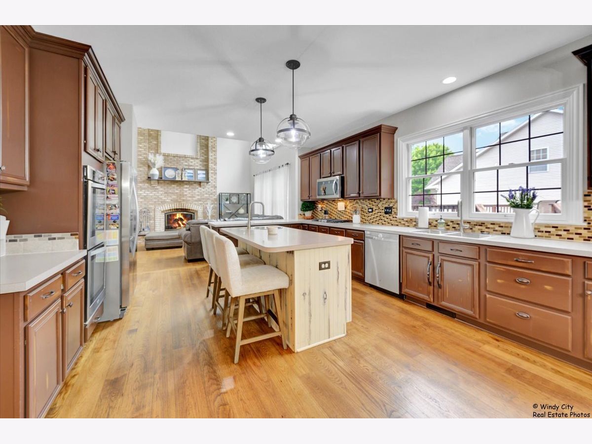 This stunning, move-in ready home is perfectly situated on a desirable corner lot, just minutes from shopping, dining, and more. Impeccably maintained and updated throughout, this spacious property offers over 4,000 sq. ft. of finished living space, making it an ideal choice for those who love to entertain. The open-concept floor plan features 9 ft ceilings and beautiful hardwood floors throughout the main and upper levels. A private office, enclosed by French doors, provides a quiet workspace. The expansive kitchen flows seamlessly into the inviting living room, which boasts a striking floor-to-ceiling masonry fireplace. Upstairs, you'll find four generously sized bedrooms, including a luxurious master suite. The convenience of a second-floor laundry adds practicality to this well-designed home. The fully finished basement is an entertainer's dream, complete with a full kitchen, large bath with a steam shower, and plenty of room for relaxation or recreation. Additional updates include Pella windows throughout, a new hot water tank, a newer A/C unit, and fresh front siding. Don't miss your chance to own this meticulously cared-for home.