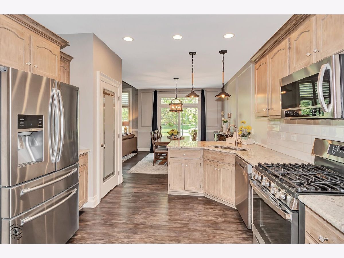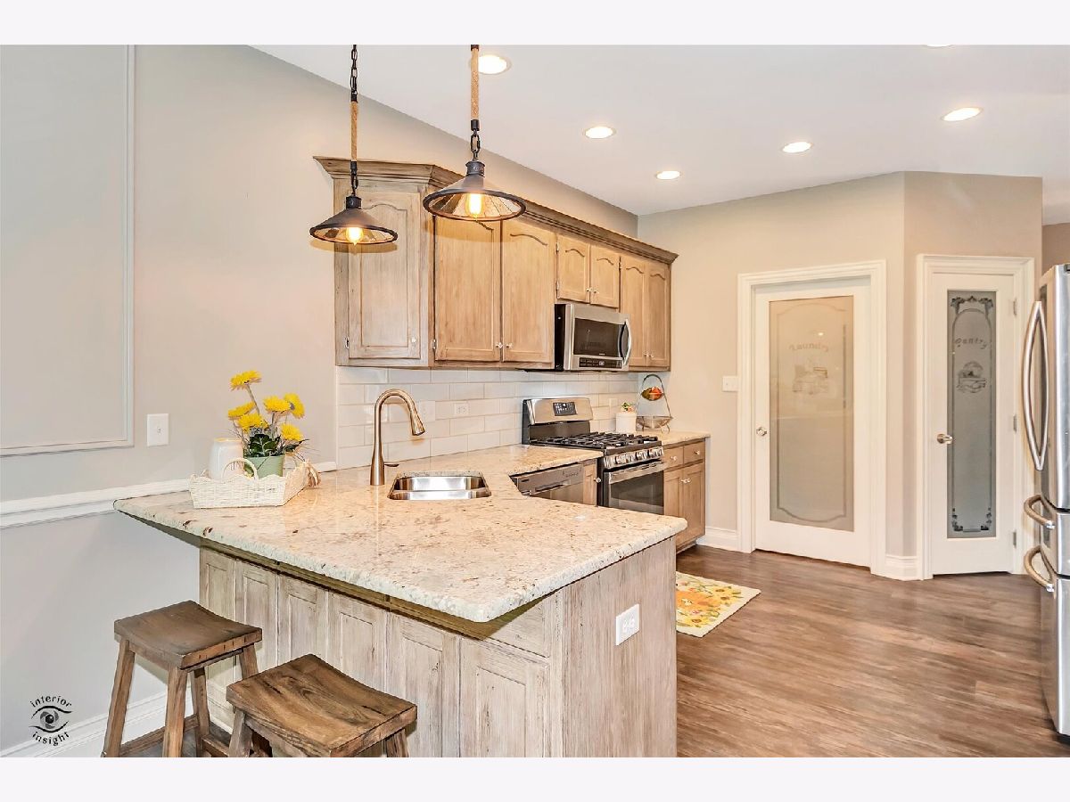 ** Multiple offers received-calling for highest & best by Monday June 30 at 12pm.**Completely remodeled 4,bedroom,3.5 bath town house with full, finished basement!Excellent location with large, grassy area behind and across the street from nature preserve/walking/bike trail.Two fishing ponds!New furnace/AC/smart thermostat 2024! New roof & gutter guards!Updated kitchen cabinets, high-end granite counter tops, stainless steel appliances & extra lighting added.(Stove & Microwave 2024) Dining space with wainscoting & high-end light fixtures. Dinette can be used as 2nd eating area or office space. 2 story family room with vaulted ceilings, Chicago brick fireplace and rebuilt oak/iron staircase.Powder room with oak barrel and copper sink. High ceilings and extra wide luxury, vinyl plank flooring.Main level laundry with washer & dryer(2020), extra cabinets, sink and large closet with shelves. Huge primary bedroom with newer light fixtures/fan,cordless blinds,and crown molding.Full en suite bath with double sinks, granite counter tops,Moen plumbing fixtures, whirlpool tub, tile shower with body sprayers, herringbone pattern tile flooring.Additional 2 bedrooms with new light fixtures/fans,crown molding. Hall bath updated with granite counter tops, tile shower/floors,light & plumbing fixtures.Finished basement with lots of extra lighting, crown molding, wainscoting. Huge bedroom with private bathroom,complete with warming light. Extra storage room makes the perfect bar area. Newer carpet, extra wide trim,cown molding,wainscotting,2 panel,solid wood doors, high-end light fixtures,Moen plumbing fixtures, bronze vent covers,crystal door knobs-there are so many extras in this home! Heated garage with extra storage, bike rack and epoxy floors.Easy access to I80/355,shopping,restaurants,hospitals.