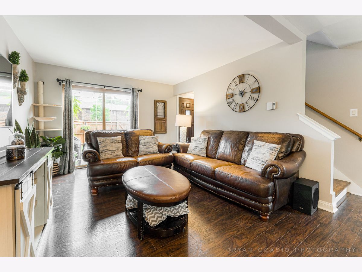 Finished from top to bottom! Move right into this 3 Bedroom, 1 1/2 Bath Townhome. Open, bright, and airy from the moment you walk in. Hardwood flooring flowing throughout the living and dining room. Kitchen with double oven, stainless steel appliances and glass backsplash. Rounding off the main level is the up-to-date powder room. Upper level boasts all 3 Bedrooms. Beautifully updated full bathroom with Carrera marble countertops. Extra living space in the finished basement with storage space. In-unit washer and dryer. Topping off this fantastic townhome is your finished oasis backyard with privacy fence, and oversized patio. All this with newer roof, windows, doors, water heater. Make your appointment today!
