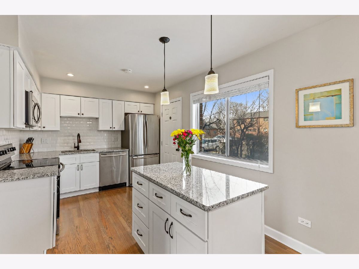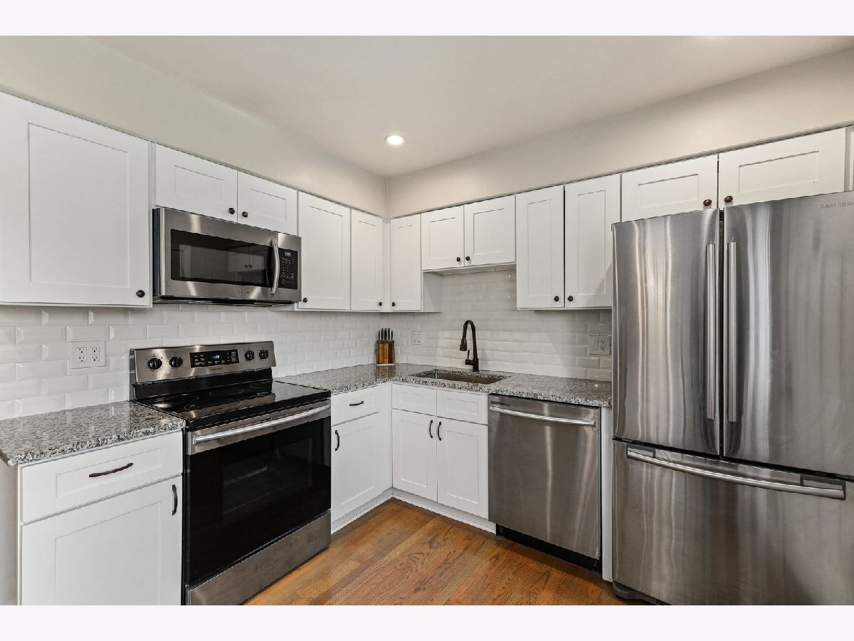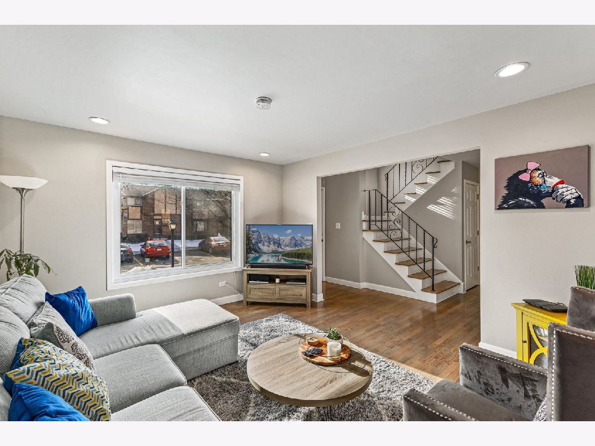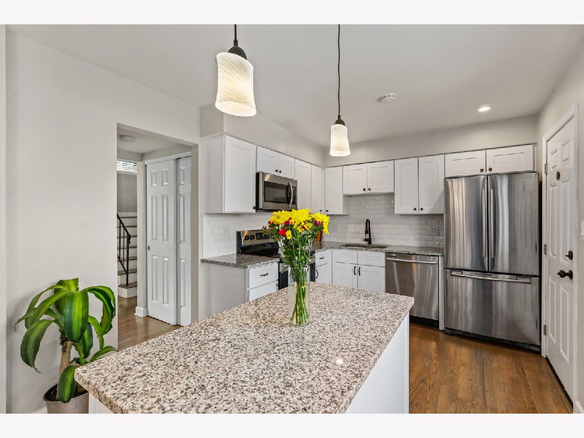 Beautifully renovated end unit! Nothing to do but move in! Trending kitchen featuring white cabinetry, quartz counters, SS appliances, backsplash and an island. Great open floor plan to suit todays buyer and entertain guests. Easy and convenient access to your backyard for grilling. All hardwood floors throughout and freshly painted. Main level has a powder room. Second level has three bedrooms, a shared full bathroom for bedrooms 2&3 and a full master en-suite. Full finished basement has a spacious family room with new carpeting and plenty of space for entertaining. Two parking spaces - one assigned, #230, and one with a permit for any spot with "00". Plenty of guest parking available on a first come first serve basis. This one won't last!