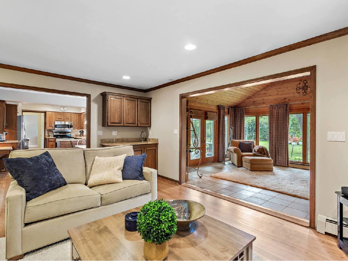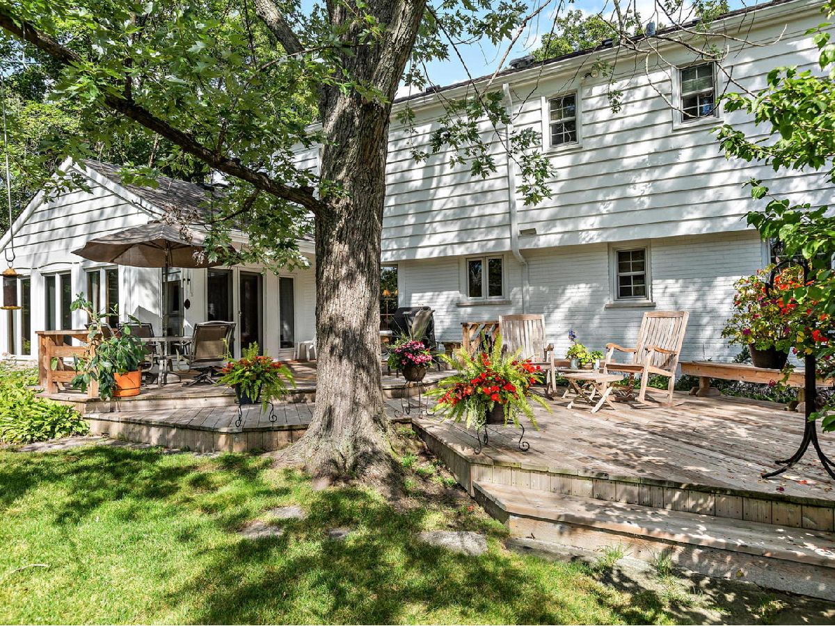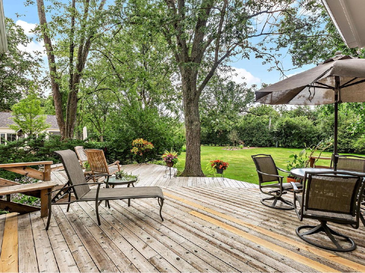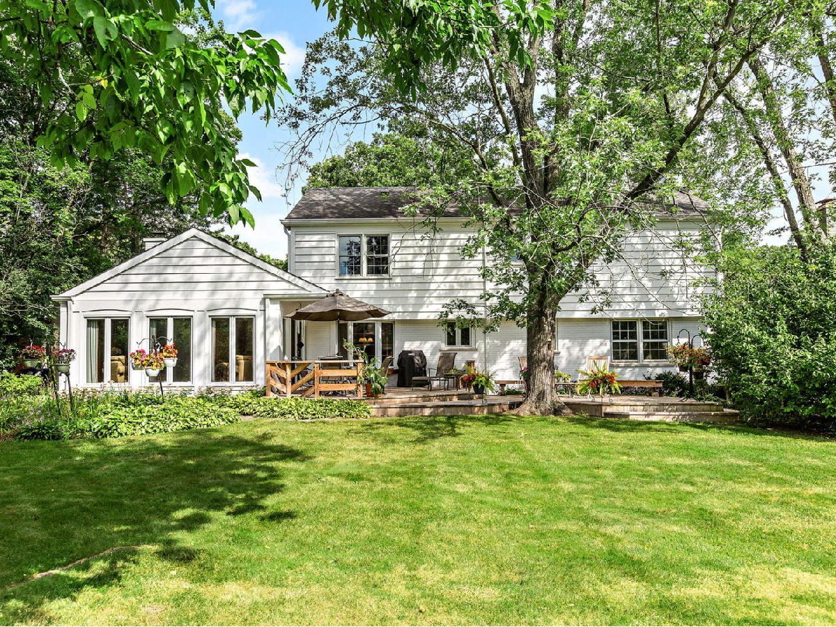 Charming Two-Story home on a dead end cul-de-sac street. Set back on its approximately 1/2 acre lot with beautiful mature trees and professional landscaping. Recently painted Exterior and Interior. Impressive Double Doors with Leaded Glass Windows welcome you into a Foyer with Porcelain Tile Floor. Huge Living Room with large Bay Window & Seat Bench along with Hardwood Floors and Brick Fireplace (gas starter, gas logs) with wood surround. Separate, Formal Dining room with Big Picture window, Hardwood Floors and Chair-rail. Fully equipped Kitchen with a Good sized eating Area, Wood cabinetry, Granite Counters, SS appliances and Desk Opens to large Family Room with Second Brick Fireplace (gas starter, gas logs), Hardwood Floors and Wet Bar. Family Room opens on a Huge Four Seasons Sun Room with Cathedral Ceiling, Porcelain Tile Floor and Walls of Windows to view a Beautiful Yard for Family Fun and Entertaining. Access to Expansive Two-Tiered Deck for Breakfast, Family meals, Entertaining and just Relaxing. Second floor has Spacious, Primary Bedroom with Remodeled Master Bath (heated floor) and 2 sets of closets. Three other nice size Bedrooms with Good Closet space and another Remodeled Bathroom with Double Sink vanity and Heated Floor to service them. Remodeled Finished Basement along with Remodeled Laundry room with laundry chute. Don't miss this one!!! Beautifully maintained & upgraded through the years. Enjoy colorful seasonal vistas through the many windows. 19 Dukes Lane is located in top rated Stevenson HS District 125 and top feeder District 103. It offers easy access to the METRA, I-294 and is just 20 minutes from O'Hare. Check out Broker Private Remarks for Improvements!