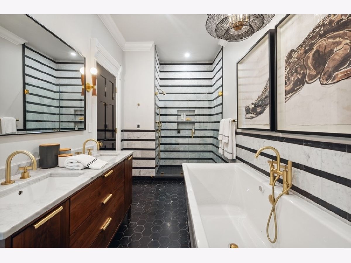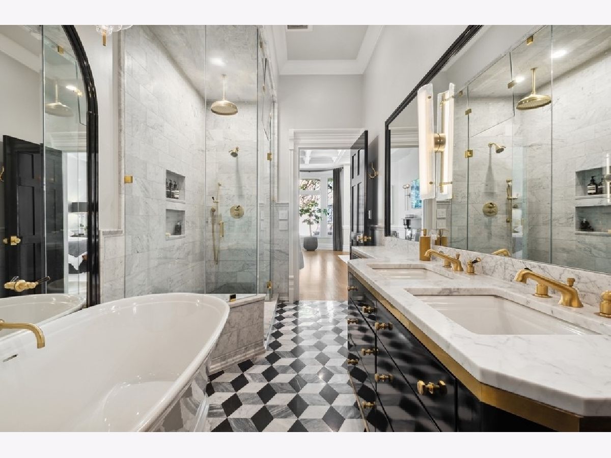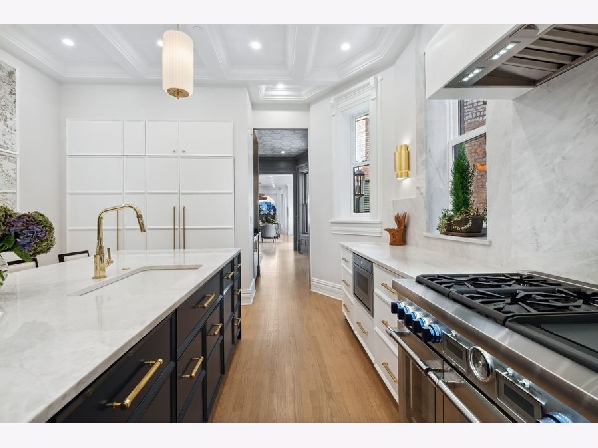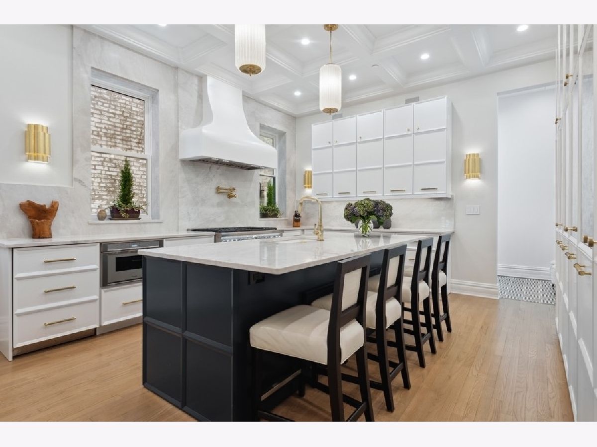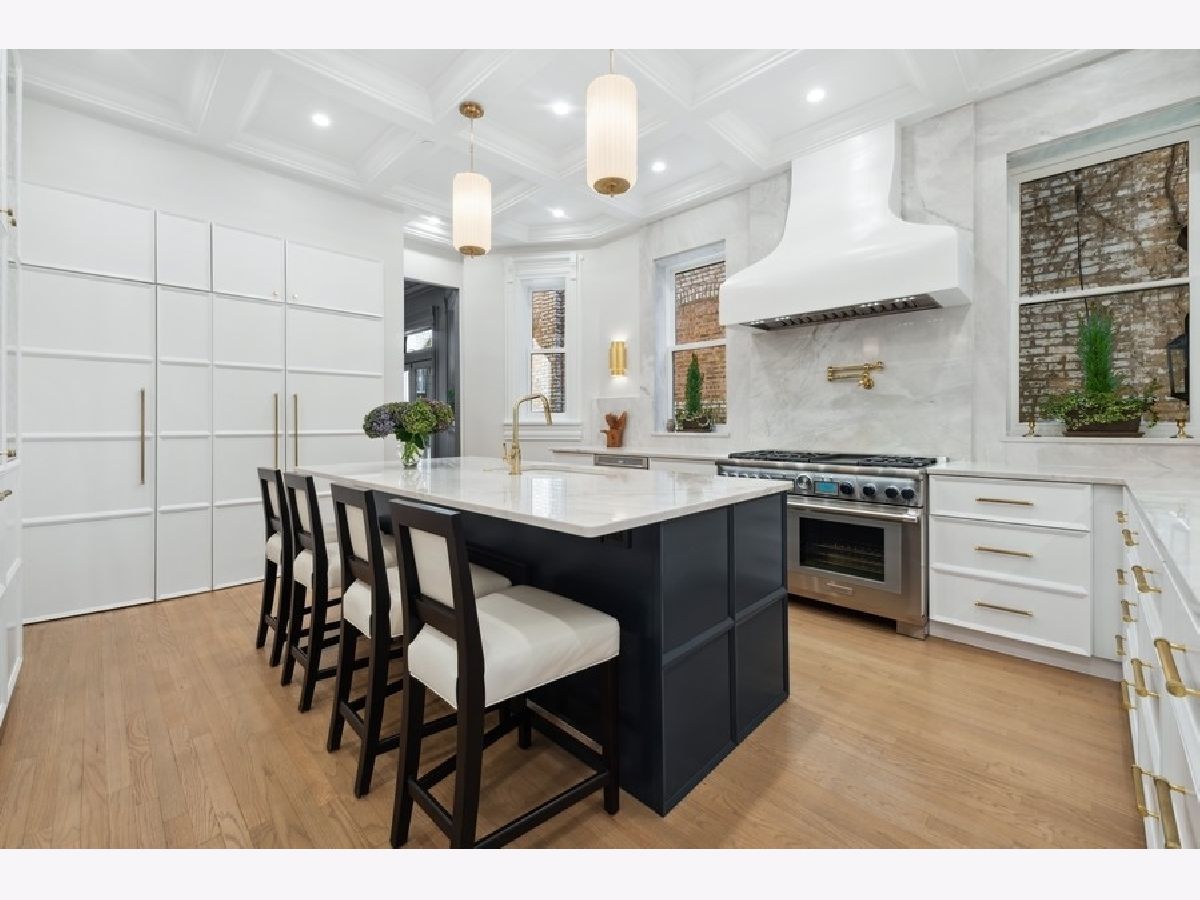This elegant, renovated Gold Coast single family home offers an oasis of calm and sophistication. Originally constructed in 1891 and redesigned in 2020, this home evokes the best artisanry including a breathtaking staircase connecting floor after floor of splendid architecture, millwork, and finishes. Offering 5 bedrooms, 5.1 bathrooms, a private garden, terrace, spacious sun-filled rooms, soaring ceilings, five fireplaces and an attached heated two car garage, this four-level home is the epitome of luxury and is a masterpiece of architecture and interior design that speaks directly to the senses. As you enter through the secure iron gates you are greeted by a sophisticated vestibule with a gorgeous chandelier highlighting the dazzling black and white tiles. Perfect for entertaining, the main living level offers an open yet intimate floorplan with a large living room anchored by a fireplace, a lovely formal dining room overlooking the private garden and the perfectly designed kitchen with all the fine details you would expect. The second-floor features two bedrooms including the sun-filled primary suite with oversized windows, a fireplace, a bathroom that will take your breath away and a dressing area with built-in closets, drawers, and shelving. One of two laundry areas are conveniently located on this floor. The terrace serves as an outdoor living room with a fireplace, offering privacy and a relaxing entertaining space set in the heart of the city. The third floor is filled with sunlight from the skylights above, creating a warm invitation to retreat to the two peaceful bedrooms plus office / den on this top floor. Each bedroom has large windows, gracious closet space, and full-size en-suite baths. The fully finished lower level offers a 2nd entrance. There is a large recreation room with full wet bar, a 5th bedroom, full bath and second laundry - all which can function as a fully separate guest suite. The entire house has gorgeous windows letting in abundant light everywhere. Each bathroom is finished in an array of designer stone and tiles and each light fixture was selected to make a statement in every room. These true works of art epitomize the sense of high style that has been brought to the home. Located within what is already one of the most desirable neighborhoods in Chicago, Goethe is particularly special street. The architecture is as harmonious as it was way back then - that explains why some of the most discerning people in Chicago have gravitated to this Gold Coast location. A truly special home ready for you to live and enjoy life.