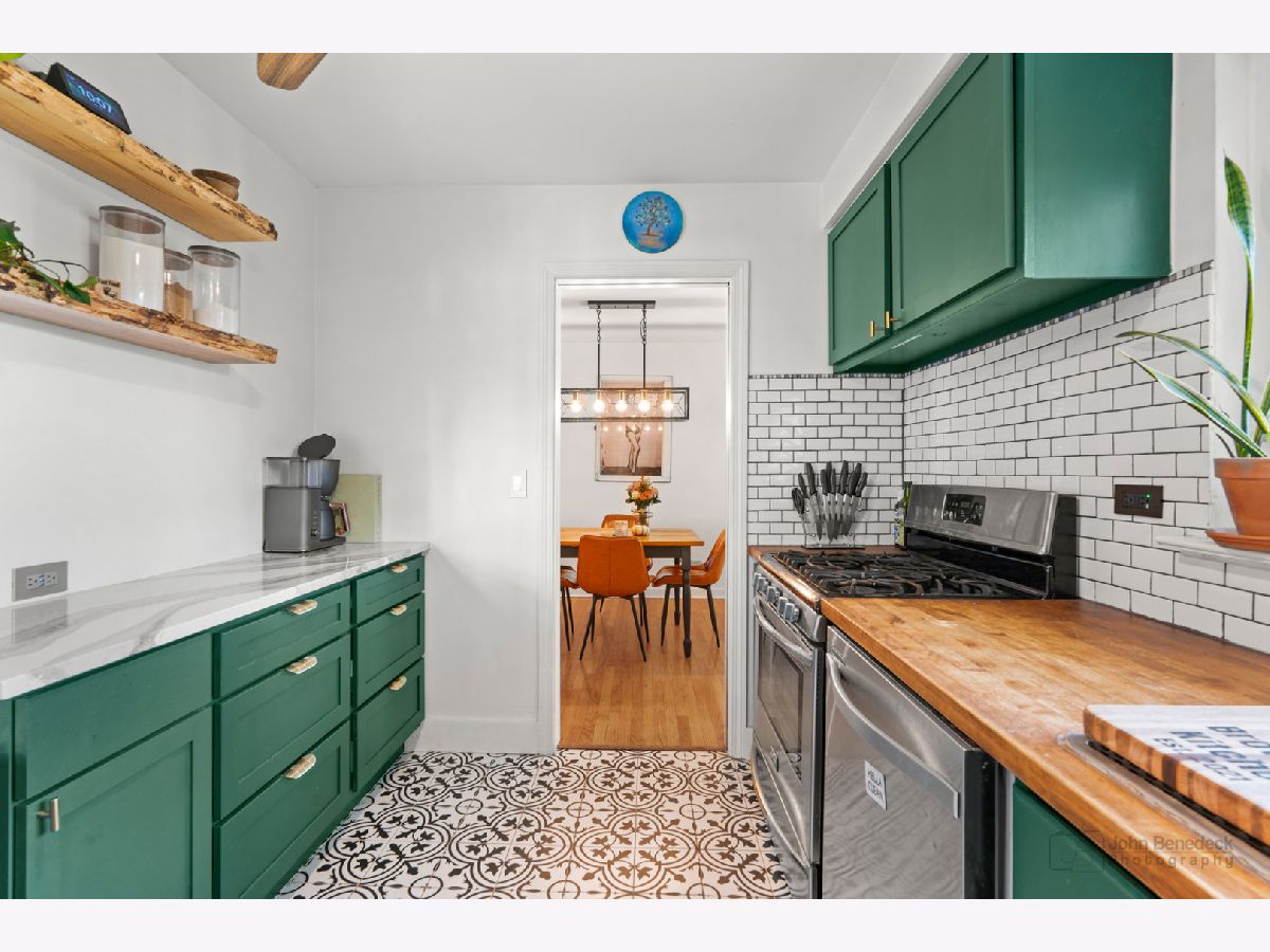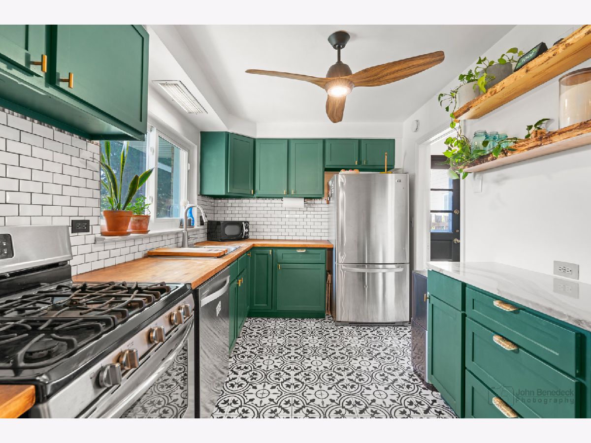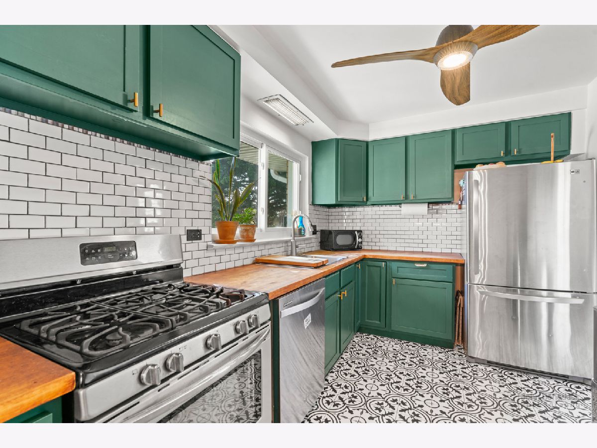 Beautifully updated 2 bd/1 bth ranch in the perfect Palatine location! The moment you enter the front door you're greeted by beautiful hardwood floors that flow throughout the spacious living room and dining room and plenty of natural light. Right off the dining area, you'll find a cozy family room with views into the living room. The kitchen is to-die-for with on trend cabinets with brushed gold hardware, butcher block counters, all SS appliances and stunning porcelain tile floors that extend into the laundry room. Two great sized bedrooms and an updated full bath round out this home. The perks of this home don't end there though - head out to your backyard sanctuary, the perfect spot to relax on a summer day! The large backyard is fully fenced-in and has a nice brick paver patio, a fire pit and shed. There's plenty of updates to this home as well. New furnace 2020, new water heater 2017, new washer & dryer 2022, new kitchen & laundry room floors 2022, and the list goes on. You truly can't beat this home or it's location! Minutes to the lively downtown Palatine with lots of restaurants, shops, the Metra station and so much more! Schedule your tour today, this one won't last long!