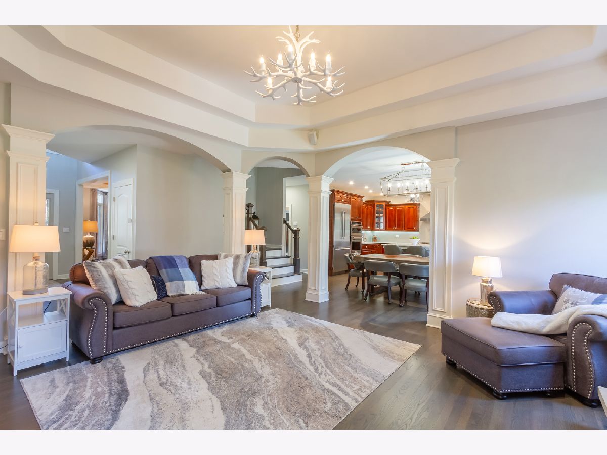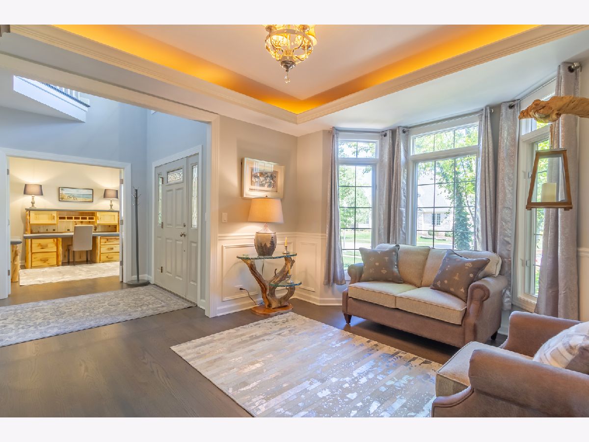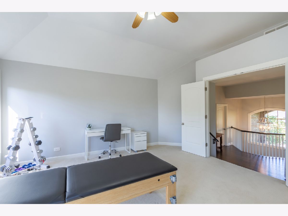 Stunning 5 bedroom custom home situated on a cul-de-sac lot in Harvest Ridge in Geneva. This home features 9 plus foot ceilings, upgraded molding and trimwork, neutral paint, and an abundance of natural lighting throughout. The formal living room includes wainscoting, bay window, and a tray ceiling. French doors open to an office~ perfect for working from home. The spacious family room showcases a beautiful brick fireplace and a detailed tray ceiling. The chef's kitchen boasts 42 inch cherry cabinets with crown molding, large prep island with breakfast bar seating, stainless steel appliances, built-in oven, separate cook top, stainless steel range hood, backsplash, and pendant lighting. Adjoining the kitchen is a large dining area~ perfect for entertaining! Versatile main level playroom could also be another office. Mudroom with custom built-in storage. Upstairs features a large master bedroom with tray ceiling, walk-in closet, second floor laundry, and an en-suite bath with luxury shower and dual shower heads, whirlpool tub, and double sinks. The second bedroom includes an en-suite bath. There is a Jack and Jill bath with double sinks that is shared by the 3rd and 4th bedrooms. The huge 2nd floor bonus room adds even more living space. Full finished basement includes a rec room with home theater system, wet bar, 5th bedroom, and a full bath with walk-in shower. The outdoor space is an entertainers dream with a covered patio with built-in gas grill, paver patio, and a fire pit. Beautiful professional landscaping. Amazing location near walking/biking trails, Peck Farm, Heartland Elementary School, restaurants, shopping, and so much more. Make this your dream home!