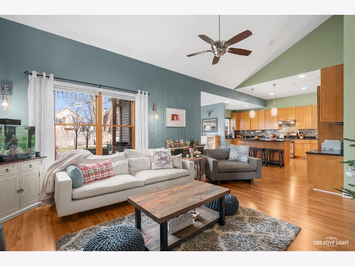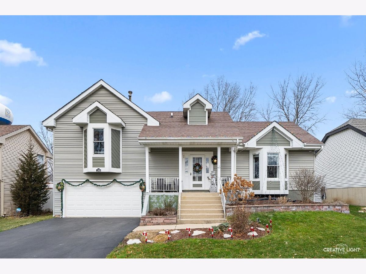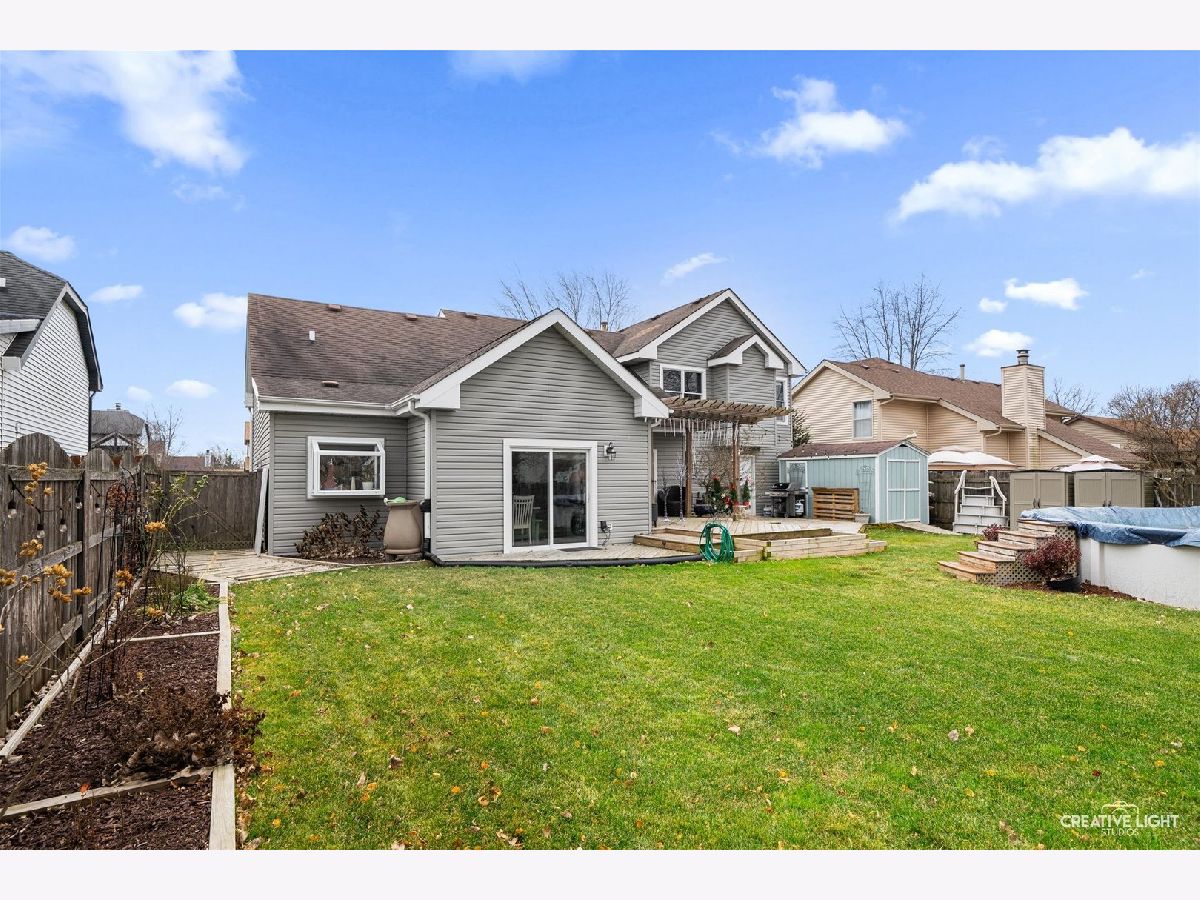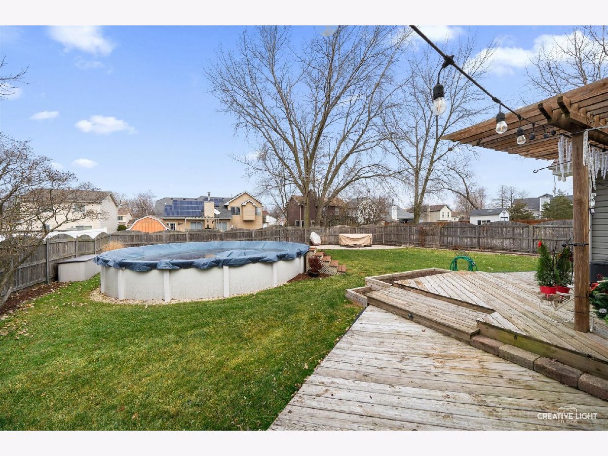 Come check out this one of a kind home with dramatic high ceilings and amazing open floor plan. Main level is so warm and cozy being wide open with a spacious kitchen complete with a massive island, lots of cabinet storage and even a built-in desk. Fridge was just replaced last year. An addition was made to the house off the kitchen for a great dining area. This dining area is leading out to the backyard and open to the kitchen area and off the living room. The living room has amazing high ceilings and a large window looking out to the backyard. The laundry room with a two year old washer and dryer set leads out to the heated garage. Currently being used as a home gym but make your garage dream into your reality. Two-year-old garage heater stays with the house and the black/gray storage system on back garage wall also stay. Primary bedroom is on a separate side of the house from the other bedrooms giving it great privacy but also just down the hall from the other two bedrooms. The primary suite has its own full bath along with a great bay window and high ceilings. The other two bedrooms have a full bath just outside them in the hallway. Both bathrooms were remodeled about 4-5 years ago. The amazing backyard oasis is one of the highlights of this home. It has a privacy fence surrounding, large stone fire pit area in far corner of the yard with French drain installed underneath, beautiful above ground pool with pool liner just having been replaced last year, and the large, gorgeous deck just waiting for you to enjoy. One block from Mallard Lake forest preserve and prairie paths. Kids park just around the corner, a short .1 mile walk. Close to many different shops and easy access to highways. There is also a Metra station close by. Come see this one today! You don't want to miss it!