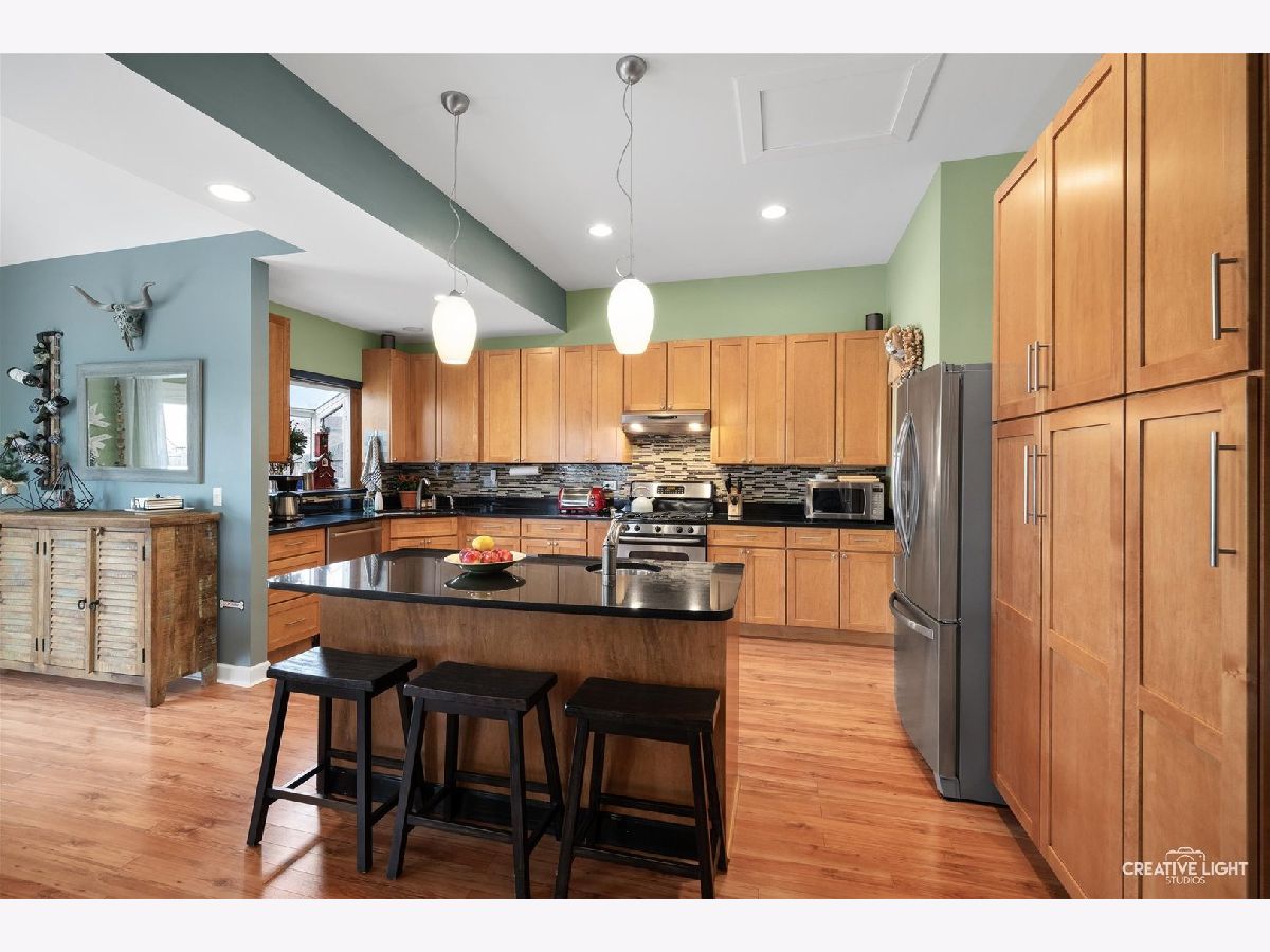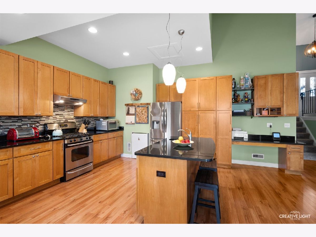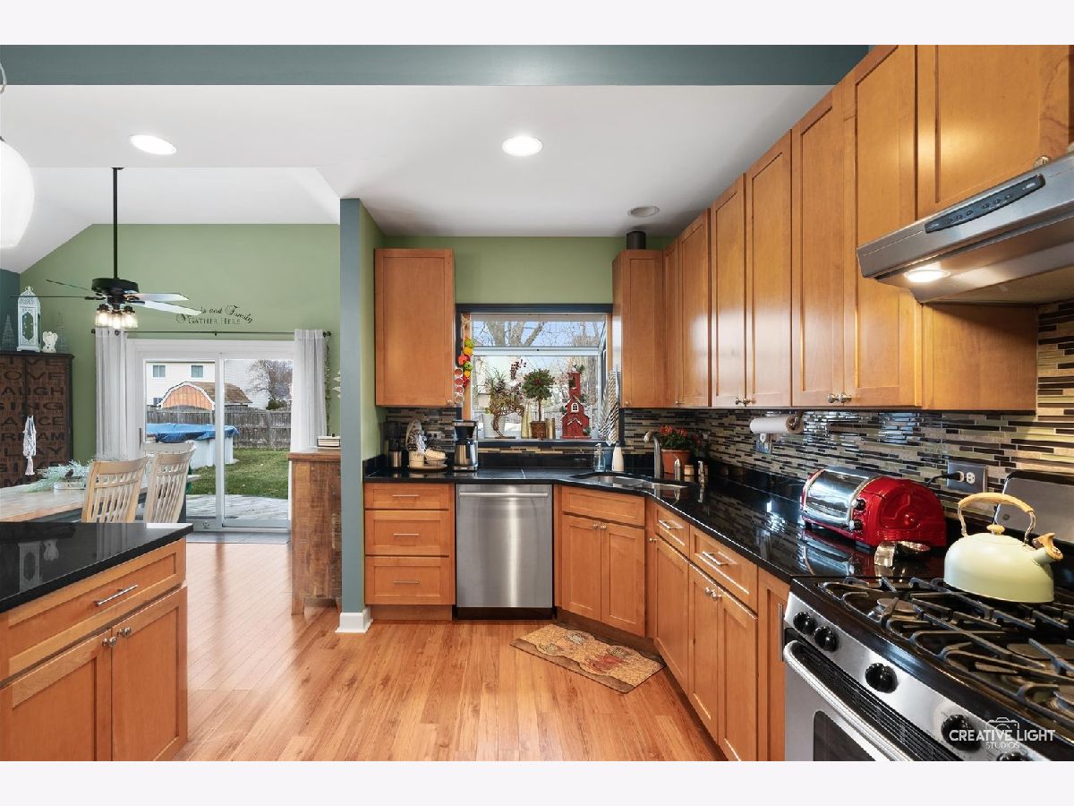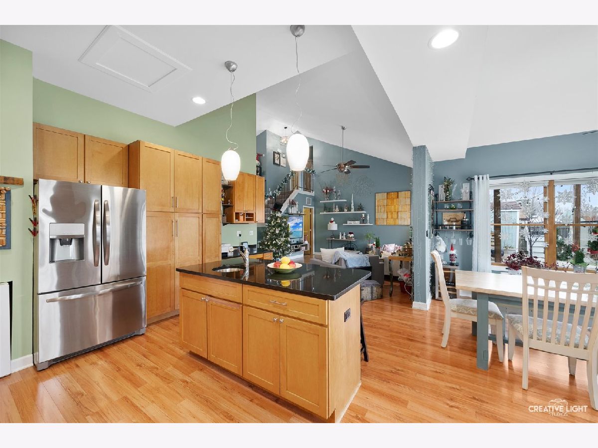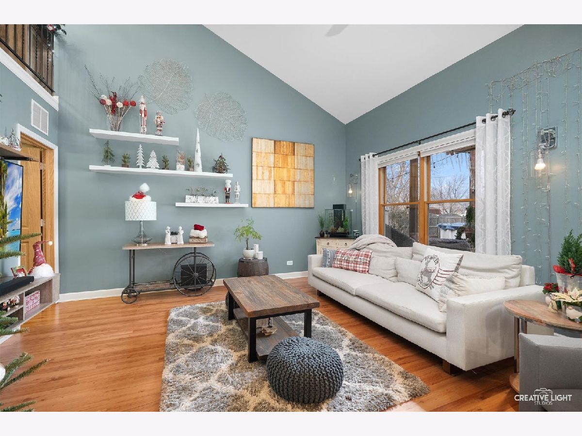 Come check out this one of a kind home with dramatic high ceilings and amazing open floor plan. Main level is so warm and cozy being wide open with a spacious kitchen complete with a massive island, lots of cabinet storage and even a built-in desk. Fridge was just replaced last year. An addition was made to the house off the kitchen for a great dining area. This dining area is leading out to the backyard and open to the kitchen area and off the living room. The living room has amazing high ceilings and a large window looking out to the backyard. The laundry room with a two year old washer and dryer set leads out to the heated garage. Currently being used as a home gym but make your garage dream into your reality. Two-year-old garage heater stays with the house and the black/gray storage system on back garage wall also stay. Primary bedroom is on a separate side of the house from the other bedrooms giving it great privacy but also just down the hall from the other two bedrooms. The primary suite has its own full bath along with a great bay window and high ceilings. The other two bedrooms have a full bath just outside them in the hallway. Both bathrooms were remodeled about 4-5 years ago. The amazing backyard oasis is one of the highlights of this home. It has a privacy fence surrounding, large stone fire pit area in far corner of the yard with French drain installed underneath, beautiful above ground pool with pool liner just having been replaced last year, and the large, gorgeous deck just waiting for you to enjoy. One block from Mallard Lake forest preserve and prairie paths. Kids park just around the corner, a short .1 mile walk. Close to many different shops and easy access to highways. There is also a Metra station close by. Come see this one today! You don't want to miss it!