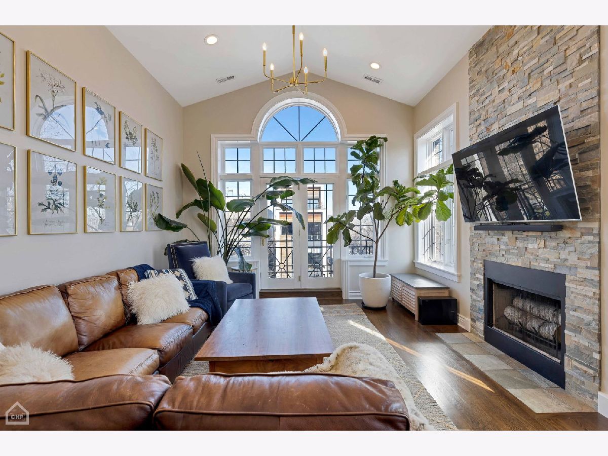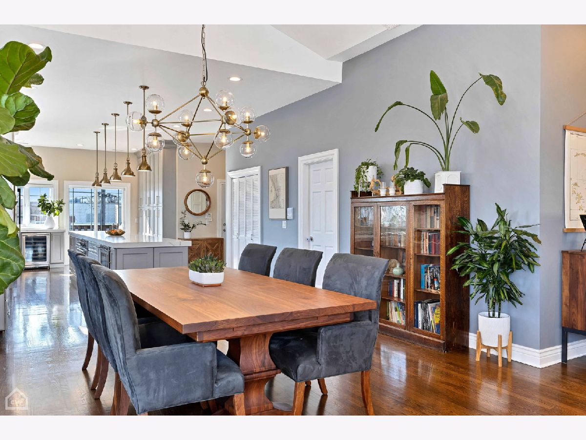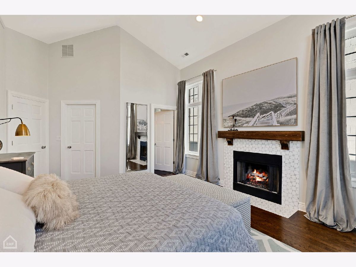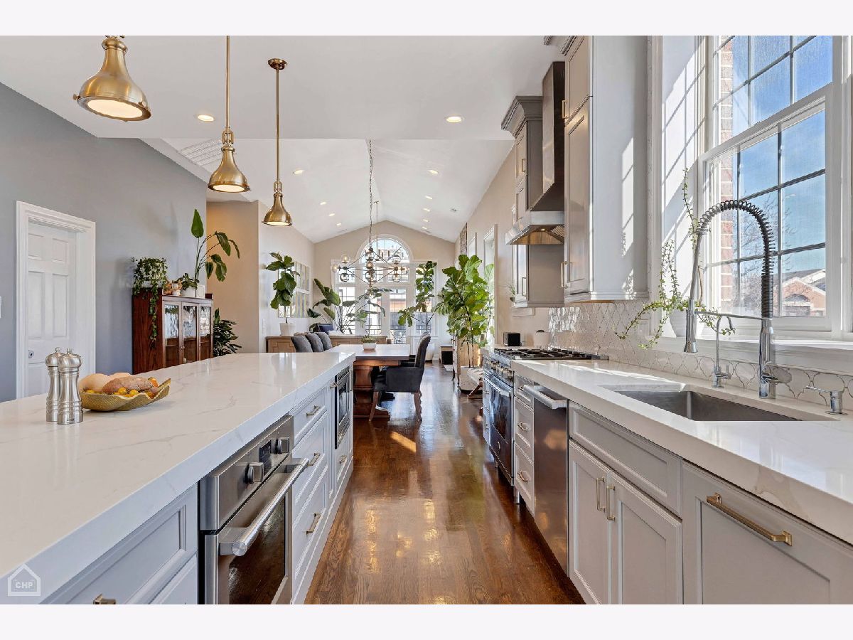 Welcome to a stunning, full-floor simplex penthouse located on a corner lot in prime Bucktown! This sun-drenched unit offers a unique, well-laid-out living space with cathedral ceilings, two fireplaces, and gleaming hardwood floors throughout. As you step into the unit, you'll immediately notice the open living space, perfect for entertaining or simply relaxing with loved ones. The fully renovated kitchen is a chef's dream - including custom cabinetry and new appliances featuring Miele and Bertazzoni with a full-size refrigerator and a full-size freezer. The kitchen also boasts an expansive island, pantry, quartz countertops, and a beautiful backsplash. Additionally, the kitchen features a coffee and wine bar and a reverse osmosis water filtration system for drinking water and ice. The primary suite consists of a very large bedroom with cathedral ceilings, a beautifully tiled gas fireplace, and a newly remodeled spa-like master bath with a large tile shower, double sinks, marble finishes, and Studio 41 Kohler and Hansgrohe fixtures, including hand and body sprays. The guest bathroom has been fully renovated, featuring new tile, marble countertops, double sink vanity, faucets, and updated lighting fixtures. The powder room showcases wall-to-wall Carrara marble; counter, floor tile and wall tile, complemented by brass Kohler Studio 41 fixtures. The area by the back door has been furnished as a mud room with a built-in board and batten hall tree for easy organization. Enjoy outdoor living with two large, connected, south-facing decks, with plenty of space for grilling, dining and lounging. This unit also includes two tandem parking spaces and a huge basement-level storage room. The HVAC systems were recently replaced, including the furnace with a new electrostatic air filter and a new AC. Electrical circuits have been expanded, and new LED lighting and light fixtures were updated throughout. Most windows have been replaced, and motorized Hunter Douglas window screens have been installed for added convenience. Located just a few blocks from The Metra for an 8-minute commute downtown, 90/94 Armitage ramp, and a 10-minute walk to the El, you'll have easy access to transportation. Plus, you're just steps away from the 606 and all the trendy restaurants, boutiques, and amenities that Bucktown has to offer. With close proximity to area parks and the Pulaski School District, this location truly offers the best of city living.