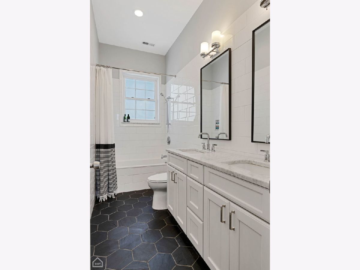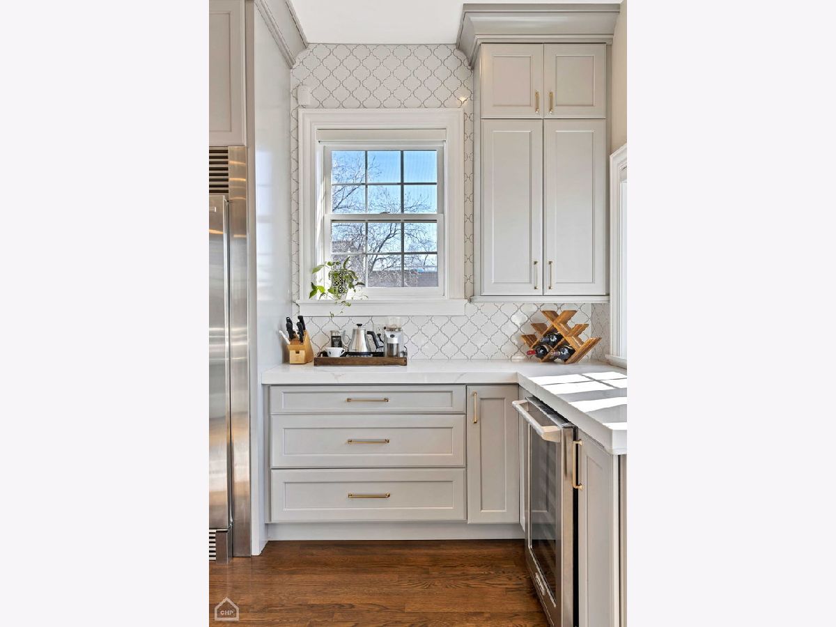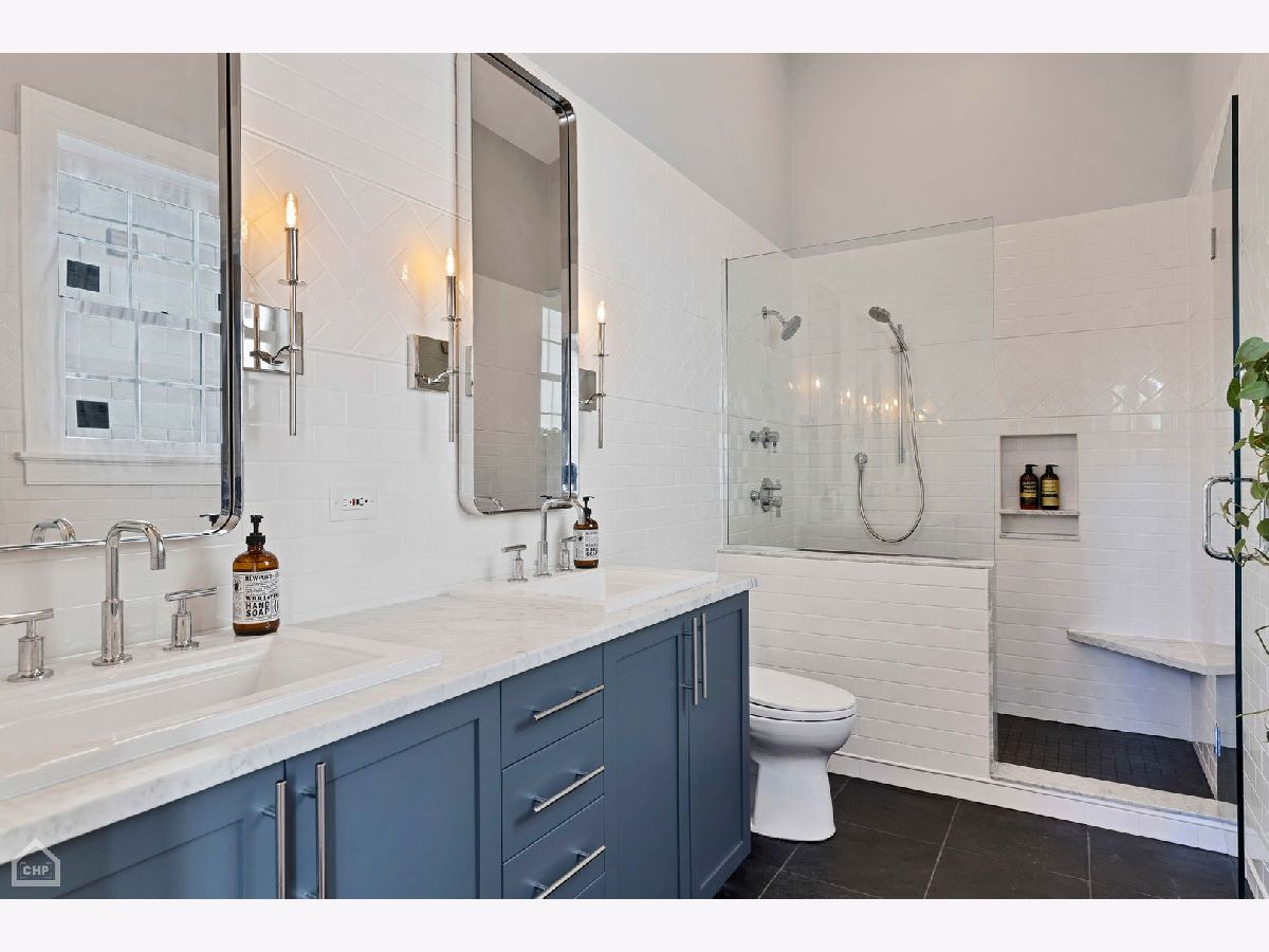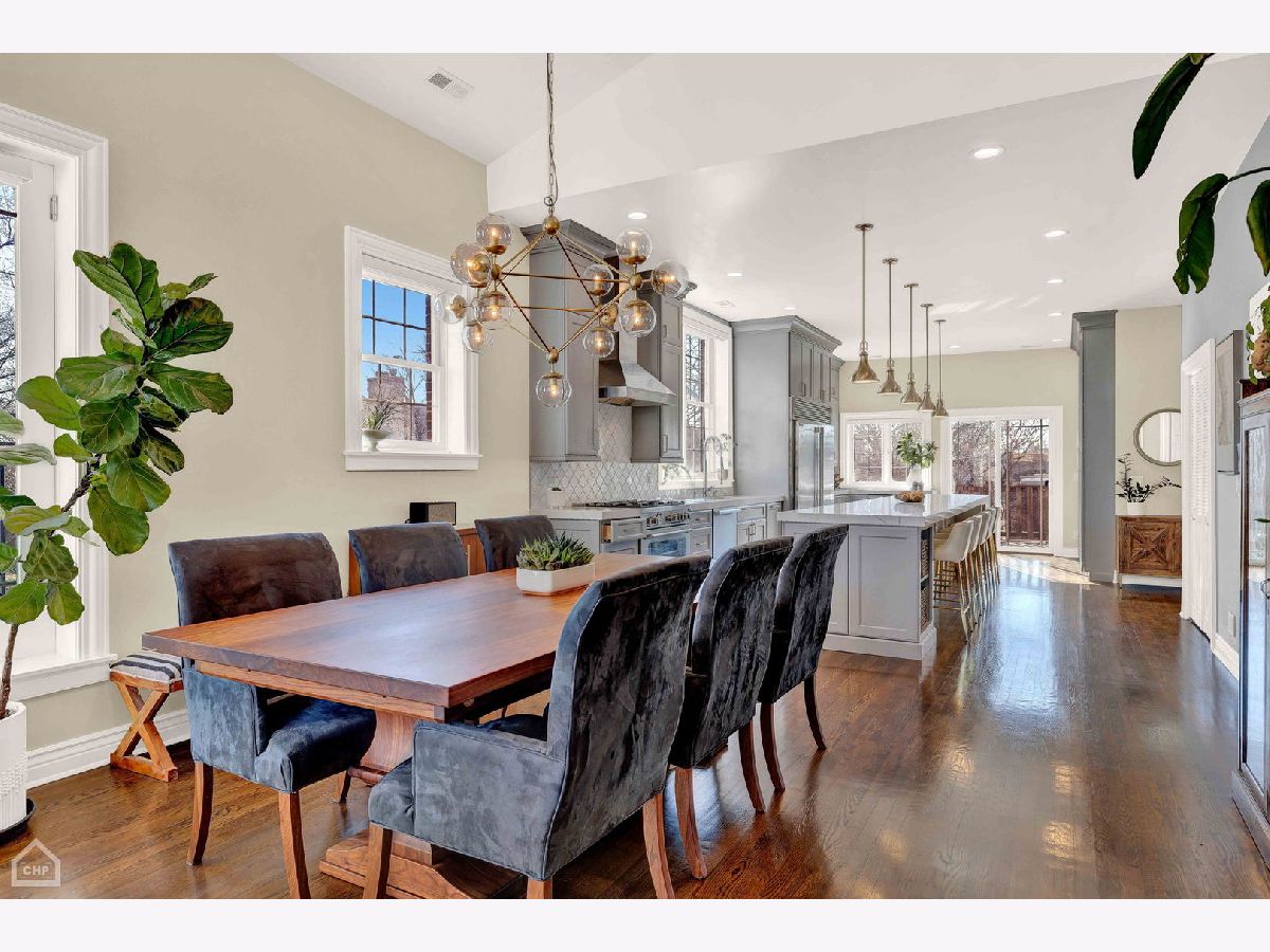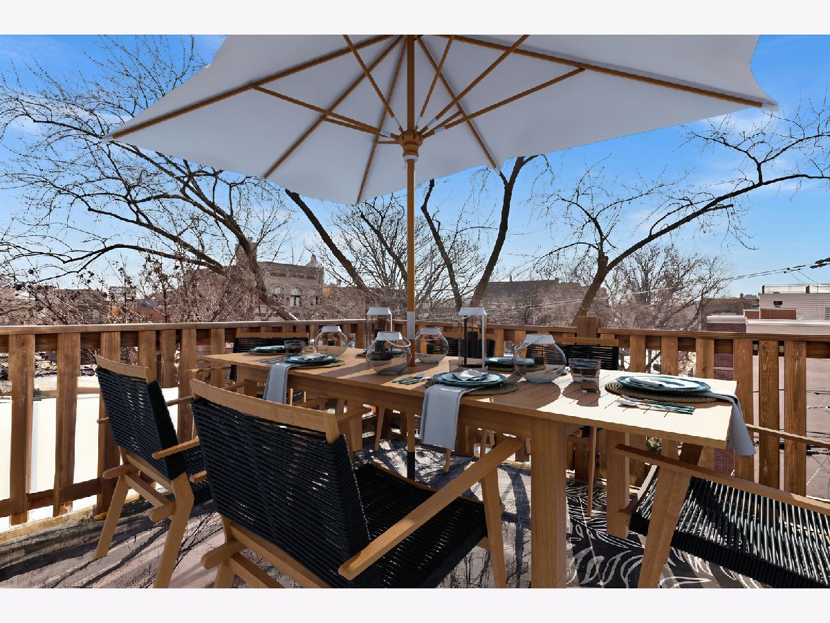 Welcome to a stunning, full-floor simplex penthouse located on a corner lot in prime Bucktown! This sun-drenched unit offers a unique, well-laid-out living space with cathedral ceilings, two fireplaces, and gleaming hardwood floors throughout. As you step into the unit, you'll immediately notice the open living space, perfect for entertaining or simply relaxing with loved ones. The fully renovated kitchen is a chef's dream - including custom cabinetry and new appliances featuring Miele and Bertazzoni with a full-size refrigerator and a full-size freezer. The kitchen also boasts an expansive island, pantry, quartz countertops, and a beautiful backsplash. Additionally, the kitchen features a coffee and wine bar and a reverse osmosis water filtration system for drinking water and ice. The primary suite consists of a very large bedroom with cathedral ceilings, a beautifully tiled gas fireplace, and a newly remodeled spa-like master bath with a large tile shower, double sinks, marble finishes, and Studio 41 Kohler and Hansgrohe fixtures, including hand and body sprays. The guest bathroom has been fully renovated, featuring new tile, marble countertops, double sink vanity, faucets, and updated lighting fixtures. The powder room showcases wall-to-wall Carrara marble; counter, floor tile and wall tile, complemented by brass Kohler Studio 41 fixtures. The area by the back door has been furnished as a mud room with a built-in board and batten hall tree for easy organization. Enjoy outdoor living with two large, connected, south-facing decks, with plenty of space for grilling, dining and lounging. This unit also includes two tandem parking spaces and a huge basement-level storage room. The HVAC systems were recently replaced, including the furnace with a new electrostatic air filter and a new AC. Electrical circuits have been expanded, and new LED lighting and light fixtures were updated throughout. Most windows have been replaced, and motorized Hunter Douglas window screens have been installed for added convenience. Located just a few blocks from The Metra for an 8-minute commute downtown, 90/94 Armitage ramp, and a 10-minute walk to the El, you'll have easy access to transportation. Plus, you're just steps away from the 606 and all the trendy restaurants, boutiques, and amenities that Bucktown has to offer. With close proximity to area parks and the Pulaski School District, this location truly offers the best of city living.